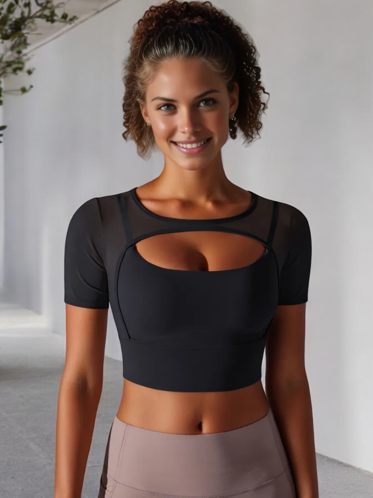 Top deportivo de manga corta con aberturas para mujer de Anna-Kaci con tejido transpirable