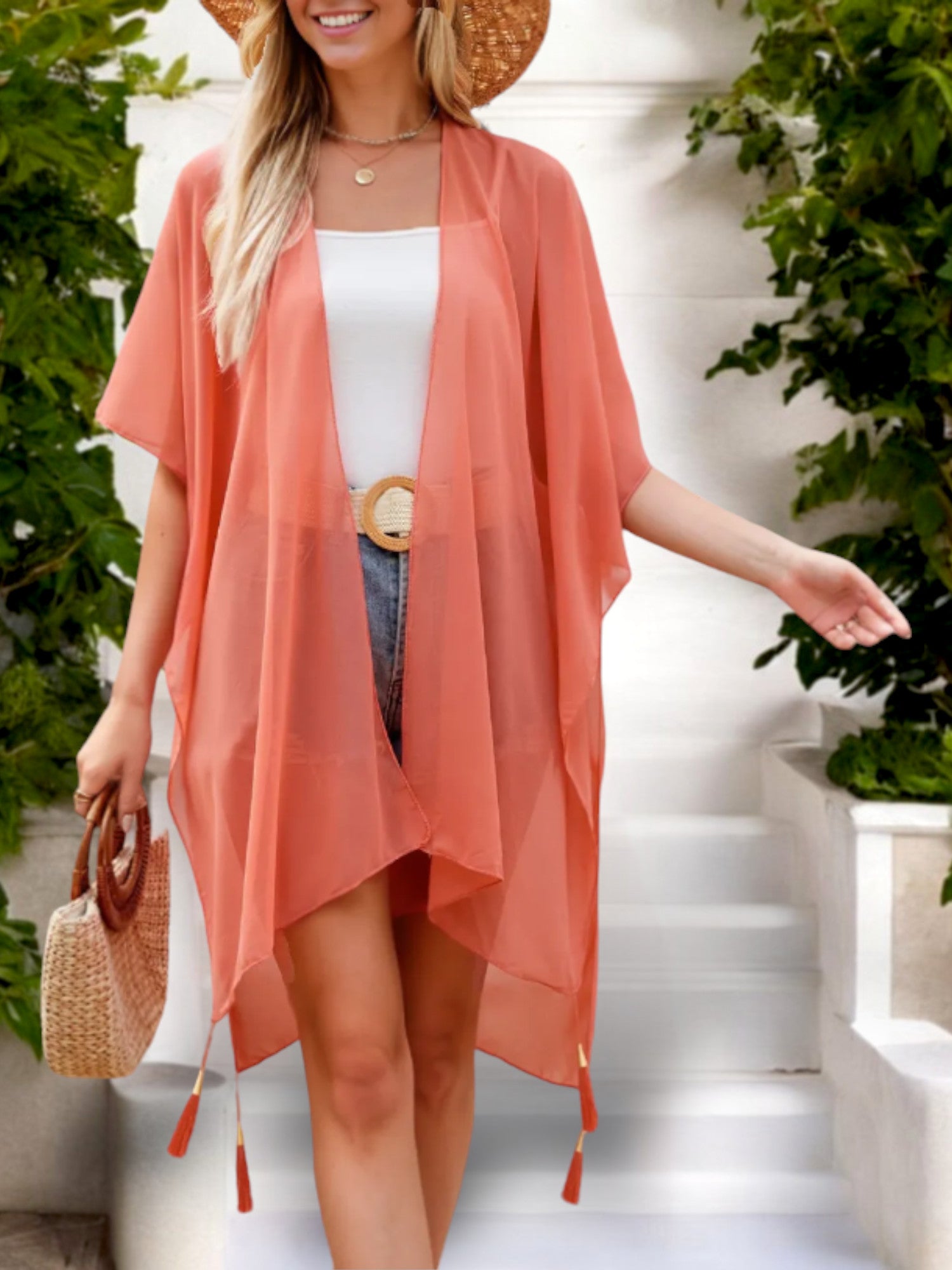 El cárdigan tipo kimono ligero para mujer de Anna-Kaci con aberturas laterales y frente abierto es el complemento perfecto para tu guardarropa para climas cálidos. Este kimono fresco presenta un diseño frontal abierto y una silueta fluida, lo que hace que sea fácil de combinar con tus atuendos favoritos. Las aberturas laterales agregan un toque de estilo y brindan más movimiento y comodidad. Confeccionado con una tela suave y liviana, ofrece un ajuste relajado que se adapta maravillosamente, manteniéndote fresca y cómoda durante todo el día. Ya sea que vayas a la playa, a una salida informal o simplemente a descansar en casa, este cárdigan tipo kimono versátil es una pieza imprescindible que realza sin esfuerzo cualquier look.