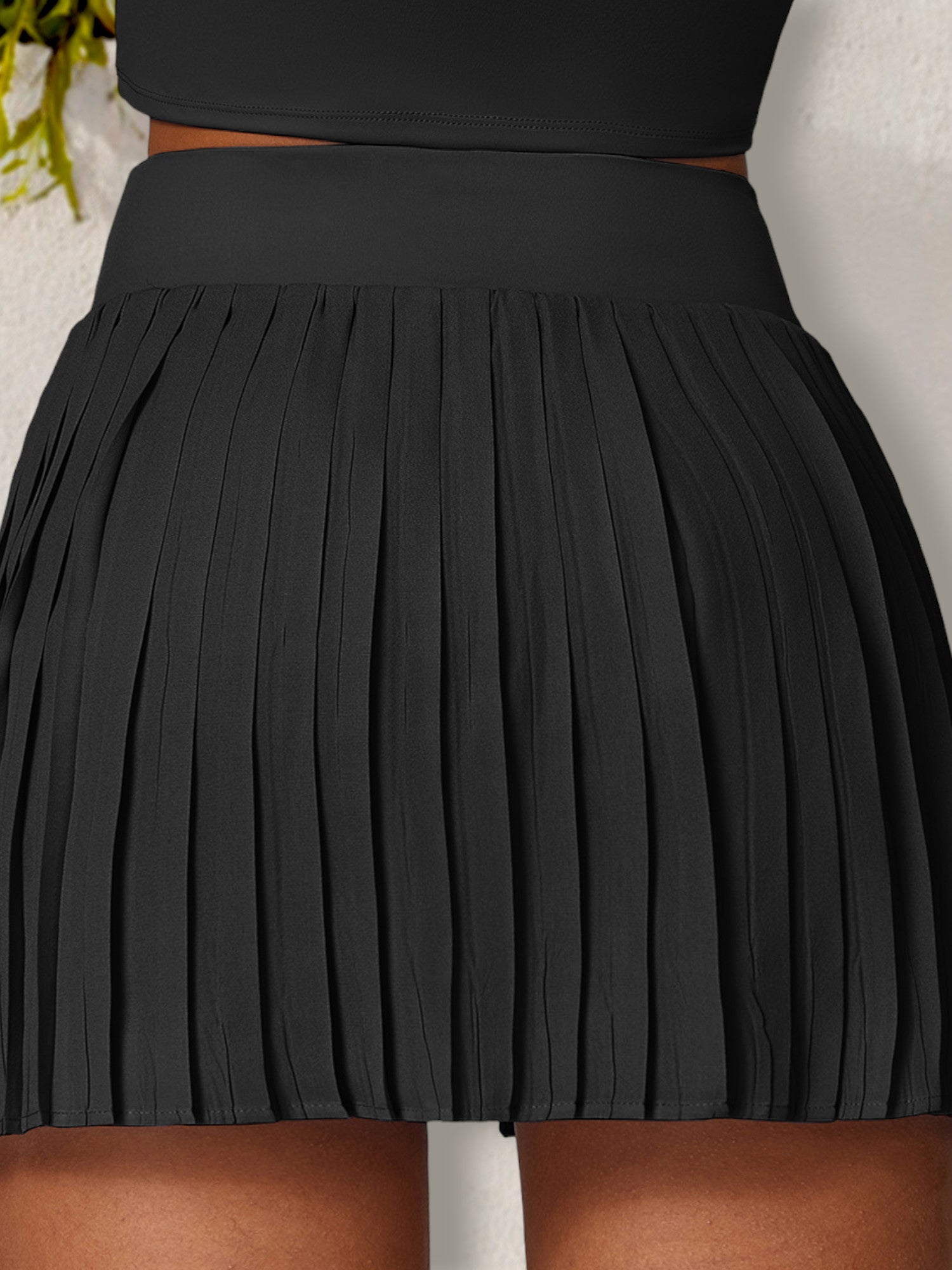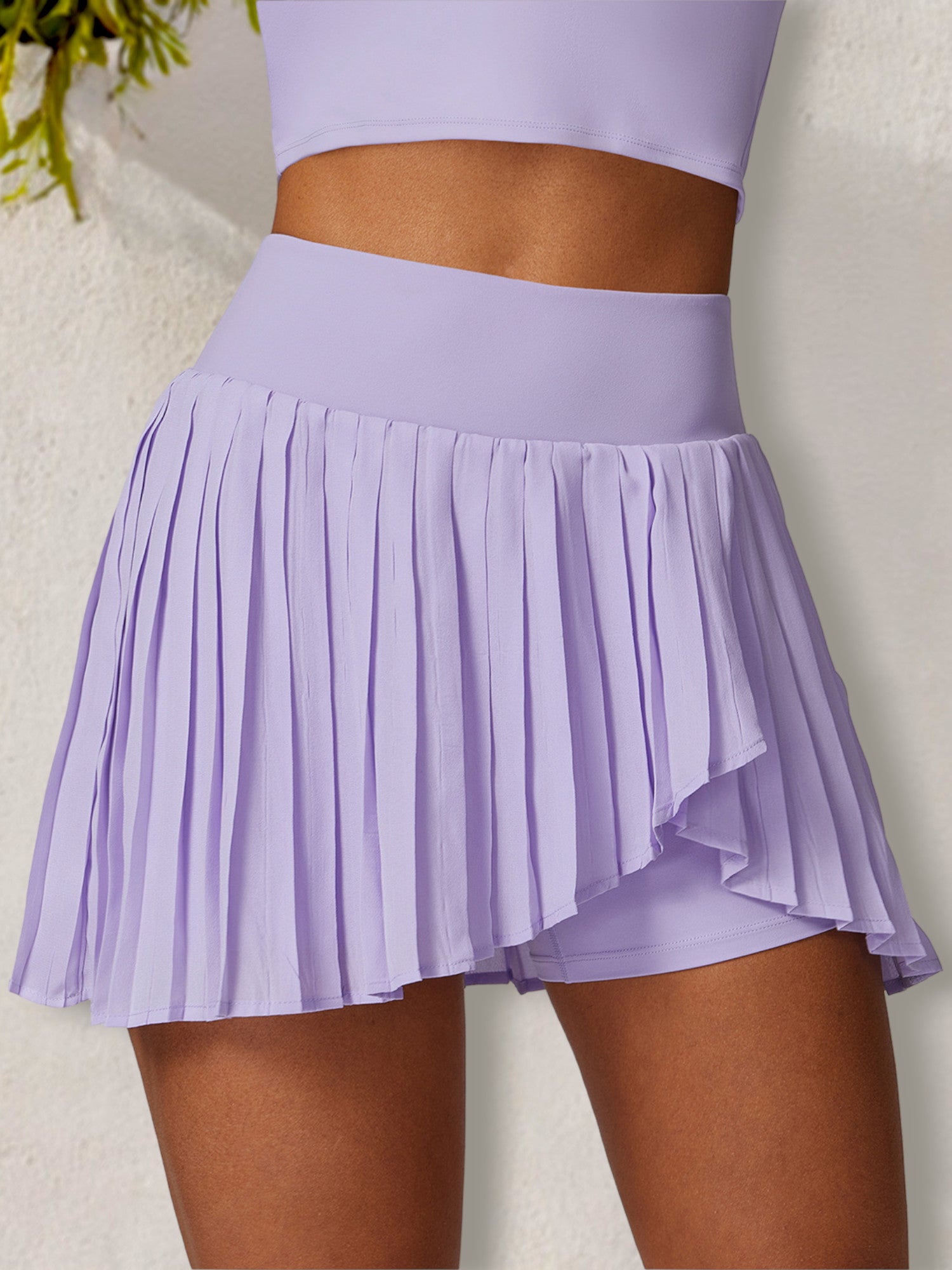 La falda pantalón deportiva plisada de cintura alta con pantalones cortos incorporados para mujer combina elegancia y funcionalidad, perfecta para mujeres activas que buscan estilo y rendimiento. Con un diseño de cintura alta, esta falda pantalón proporciona un ajuste favorecedor y un soporte mejorado, lo que garantiza la comodidad durante entrenamientos intensos o actividades casuales. La superposición de la falda plisada agrega un toque elegante y femenino, mientras que los pantalones cortos incorporados ofrecen cobertura adicional y libertad de movimiento. Fabricada con tela transpirable que absorbe la humedad, esta falda pantalón te mantiene fresca y seca, lo que la convierte en una opción ideal para tenis, golf, correr o cualquier aventura deportiva. Realza tu colección de ropa deportiva con esta falda pantalón versátil y elegante.