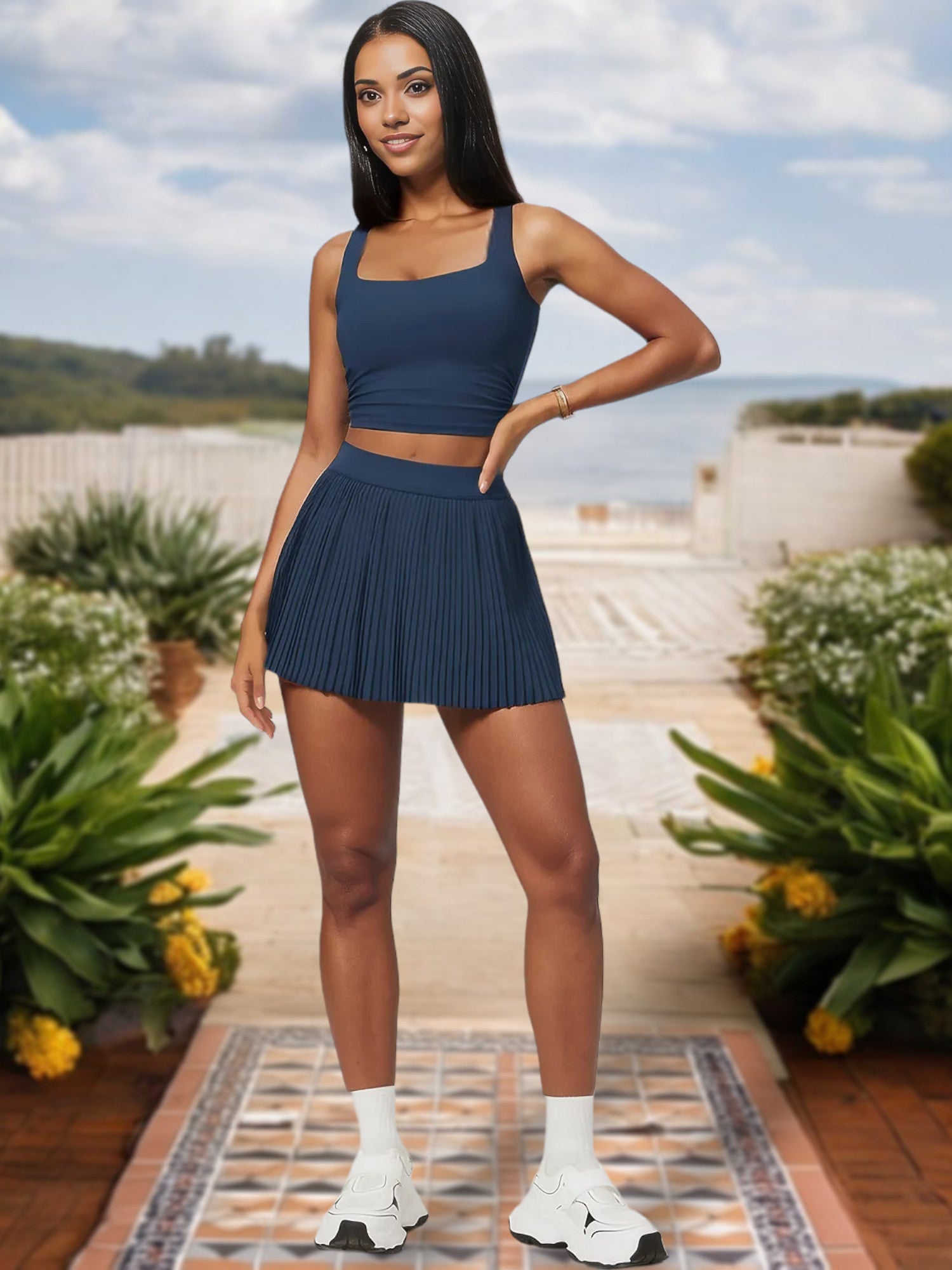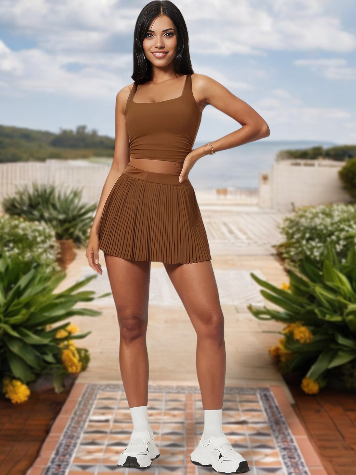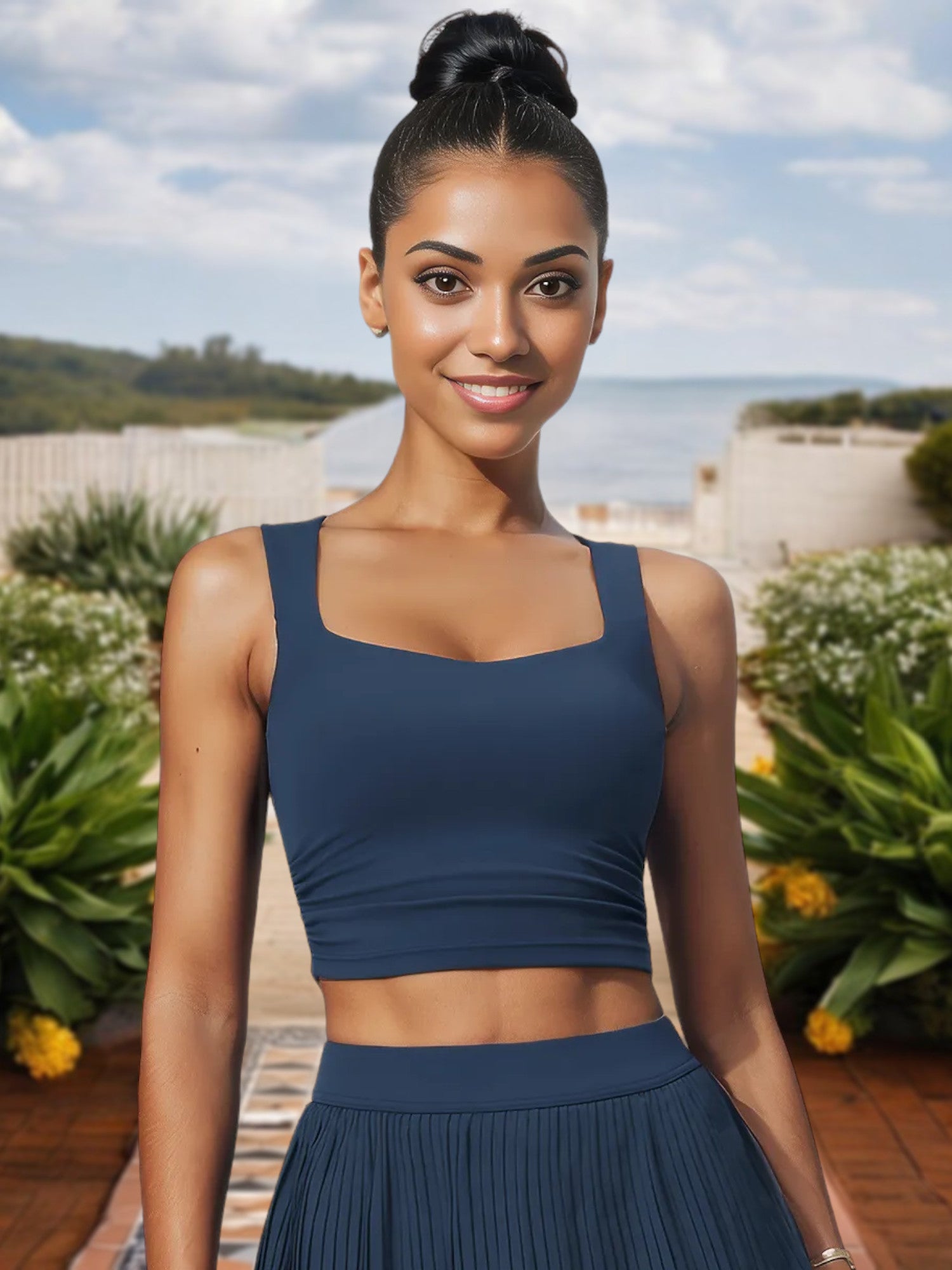 El top corto de escote cuadrado para mujer con corte elástico y laterales fruncidos ofrece un look elegante y contemporáneo perfecto para cualquier ocasión. Con un favorecedor escote cuadrado, este top corto acentúa tu clavícula y añade un toque elegante a tu atuendo. Los laterales fruncidos proporcionan un elemento de diseño único al tiempo que garantizan un ajuste cómodo y ajustable. Fabricado con tejido elástico de alta calidad, este top ofrece máxima comodidad y libertad de movimiento, lo que lo hace ideal tanto para uso informal como para sesiones de entrenamiento. Combínalo con vaqueros de cintura alta, faldas o leggings para una incorporación versátil y moderna a tu guardarropa.