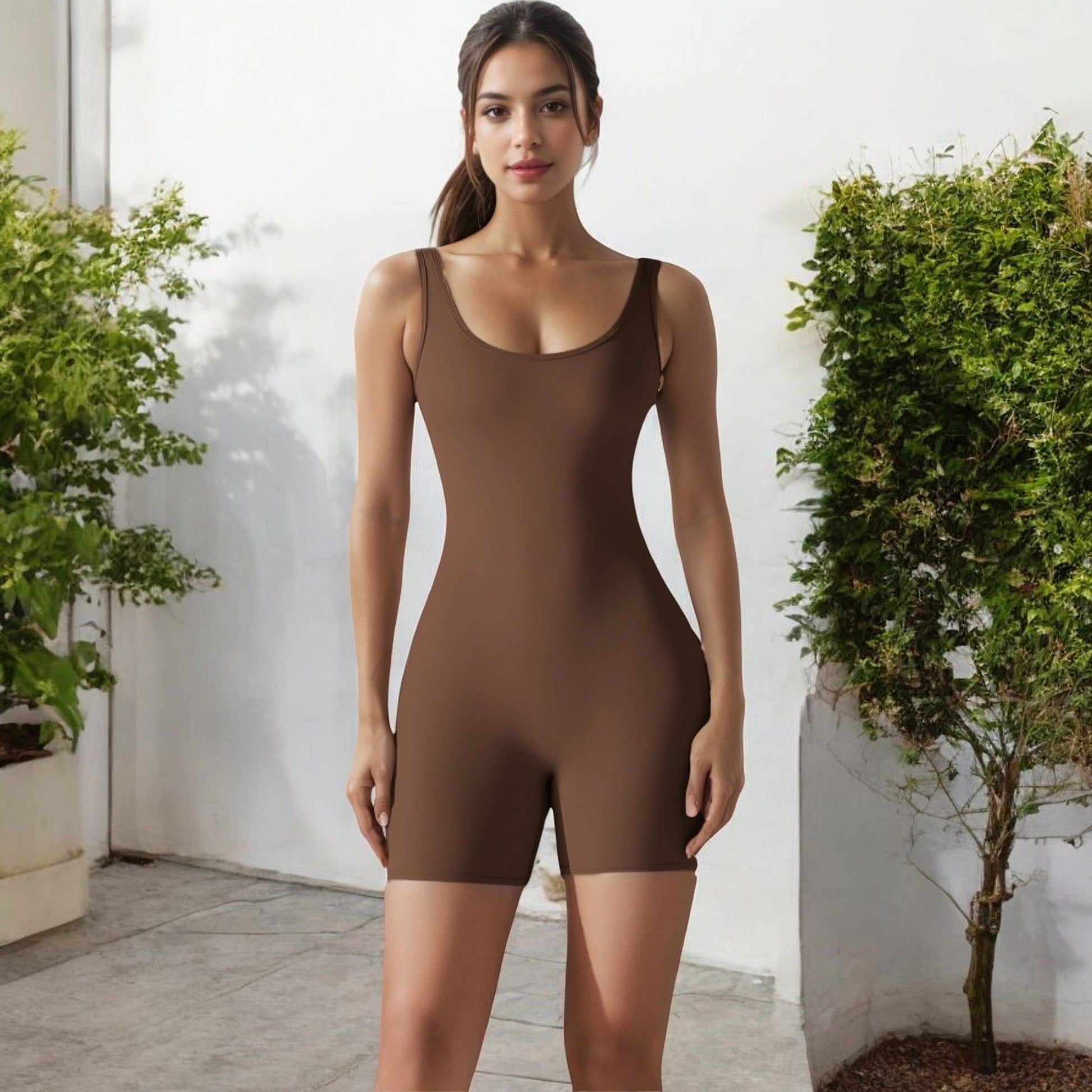Sleeveless Bodycon Romper with Scoop Neck and Form-Fitting Design