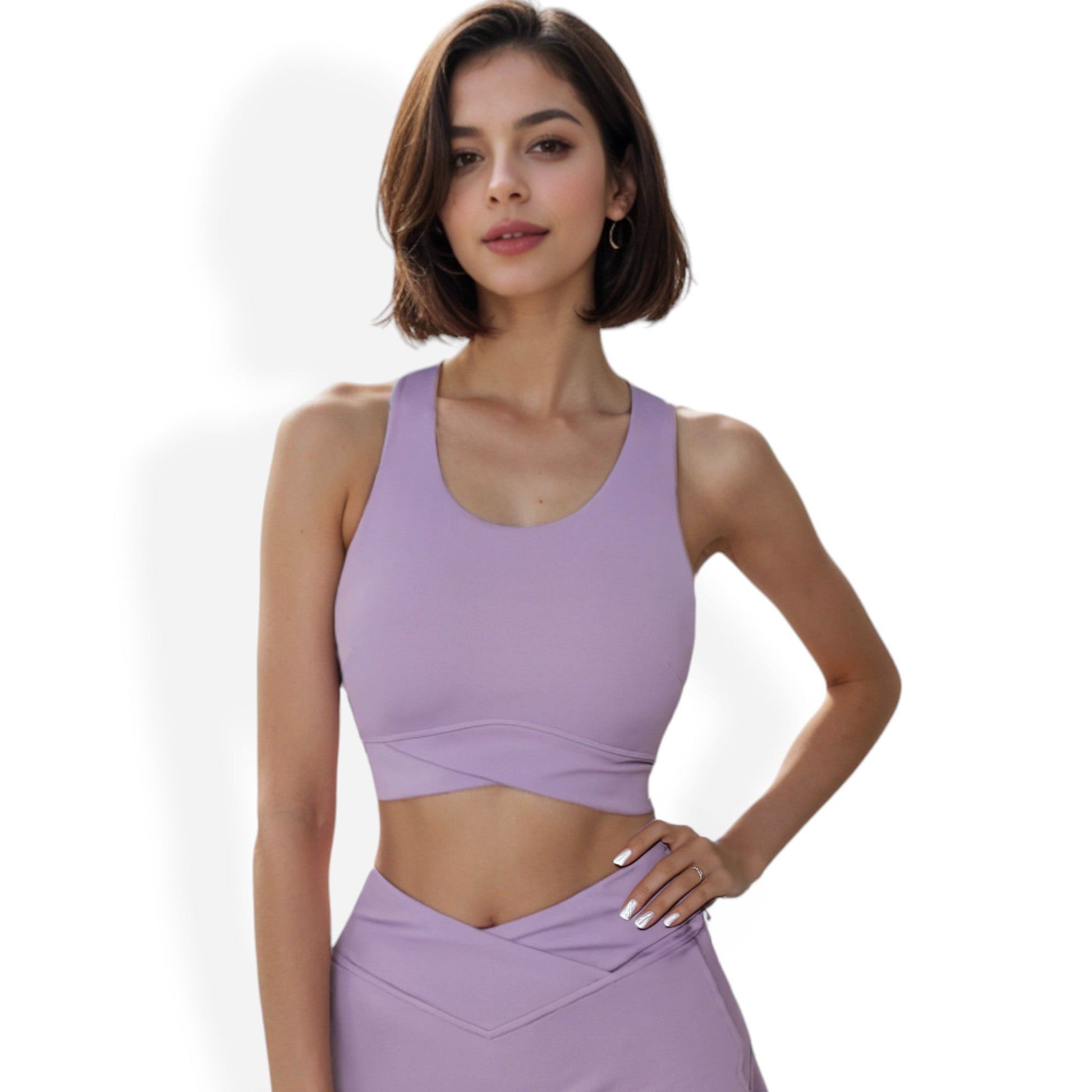 Scoop Neck Sports Bra with Crisscross Hem Detail