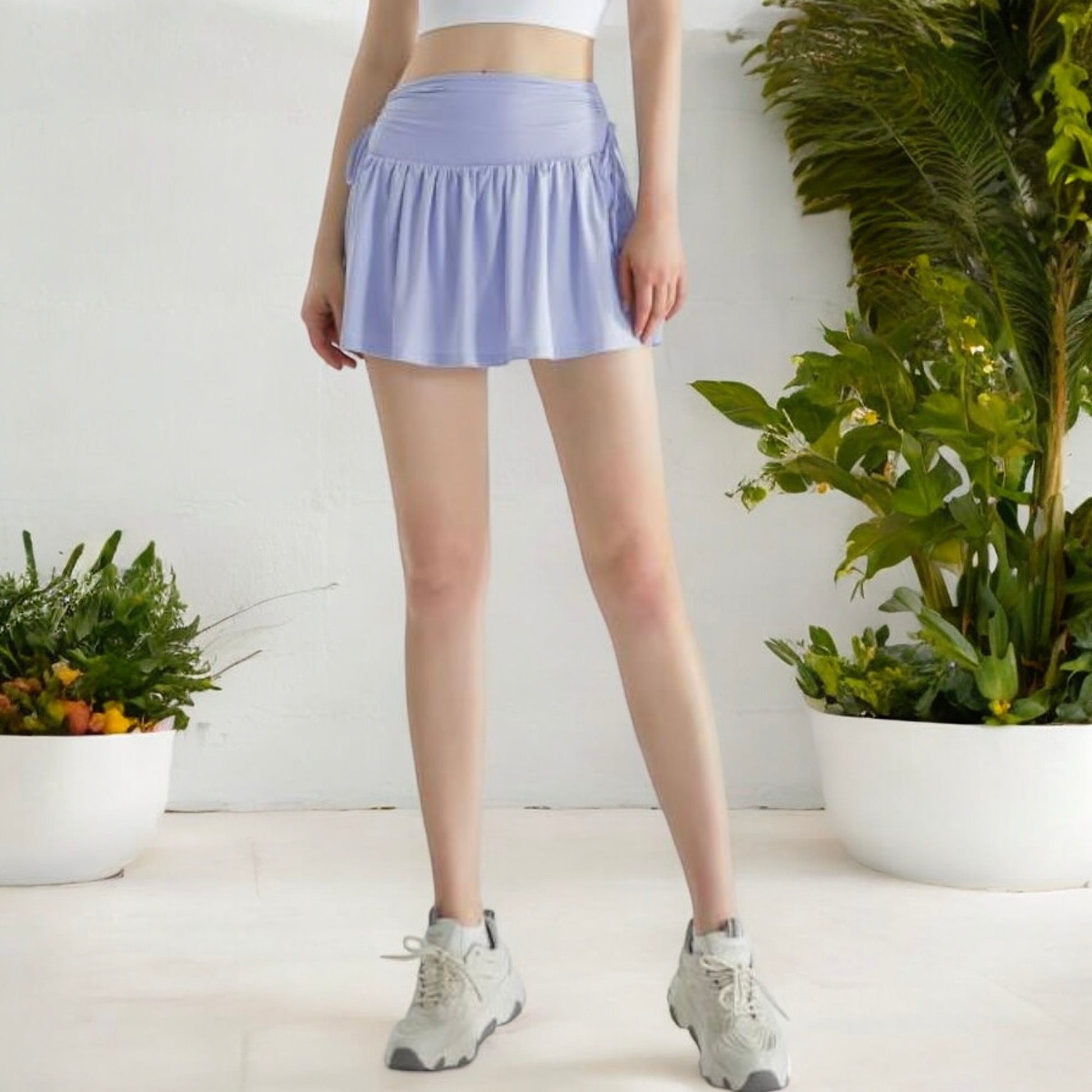 This Anna-Kaci Women's High Waist Flared Active Skirt combines style and function for a flattering and comfortable fit. Featuring adjustable drawstring sides for customizable length and a secure, stretchy waistband, this skirt offers versatility for various activities. The lightweight, breathable fabric ensures ease of movement and all-day comfort. Perfect for tennis, running, or casual outings, this skirt keeps you looking chic and feeling confident, no matter the occasion.