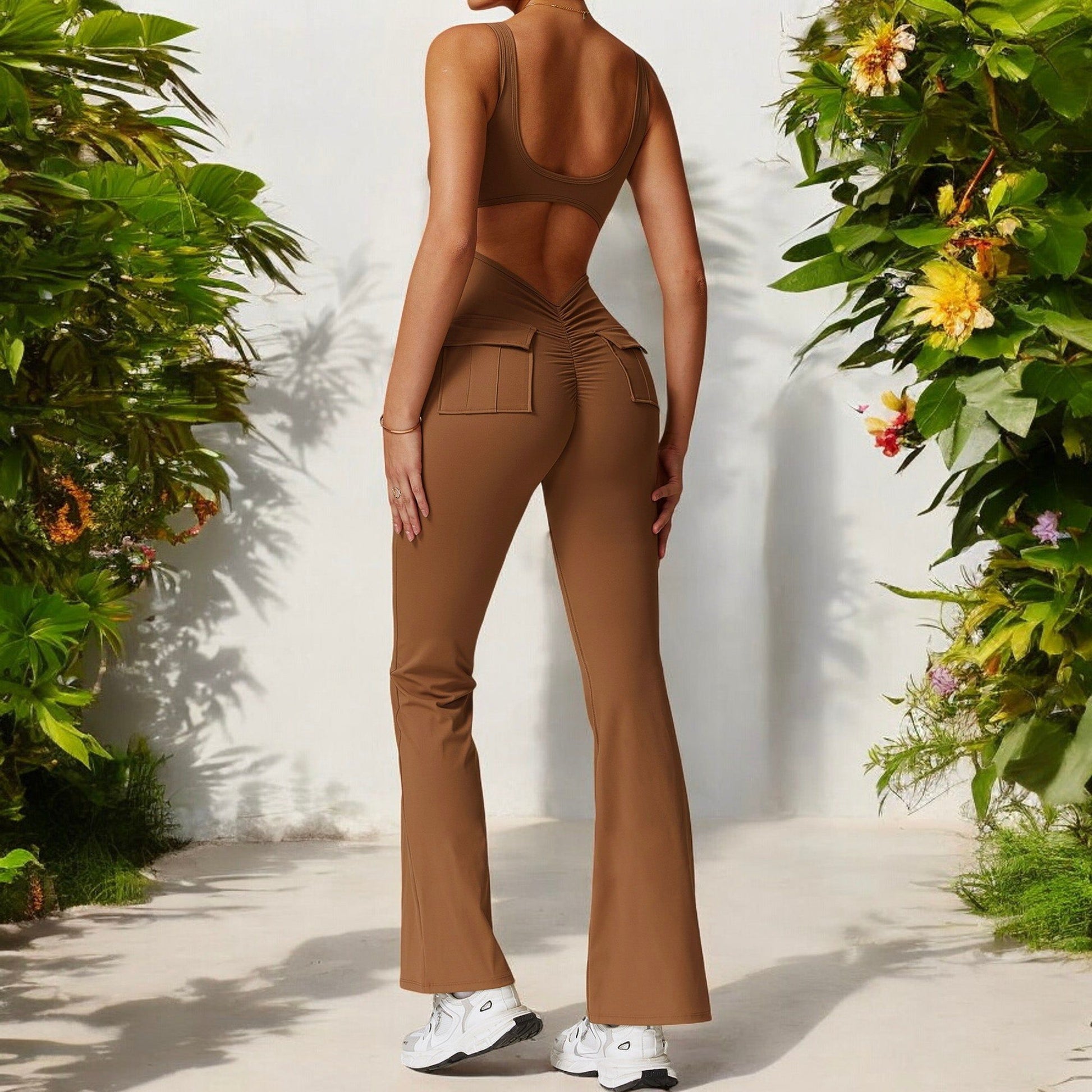 Seamless Flared Bodysuit with Scoop Neck for Activewear