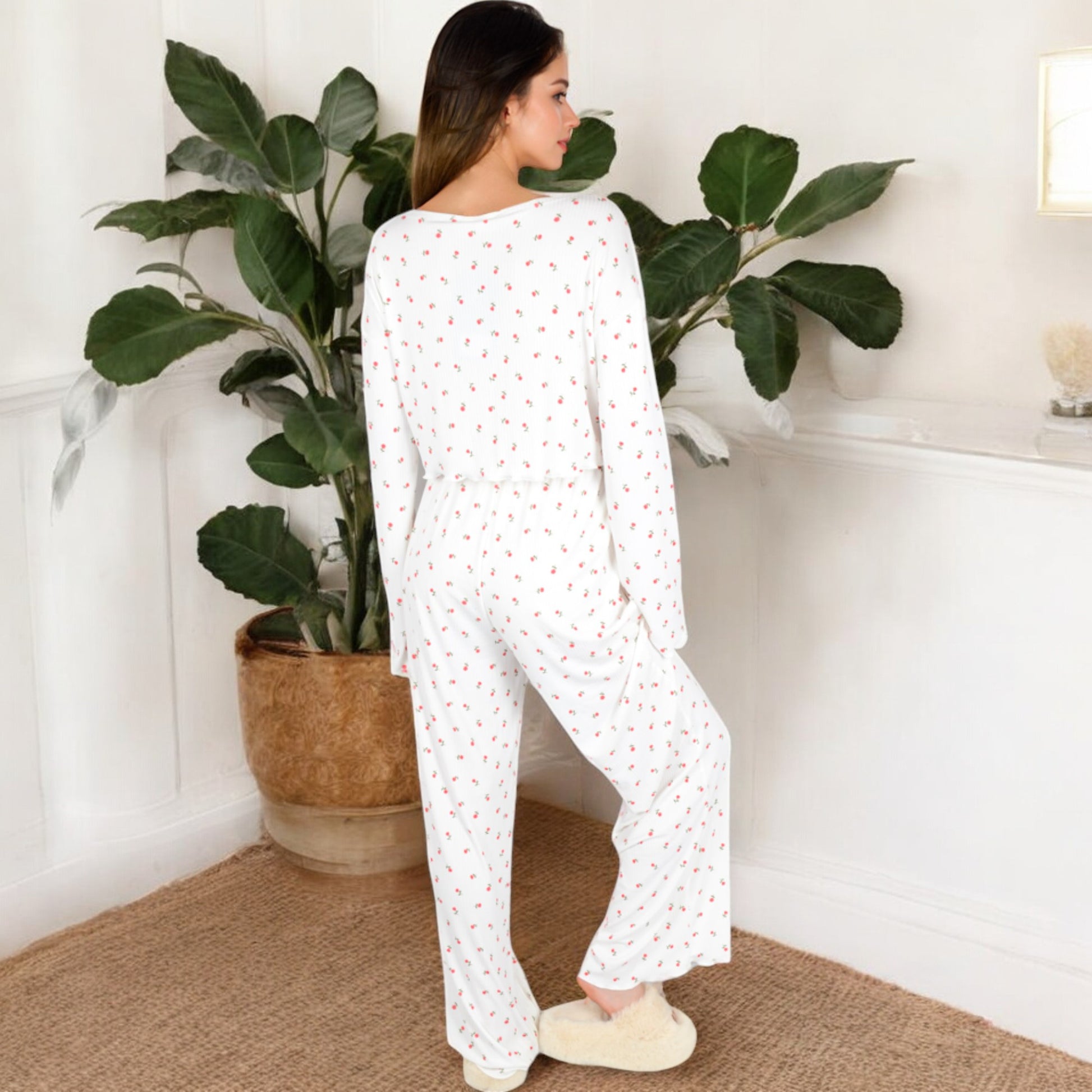 Anna-Kaci Women's Floral Print 2-Piece Pajama Set with Long Sleeve Top and Elastic Waist Relaxed Fit Pants