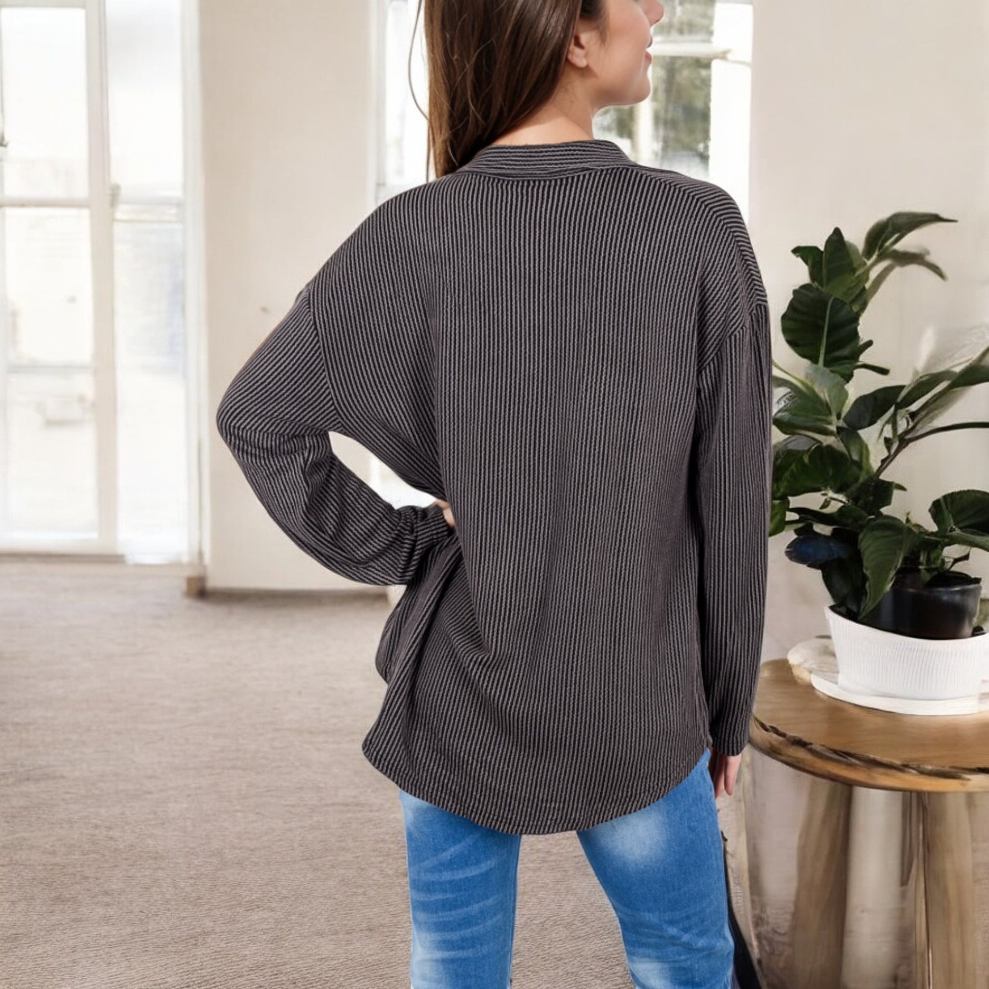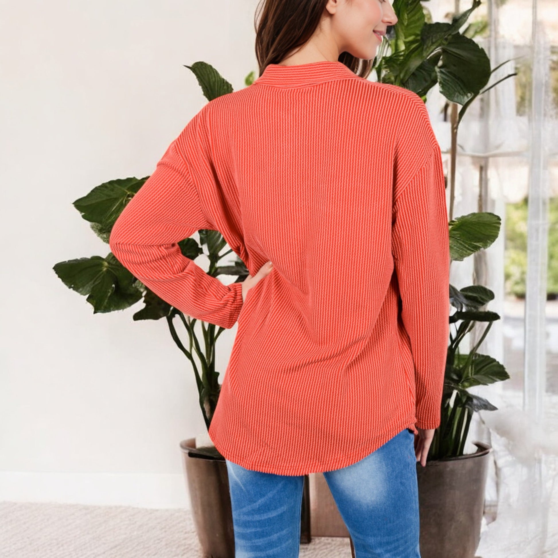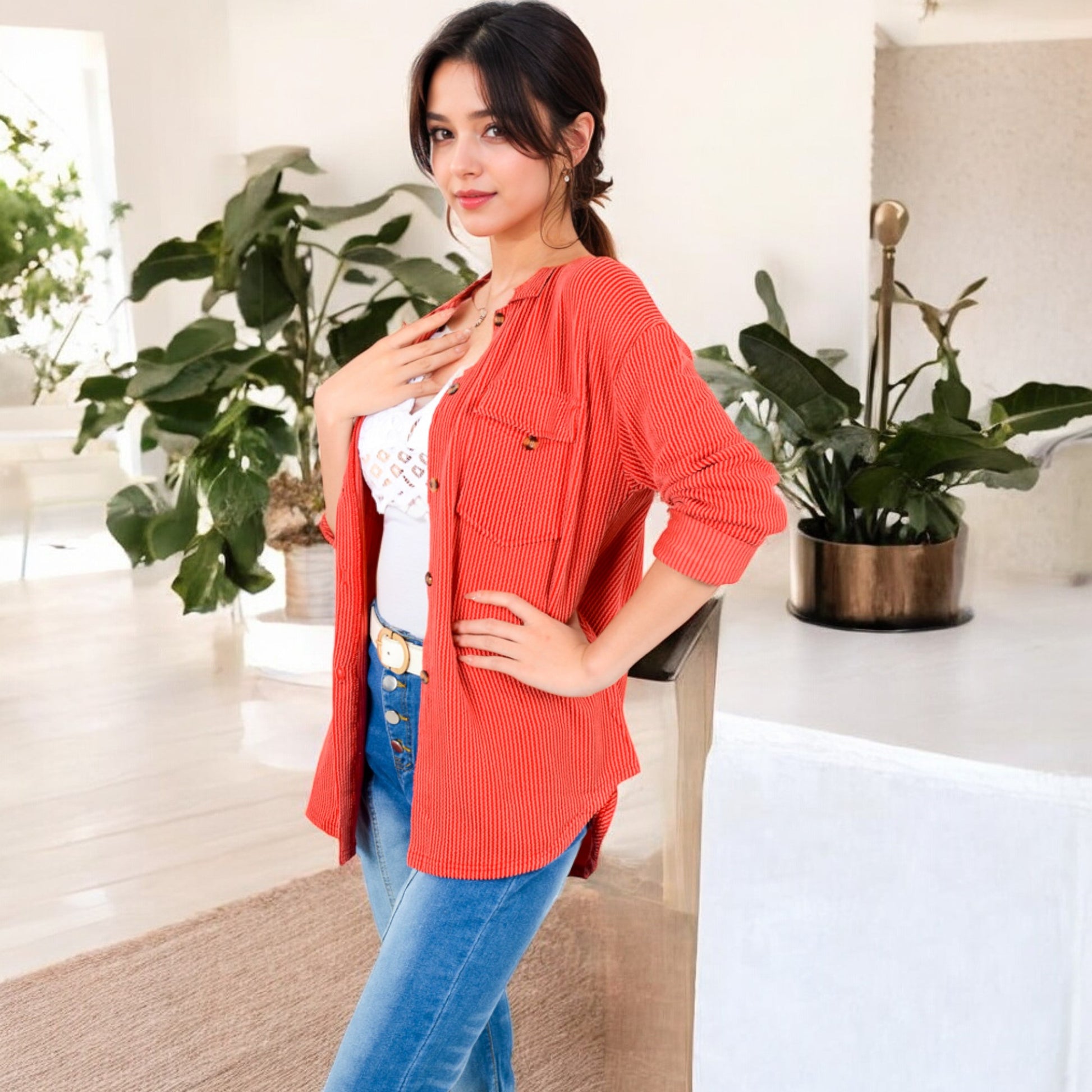 Anna-Kaci Women's Long Sleeve Button-Up Shirt with Chest Pockets and Textured Fabric
