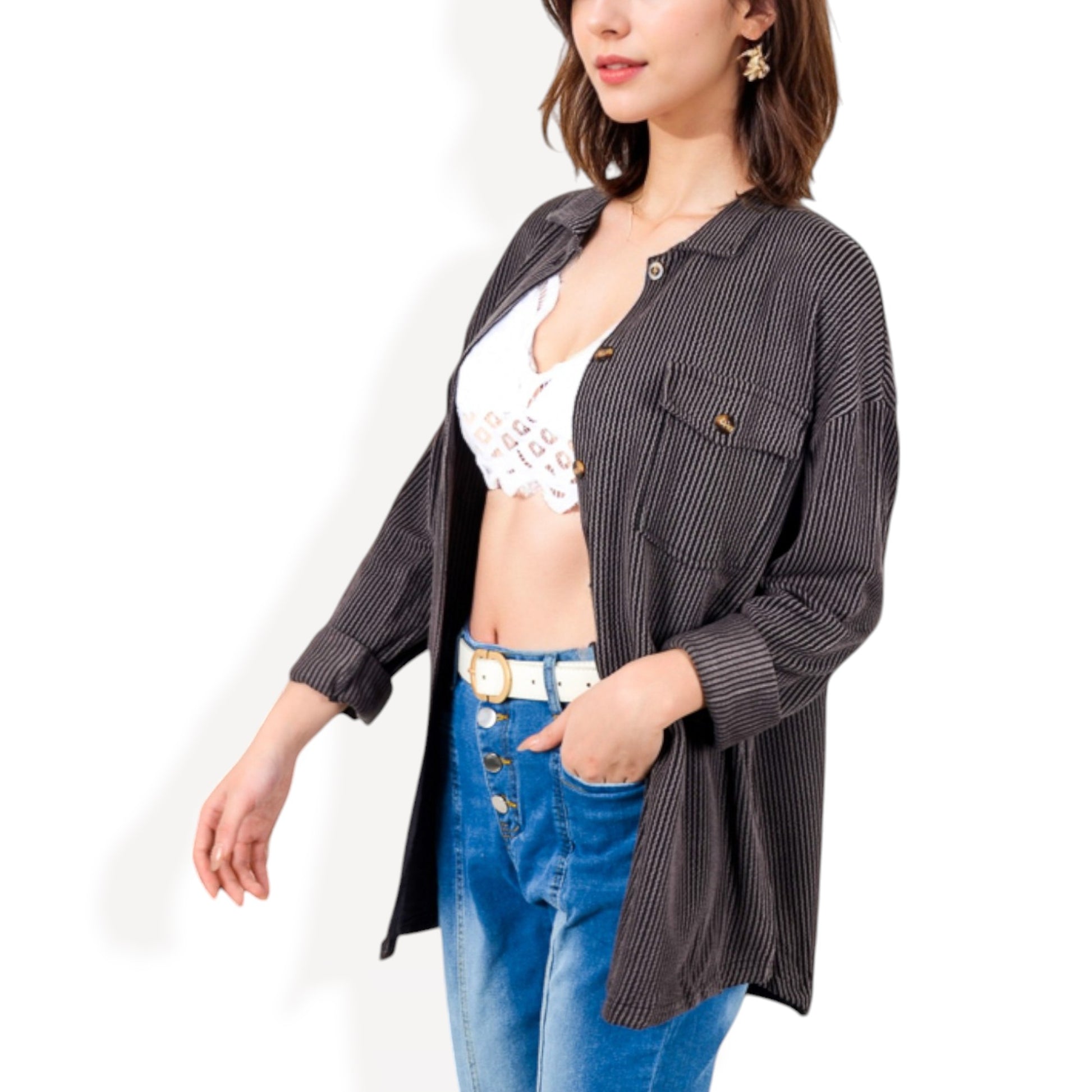 This versatile button-up shirt features long sleeves, a textured fabric for added depth, and convenient chest pockets. The relaxed silhouette ensures comfort while maintaining a polished look. Perfect for layering or wearing alone, it transitions effortlessly from casual days to semi-formal occasions. A timeless addition to your wardrobe.