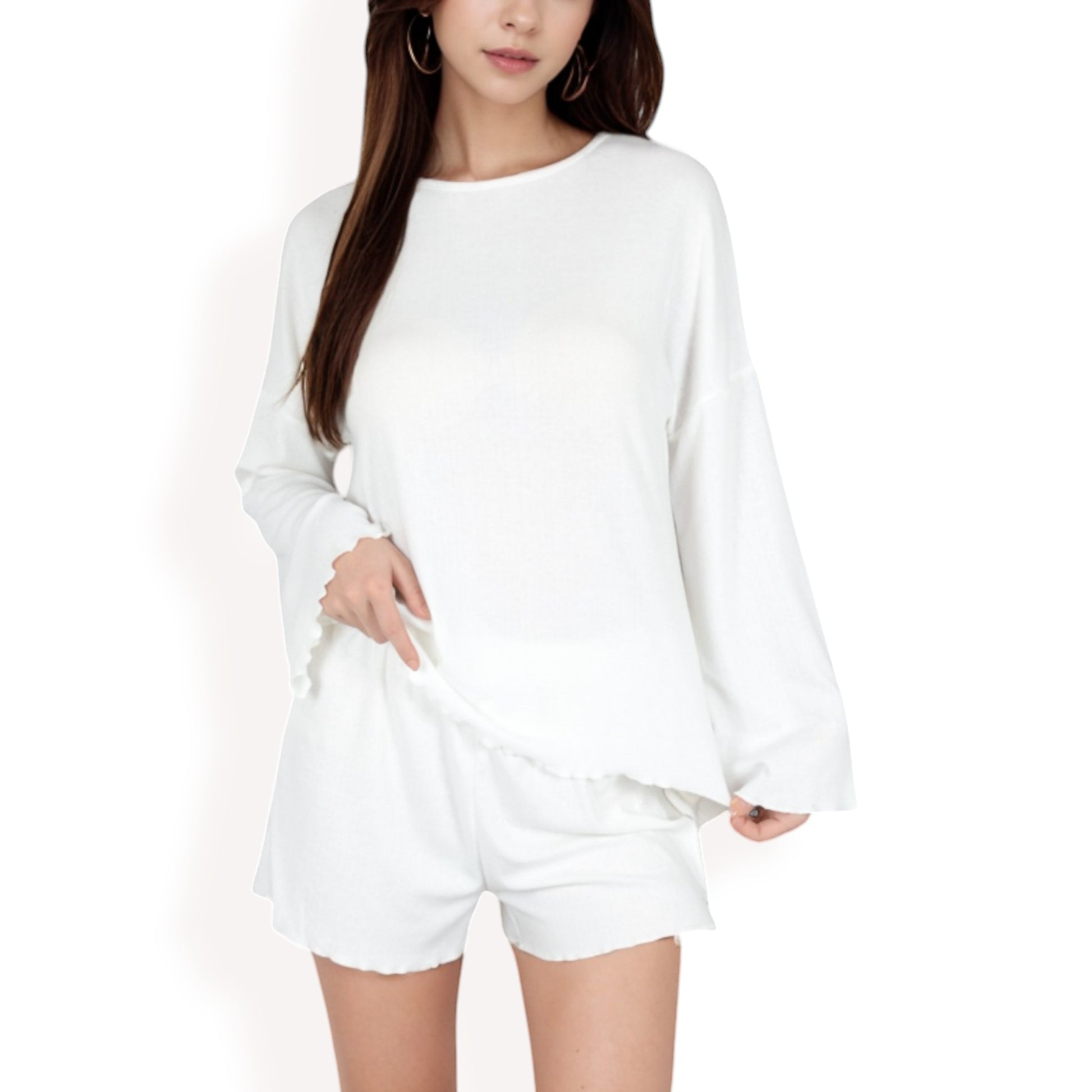 Anna-Kaci Women's Long Sleeve Lounge Top and Elastic Waist Shorts Set