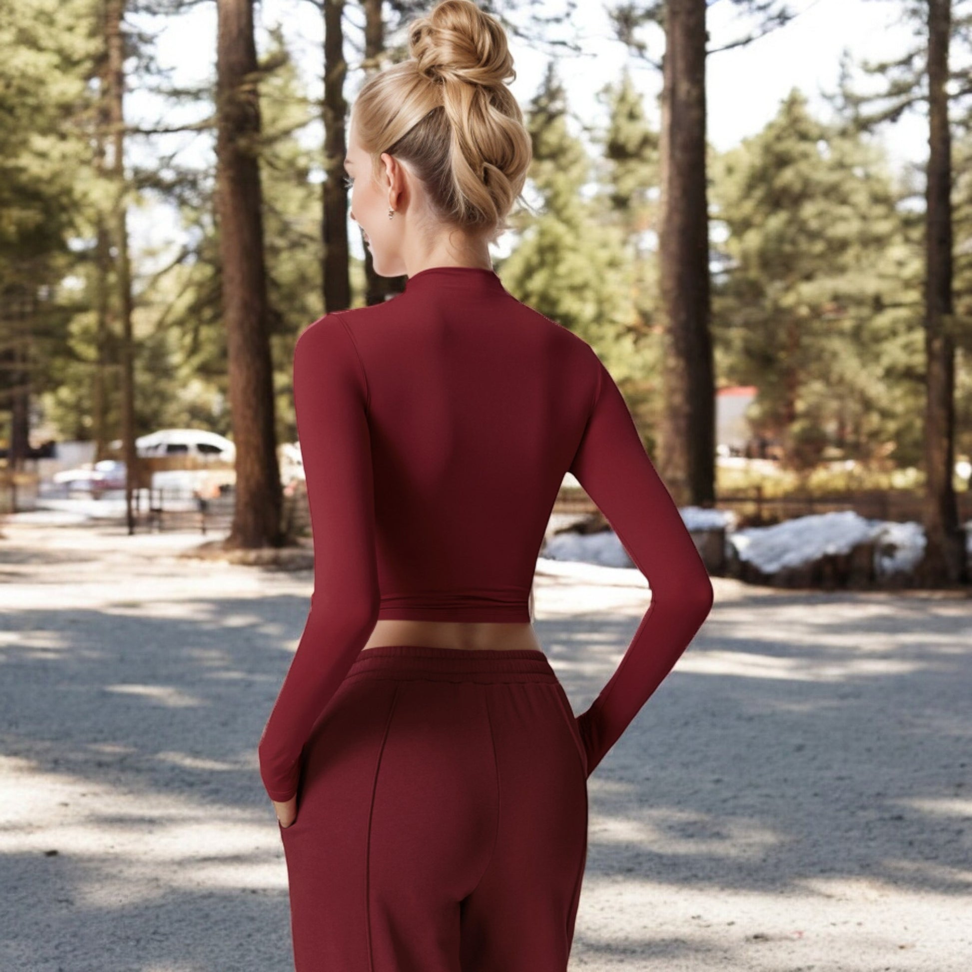 Anna-Kaci Women's Long Sleeve Mock Neck Cropped Activewear Top