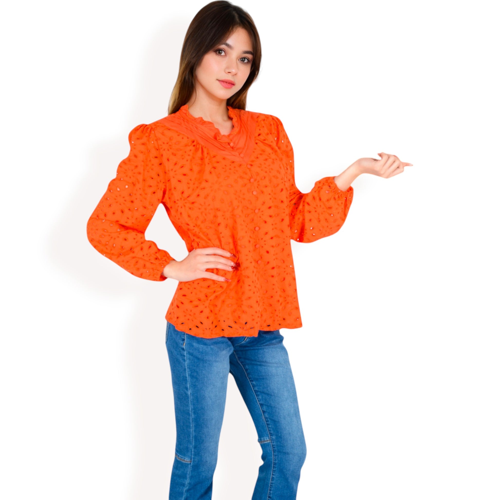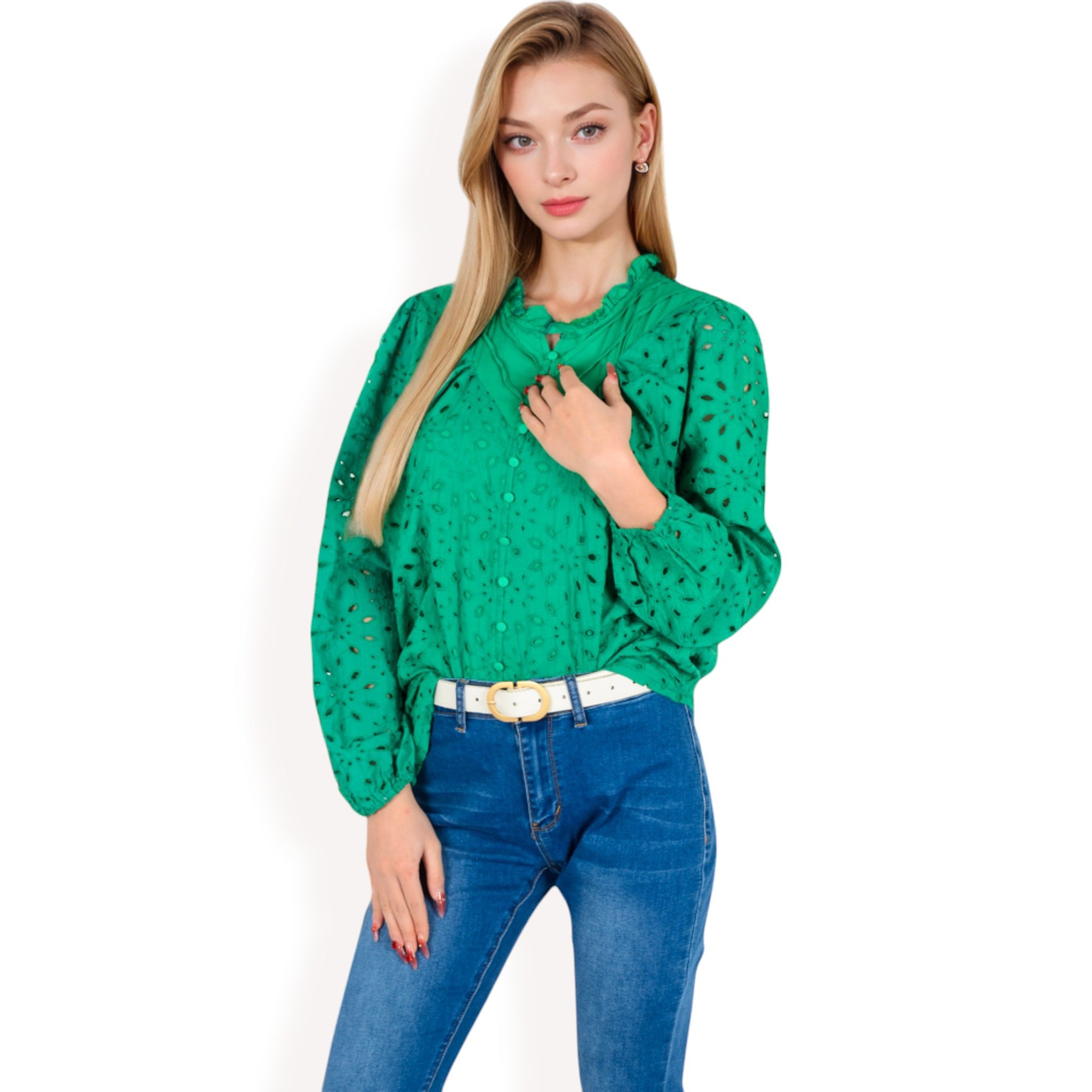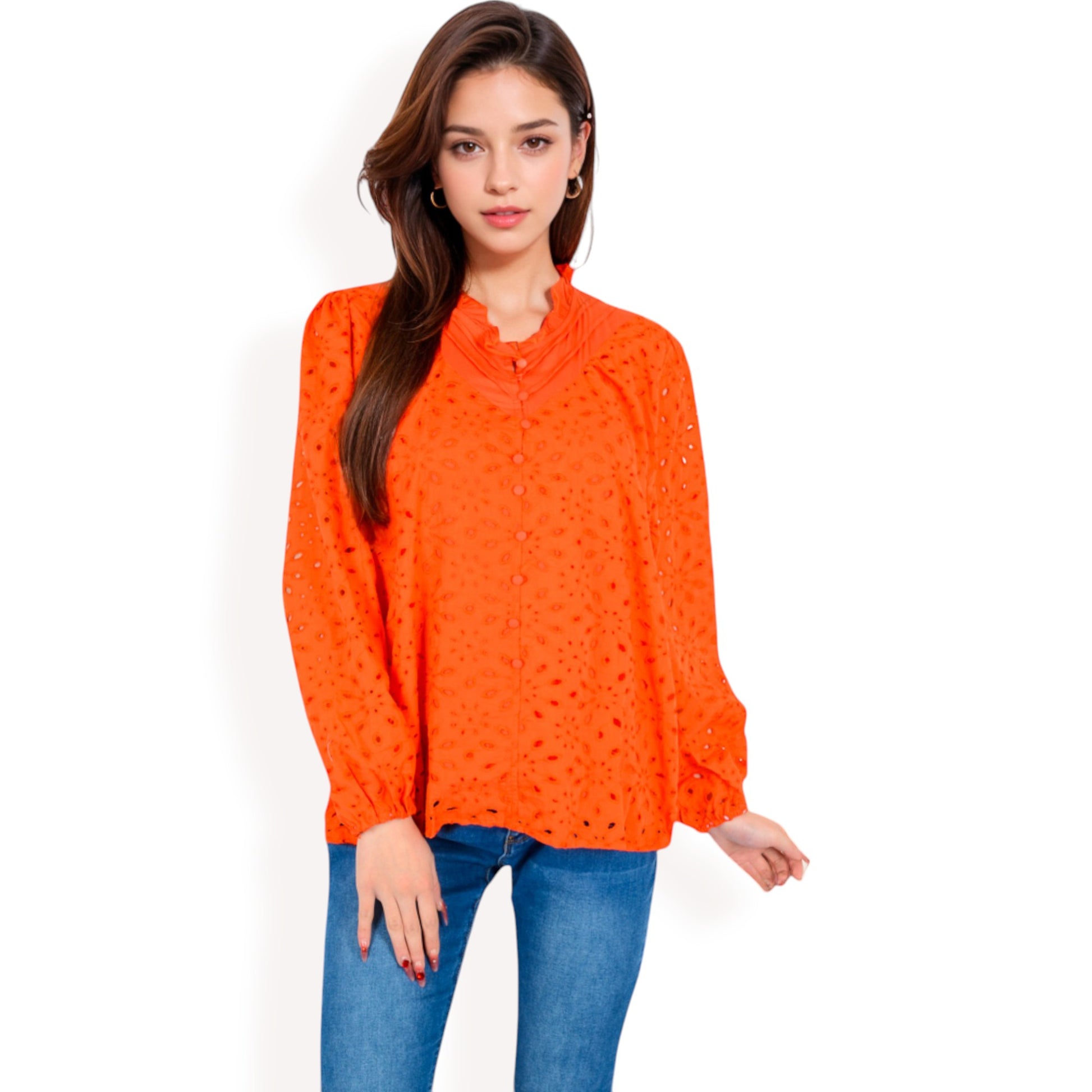 The Anna-Kaci Women's Floral Print Blouse combines elegance with a touch of femininity. Designed with a ruffled high neckline and long sleeves, this blouse showcases a vibrant floral print that's perfect for elevating any outfit. The lightweight fabric ensures comfort, making it ideal for casual or dressy occasions.