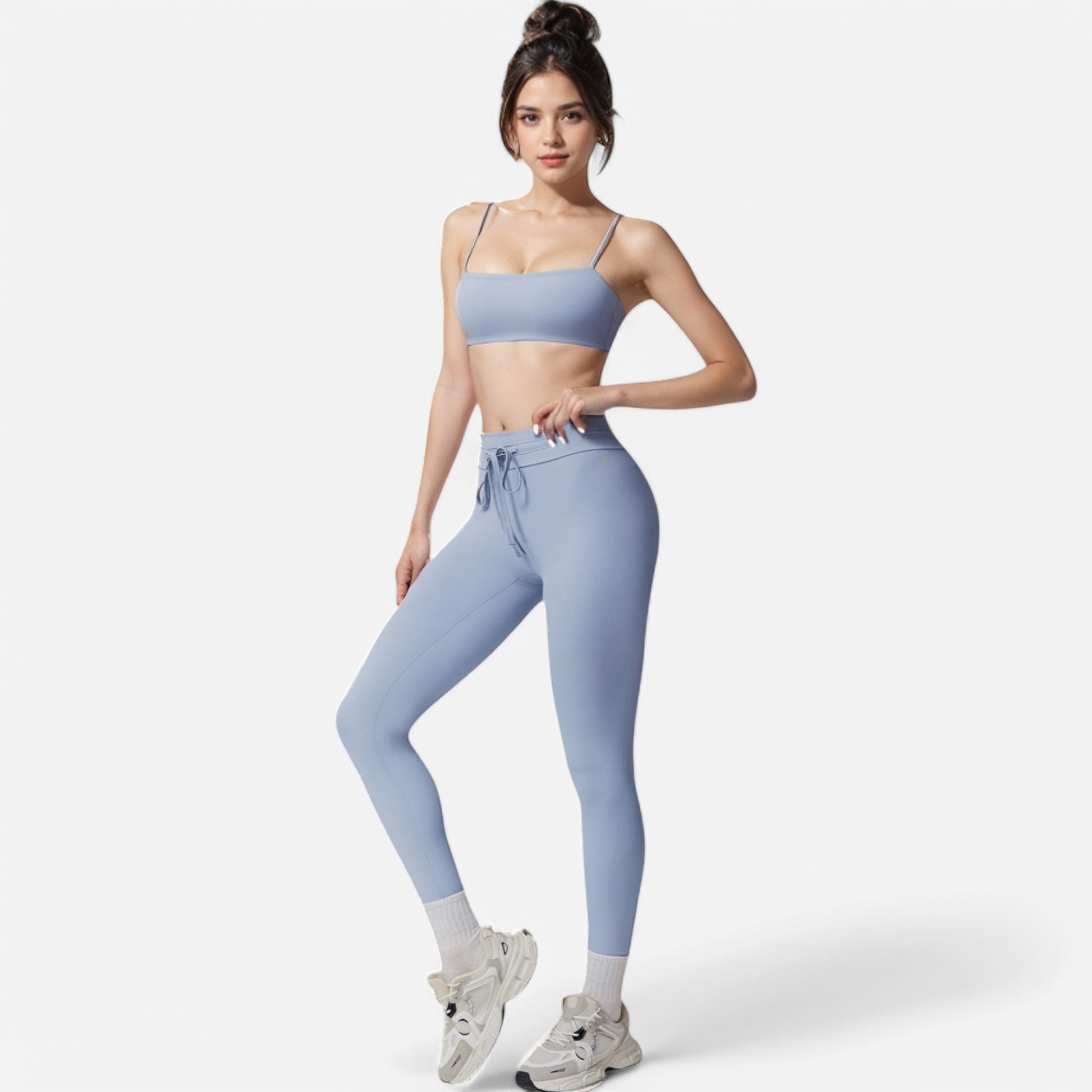 Anna-Kaci Women's High Waist Drawstring Leggings with Stretchy Fit