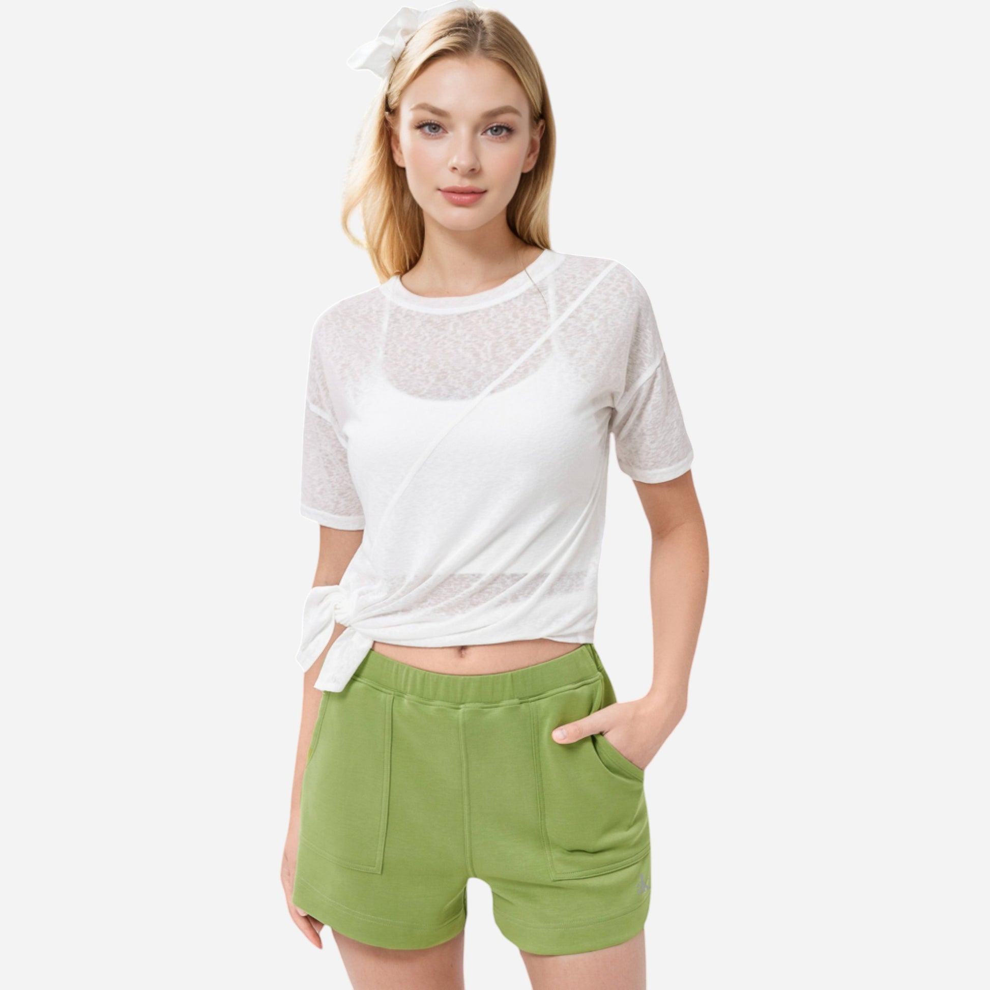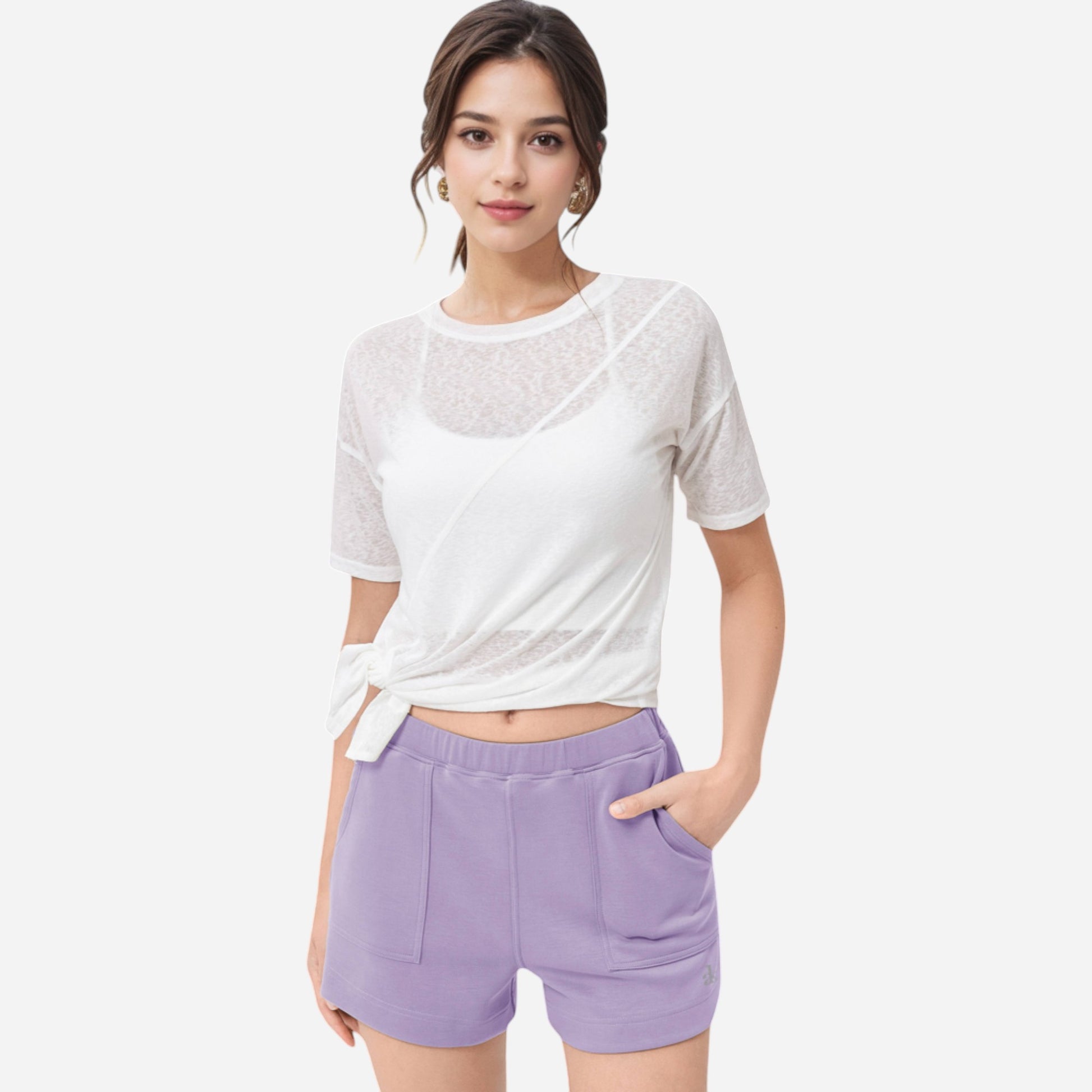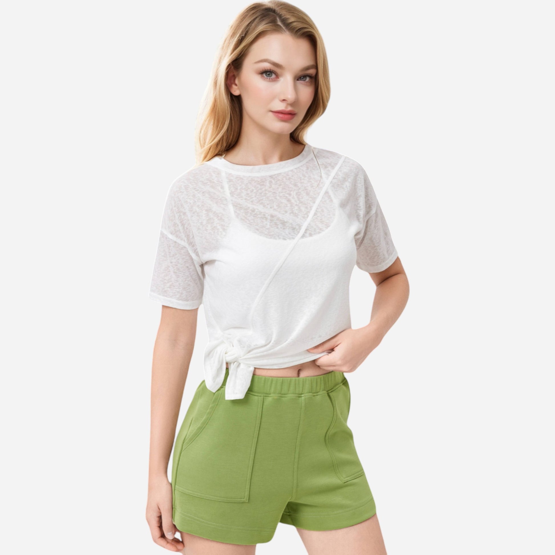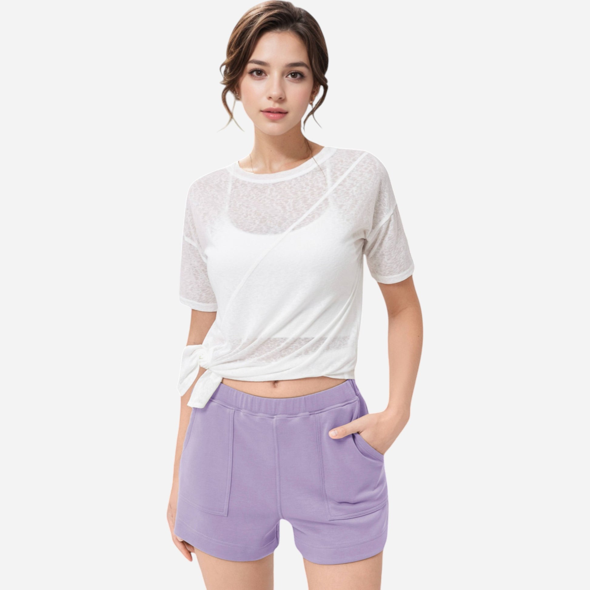 The Anna-Kaci Women's High Waist Elastic Shorts offer a perfect blend of comfort and style with their relaxed fit and functional side pockets. Designed with a high waist and an elastic waistband, these shorts provide a flattering silhouette while ensuring ease of movement. Made from soft, breathable fabric, they keep you comfortable throughout the day. Ideal for lounging, casual outings, or light workouts, these versatile shorts are a must-have addition to your wardrobe.
