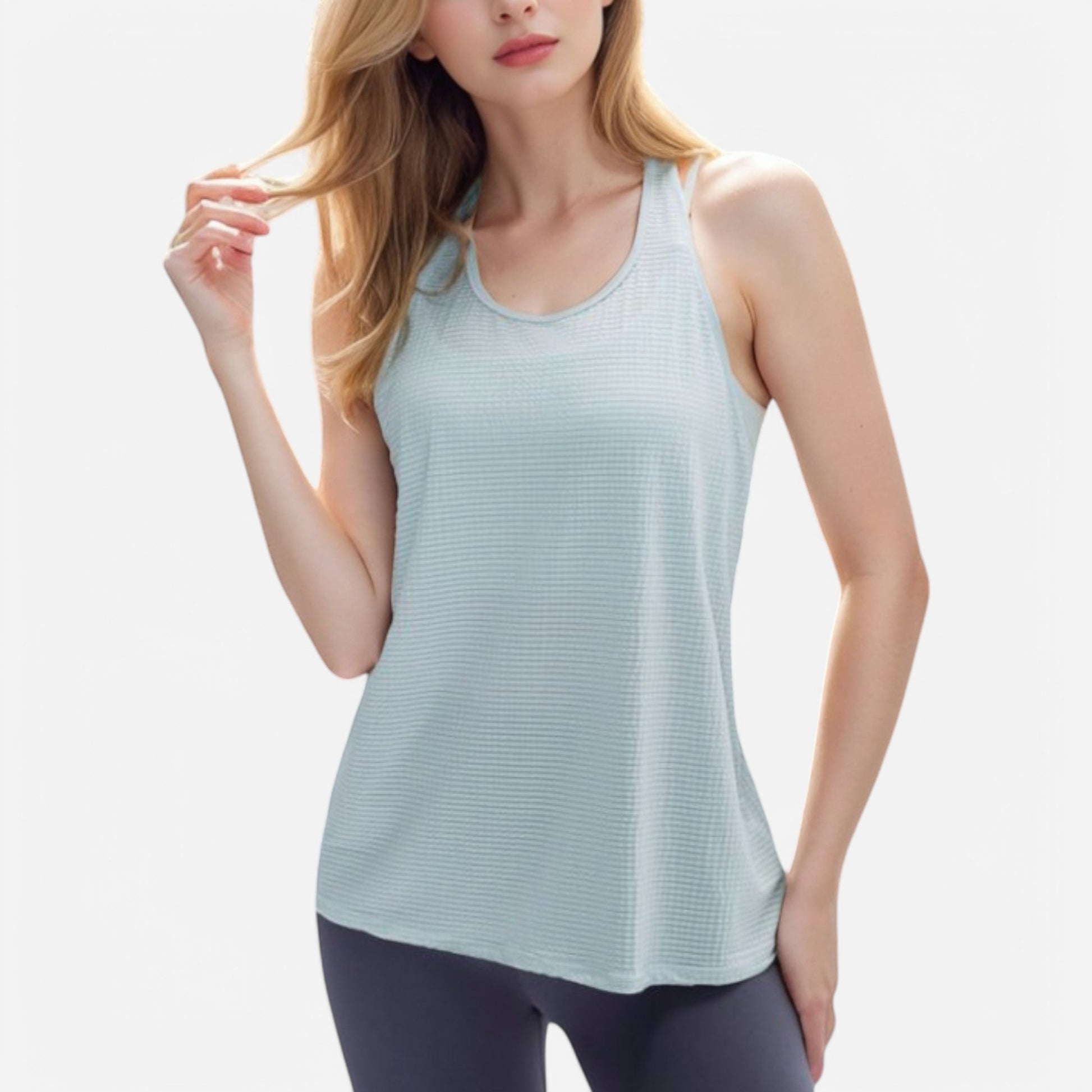 The Anna-Kaci Women's Lightweight Racerback Tank Top is designed for comfort and style with its textured stripe pattern and breathable fabric. Featuring a relaxed fit and racerback design, this tank allows for unrestricted movement, making it ideal for workouts or casual wear. Its lightweight, moisture-wicking material keeps you cool and comfortable throughout the day. Perfect for layering or wearing on its own, this versatile tank is a must-have for an active wardrobe.