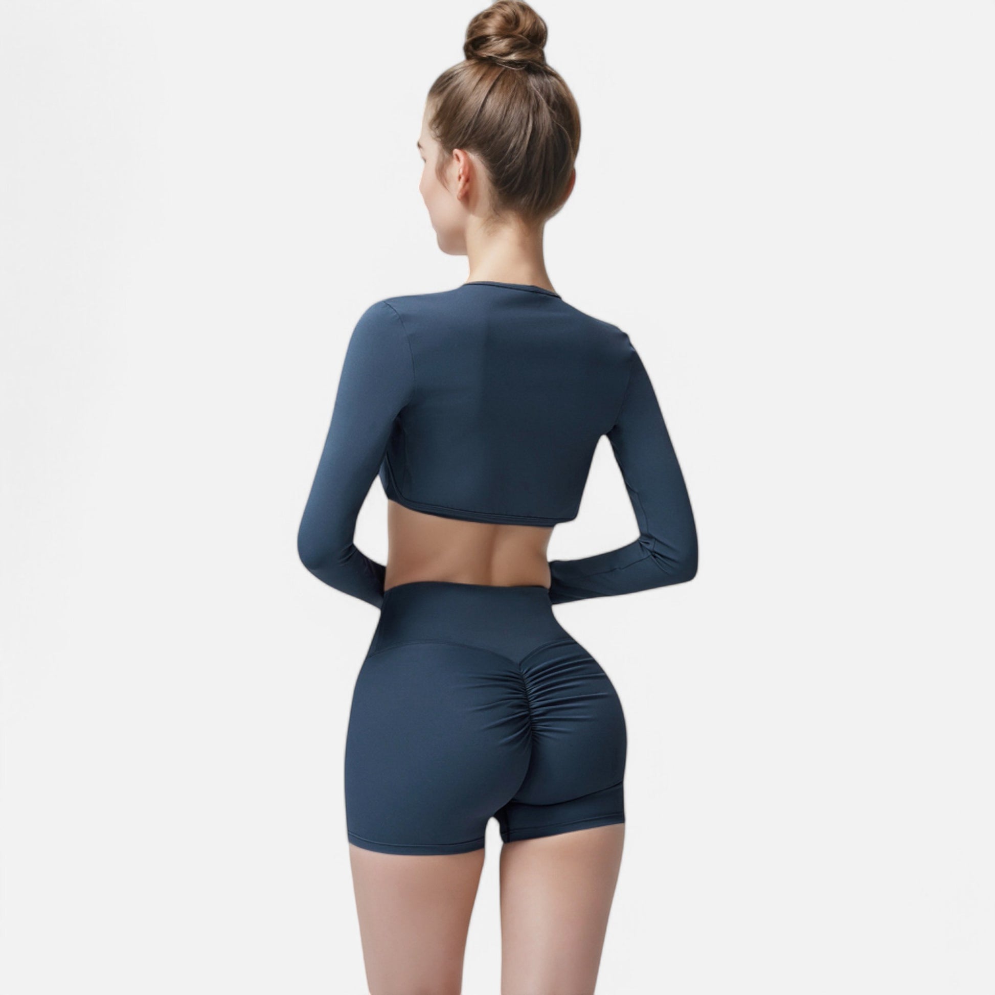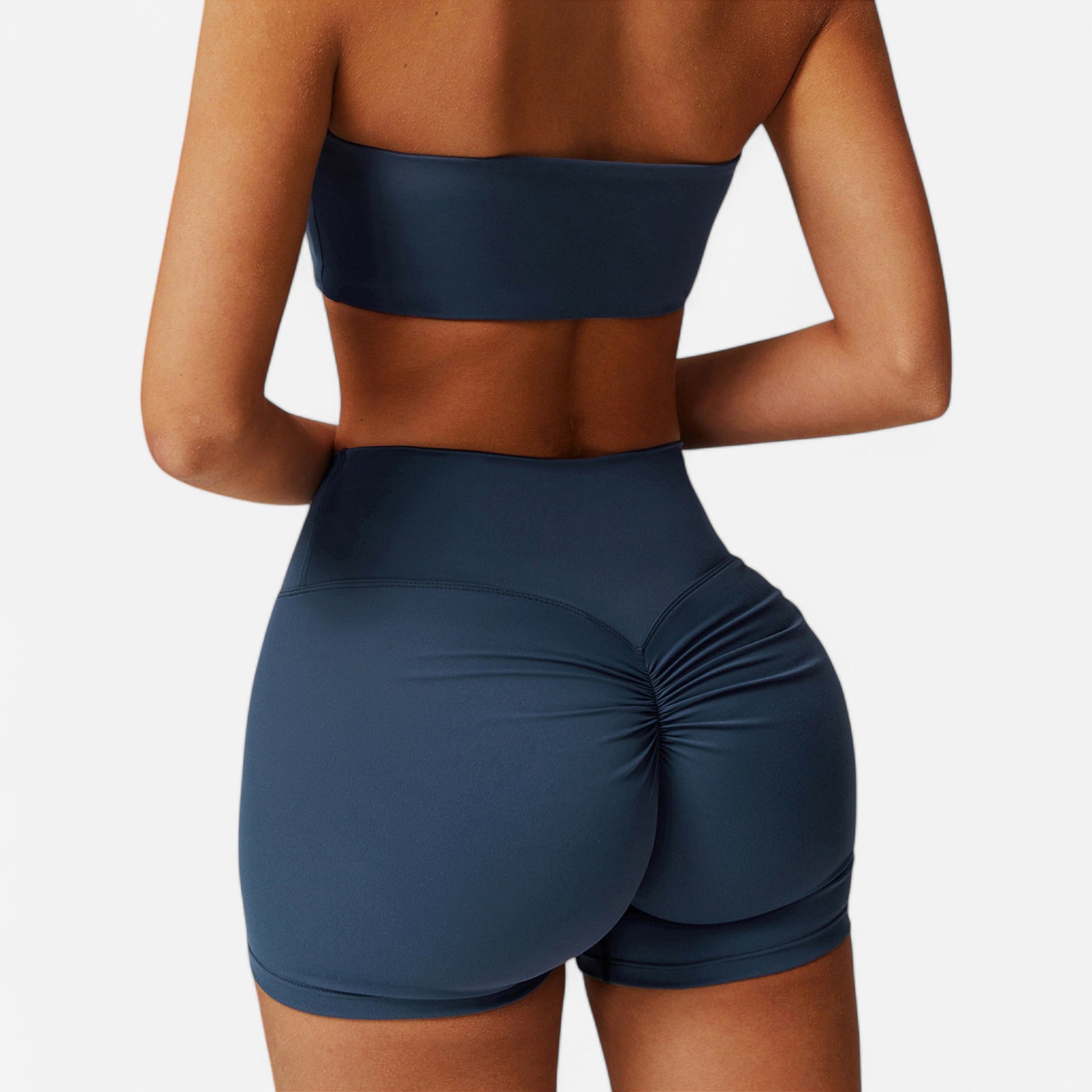 The Anna-Kaci Women's High Waist Ruched Seamless Shorts are designed for a flattering, sculpted fit. Featuring a ruched back detail that enhances your curves, these shorts are crafted from seamless, stretchy fabric for maximum comfort and flexibility. The high waistband provides a secure, supportive feel, making them perfect for both workouts and casual wear. Their versatile design pairs effortlessly with crop tops, tanks, or oversized tees for a chic, sporty look.