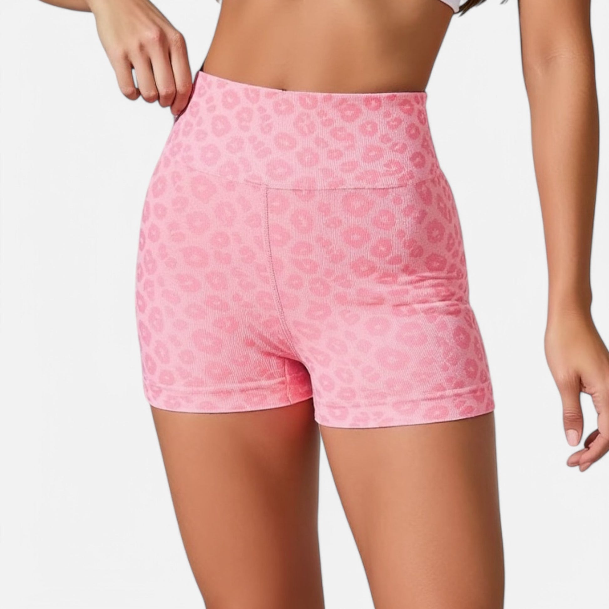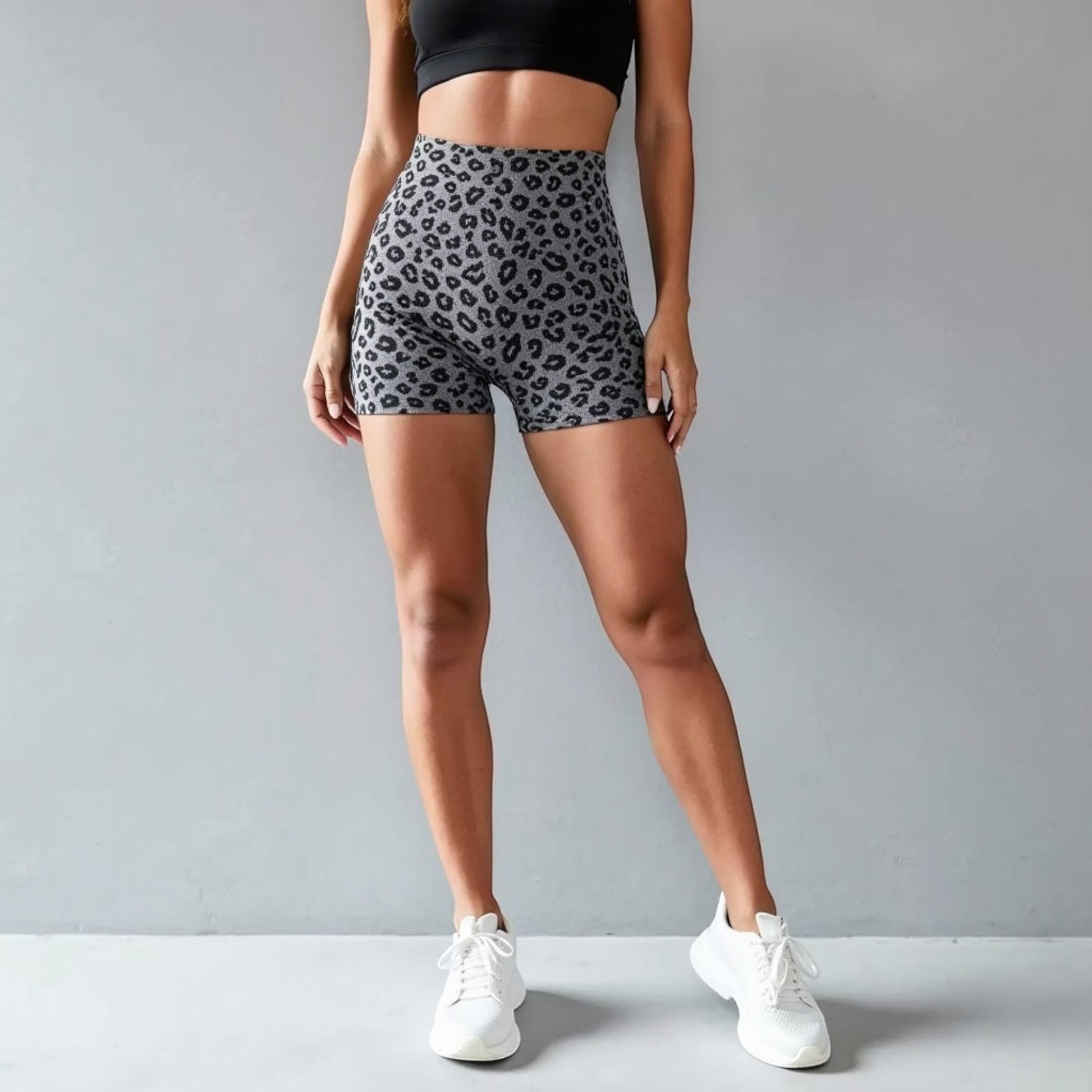 Anna-Kaci Active Women's Seamless Leopard Print Biker Shorts with High Waist and Scrunch Detail