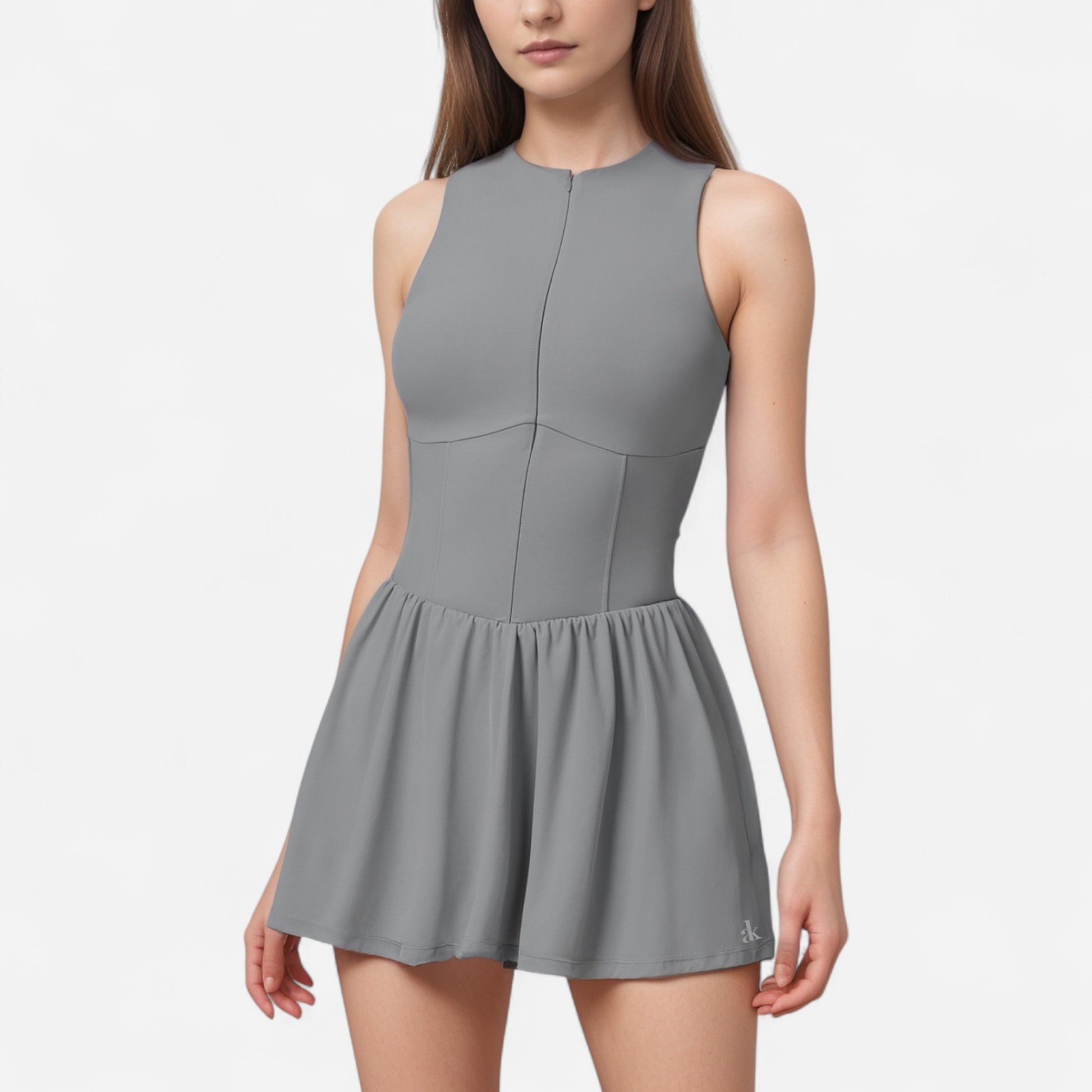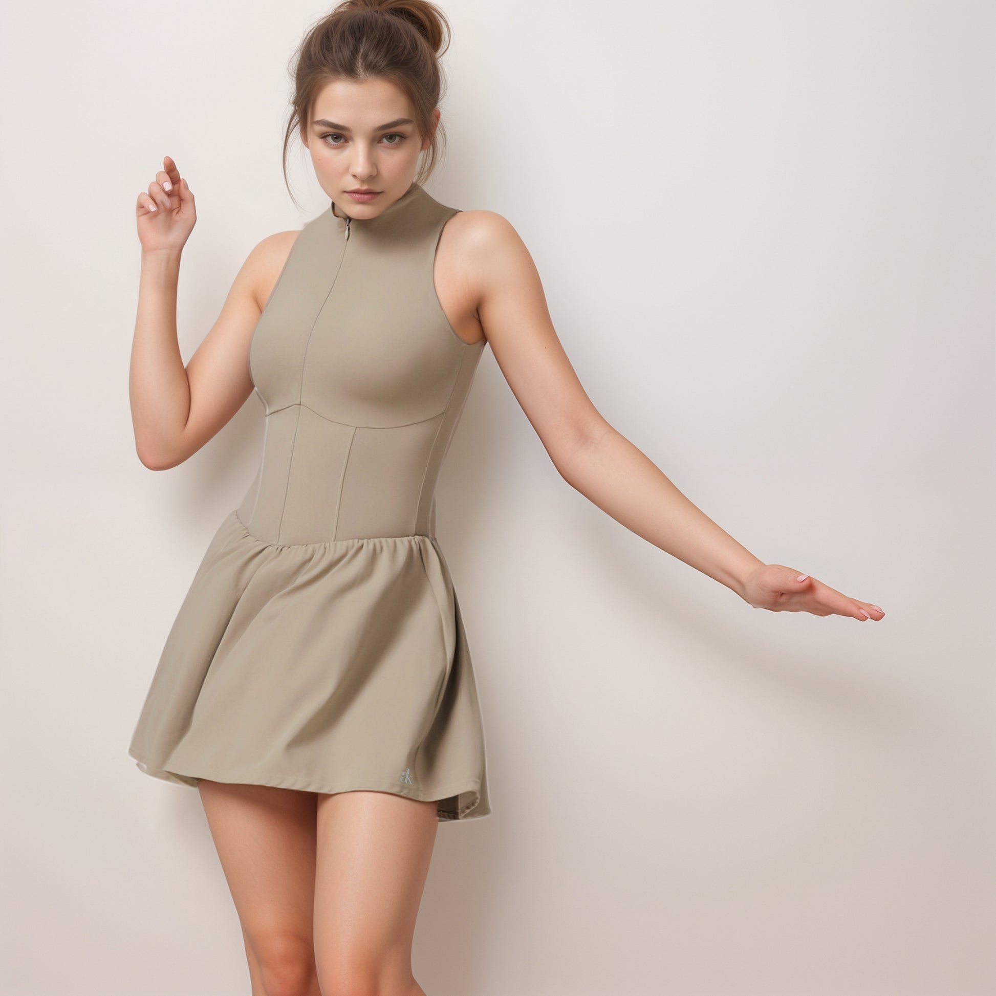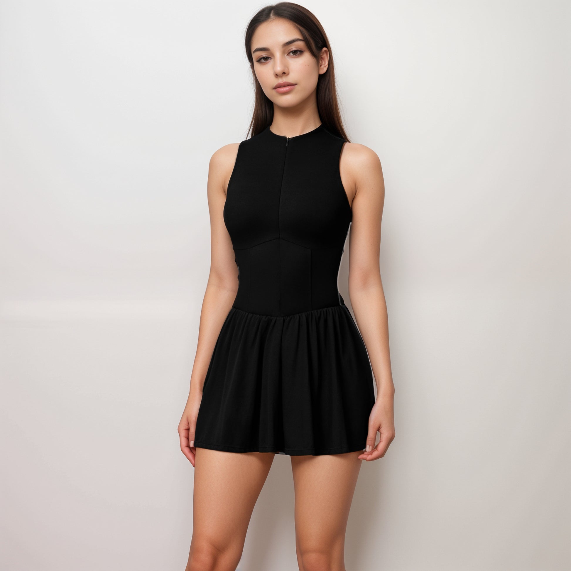The Anna-Kaci Women's Activewear Romper blends function and femininity with a sleek high neckline, built-in shorts, and a lightweight skirt overlay. Designed for movement, the romper features a fitted bodice for support and a flared hem that offers a stylish, breezy silhouette. Soft, stretchy fabric ensures comfort while side pockets add practical flair. Perfect for staying active or making a statement on casual days.