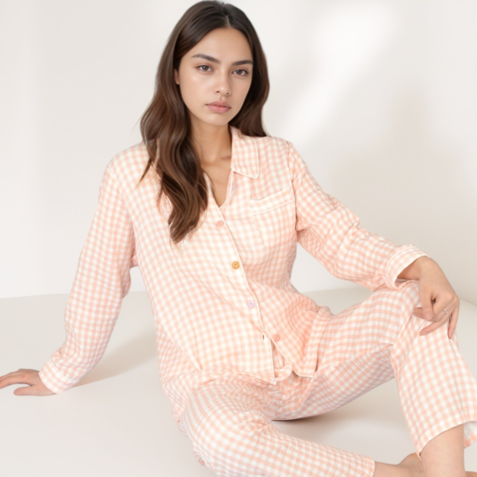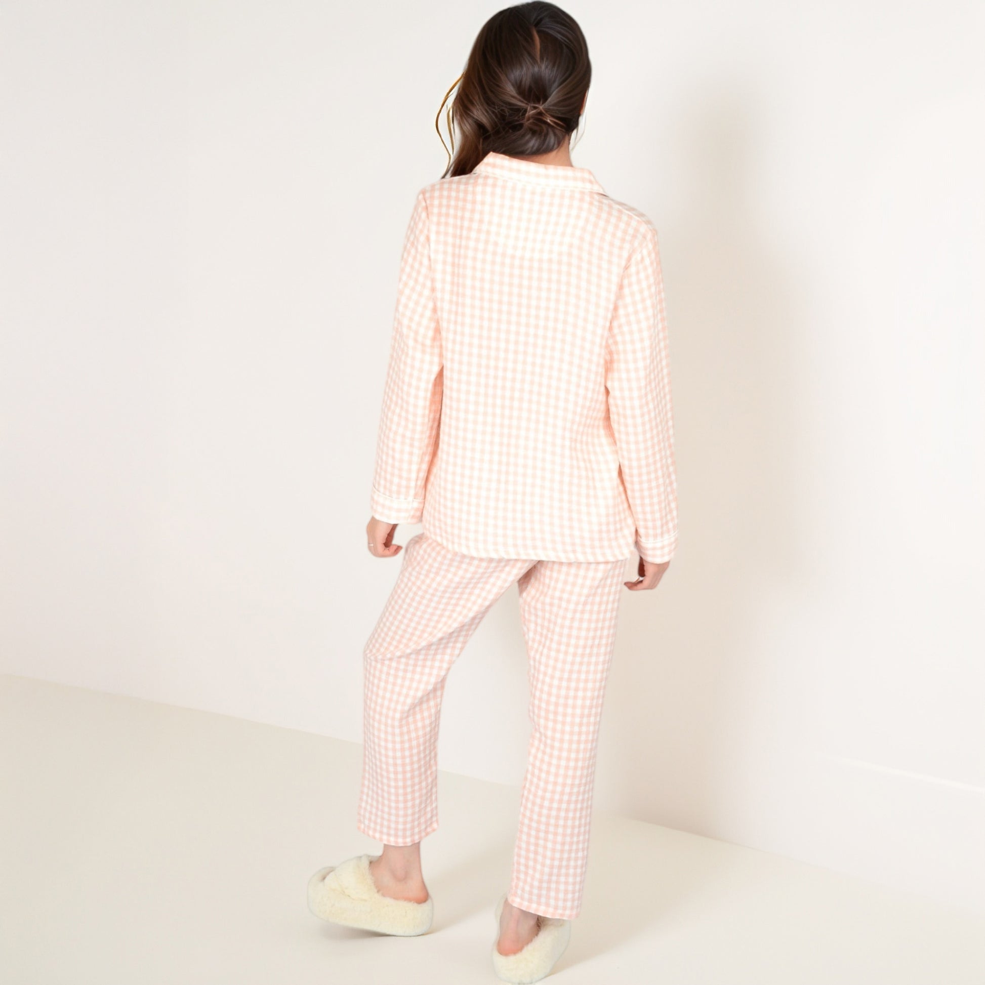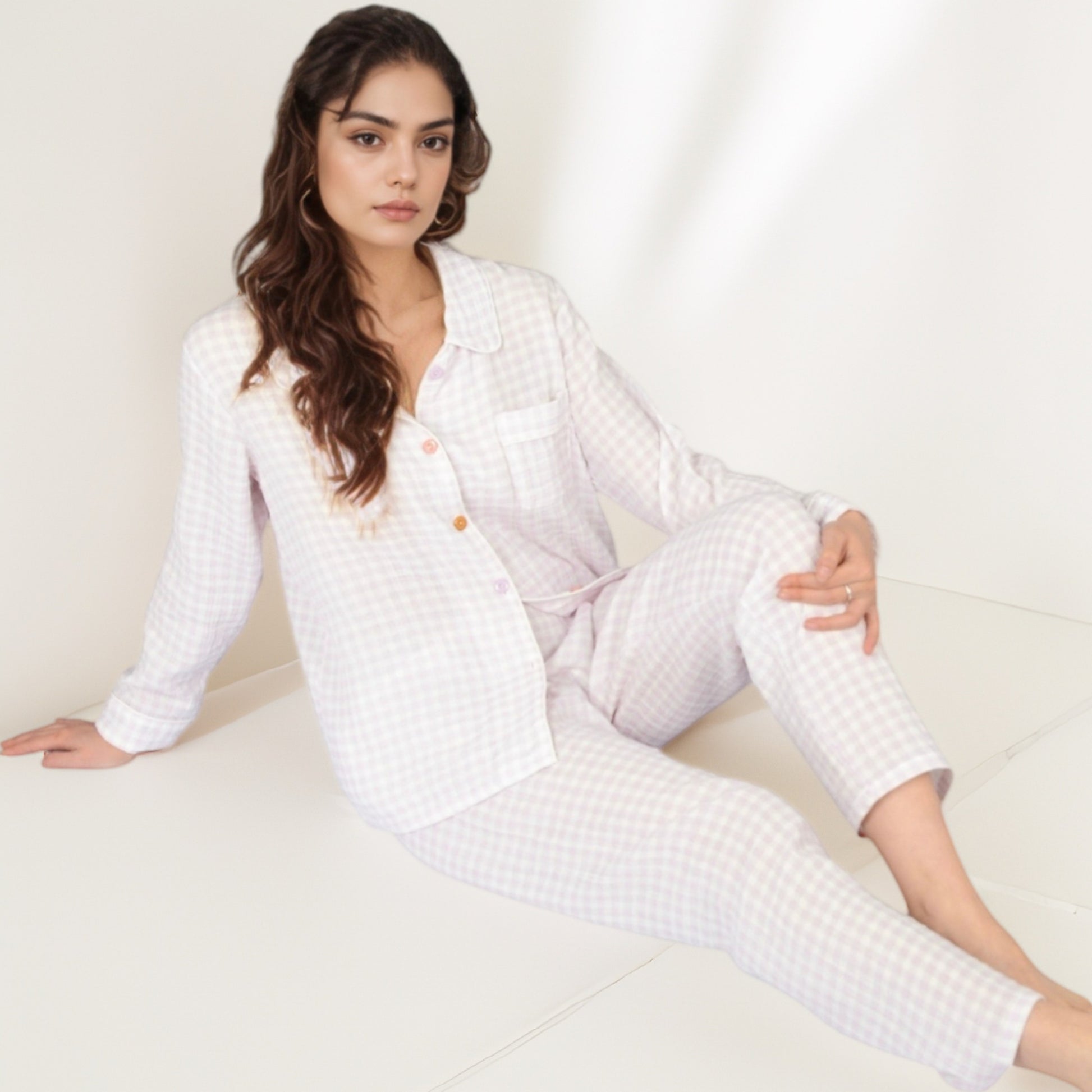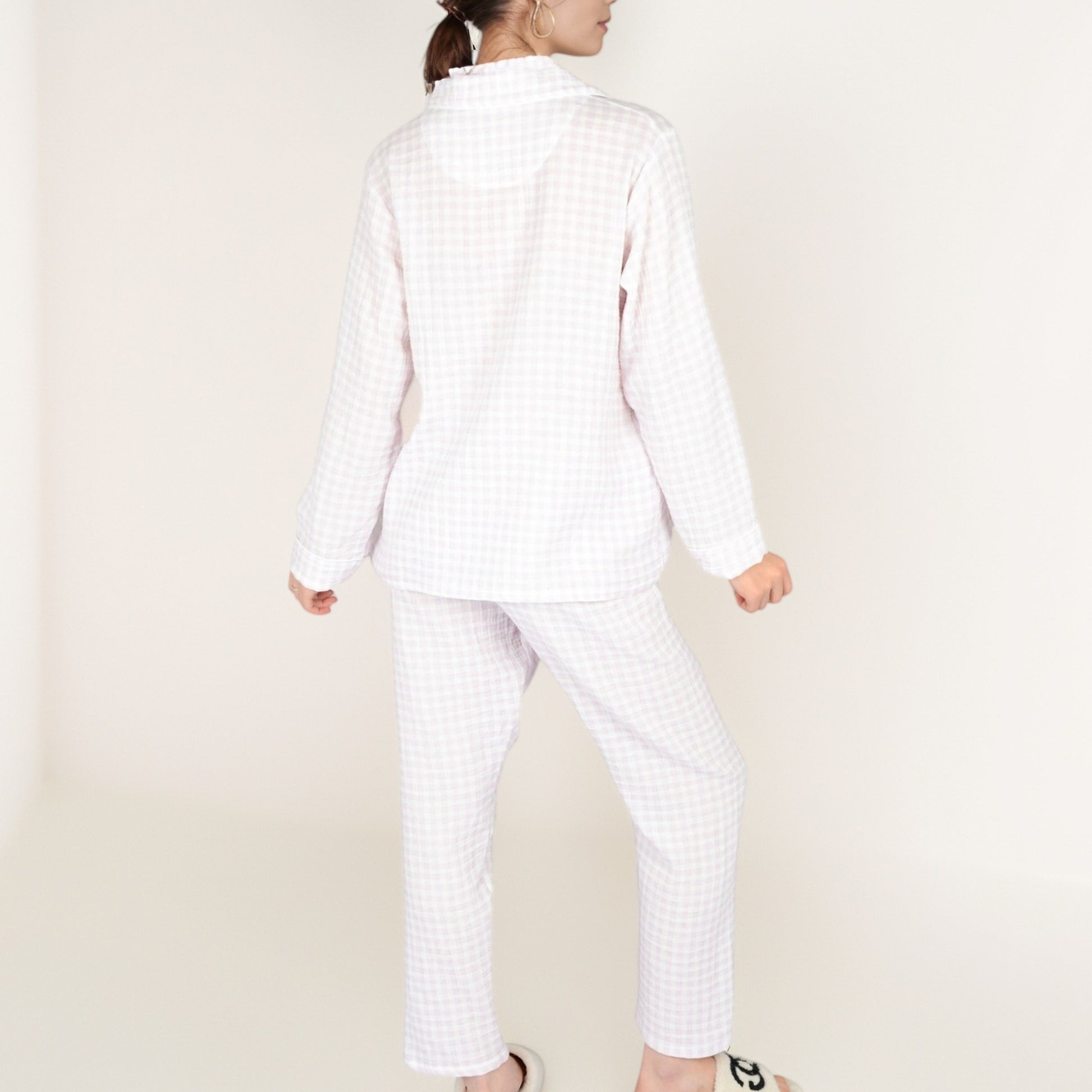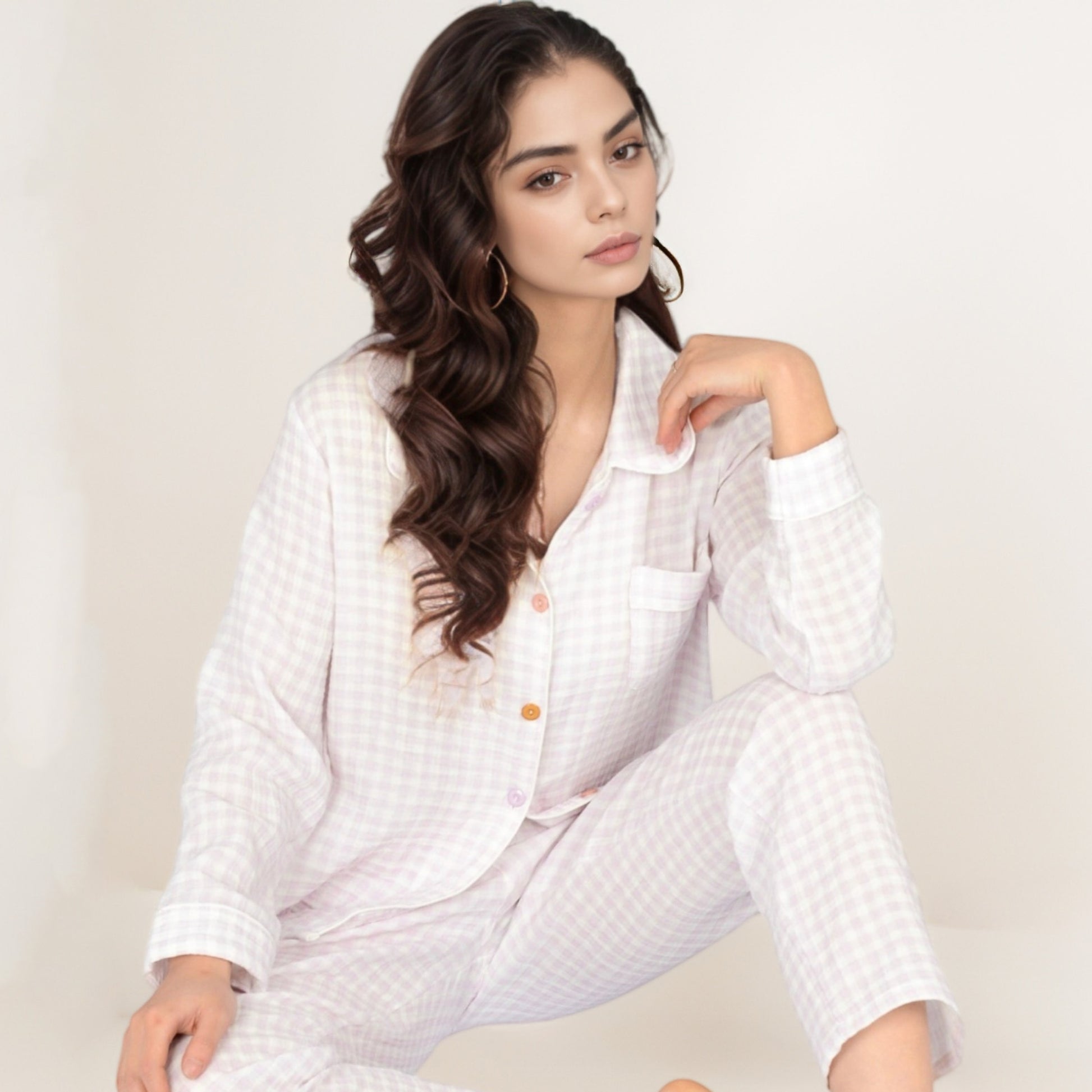 The Anna-Kaci Women's Gingham Pajama Set offers a playful update to classic sleepwear. Featuring a cheerful checkered pattern with multicolored buttons, this set includes a button-up long sleeve top with a chest pocket and relaxed fit straight-leg pants. The soft and breathable fabric ensures all-night comfort and ease. Add a pop of charm to your lounge routine with this cozy, coordinated two-piece set.