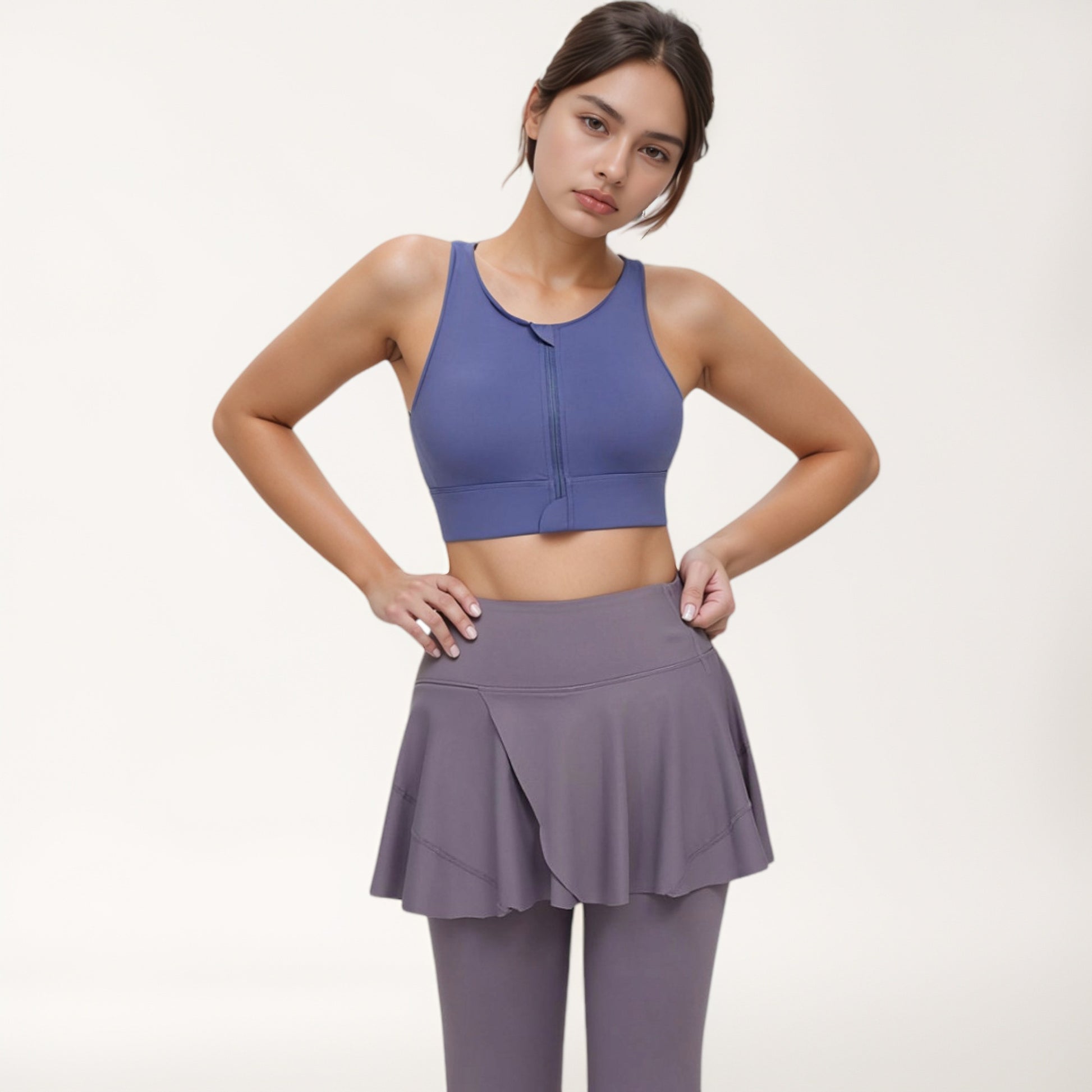 The Anna-Kaci Women's Front Zip Sports Crop Top is designed with a sleek, supportive silhouette that blends style with performance. A front zipper closure adds function and style, while the wide shoulder straps provide enhanced stability. The scoop neckline and cropped length create a flattering athletic look. Crafted from smooth, stretchy fabric, this top is perfect for medium-impact activities or athleisure wear.