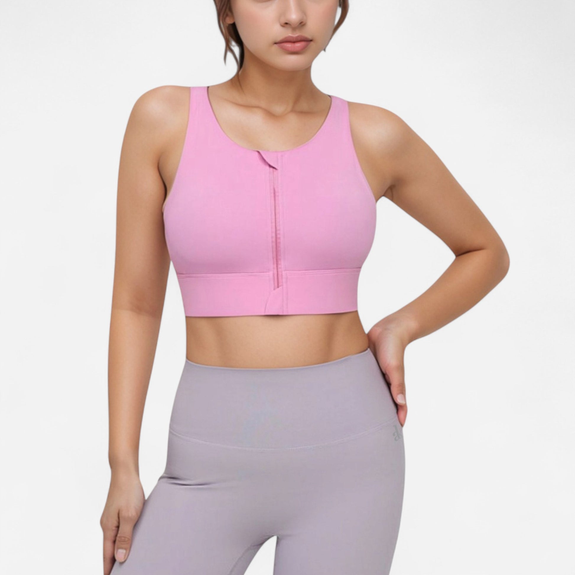 Anna-Kaci Women's Front Zip Sports Crop Top with Scoop Neck and Wide Straps for Support