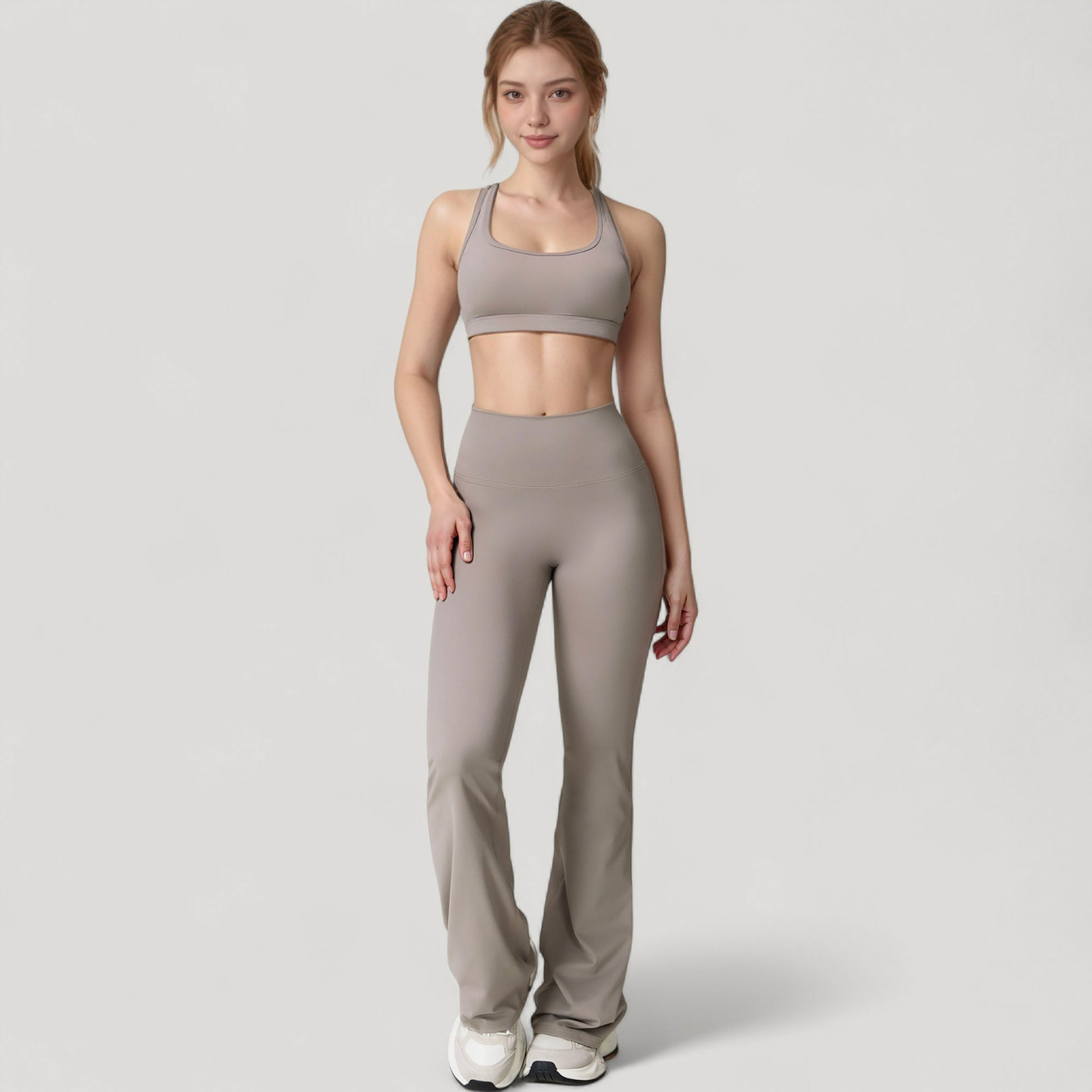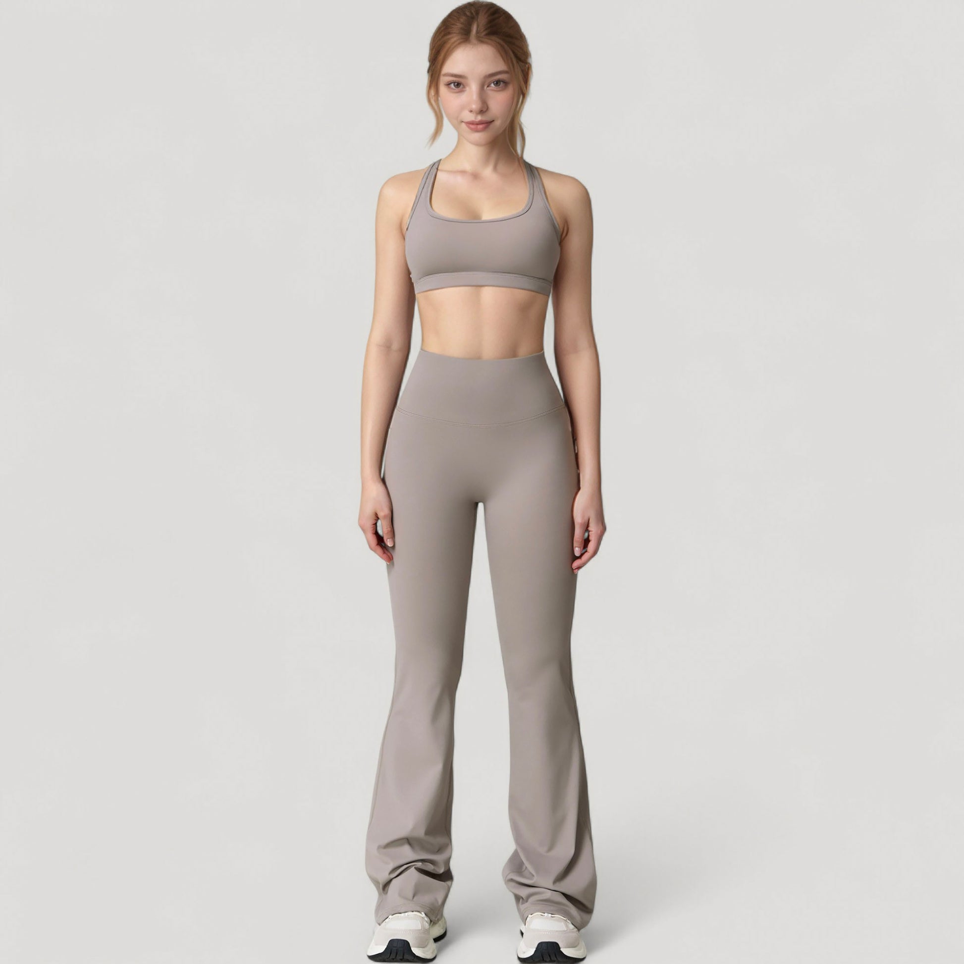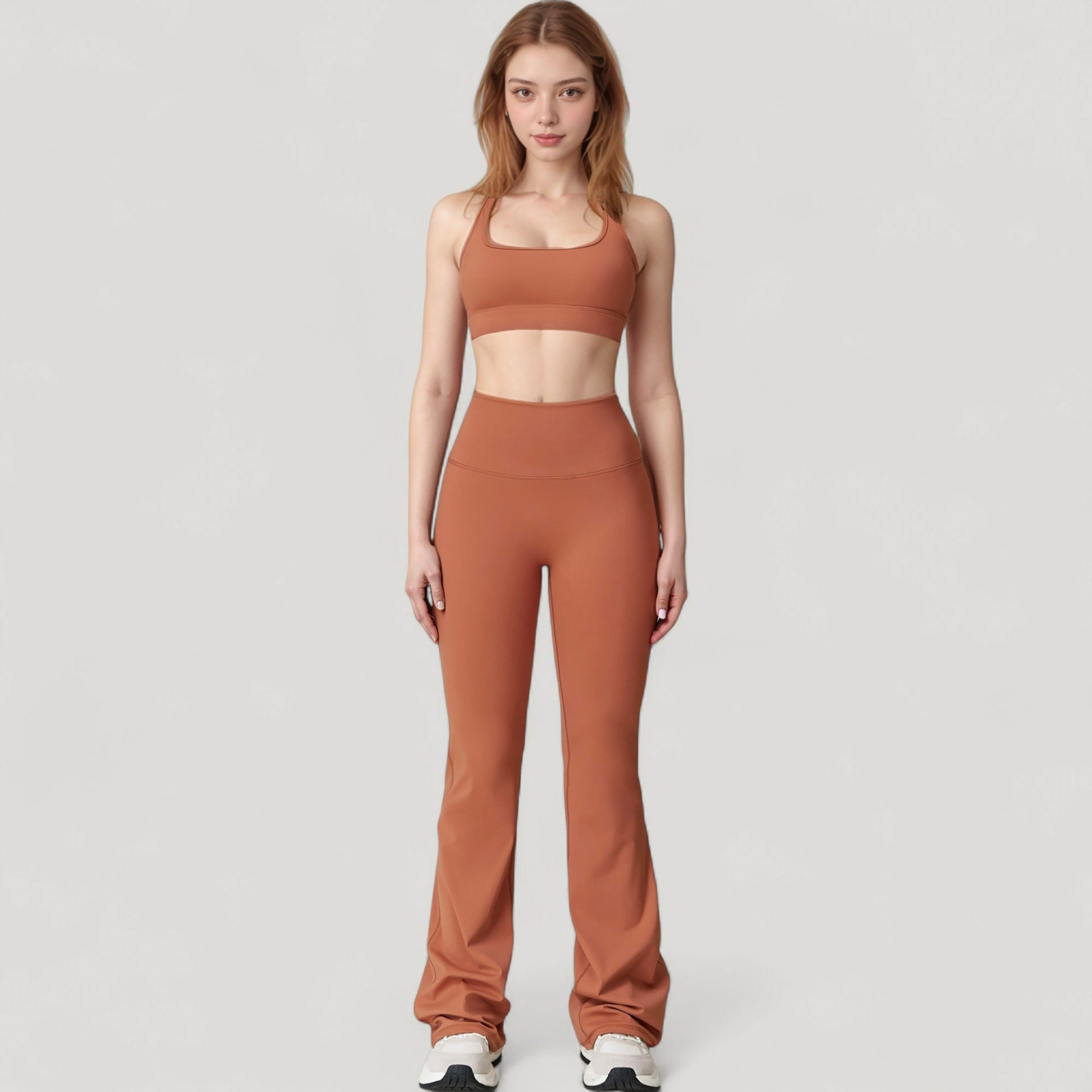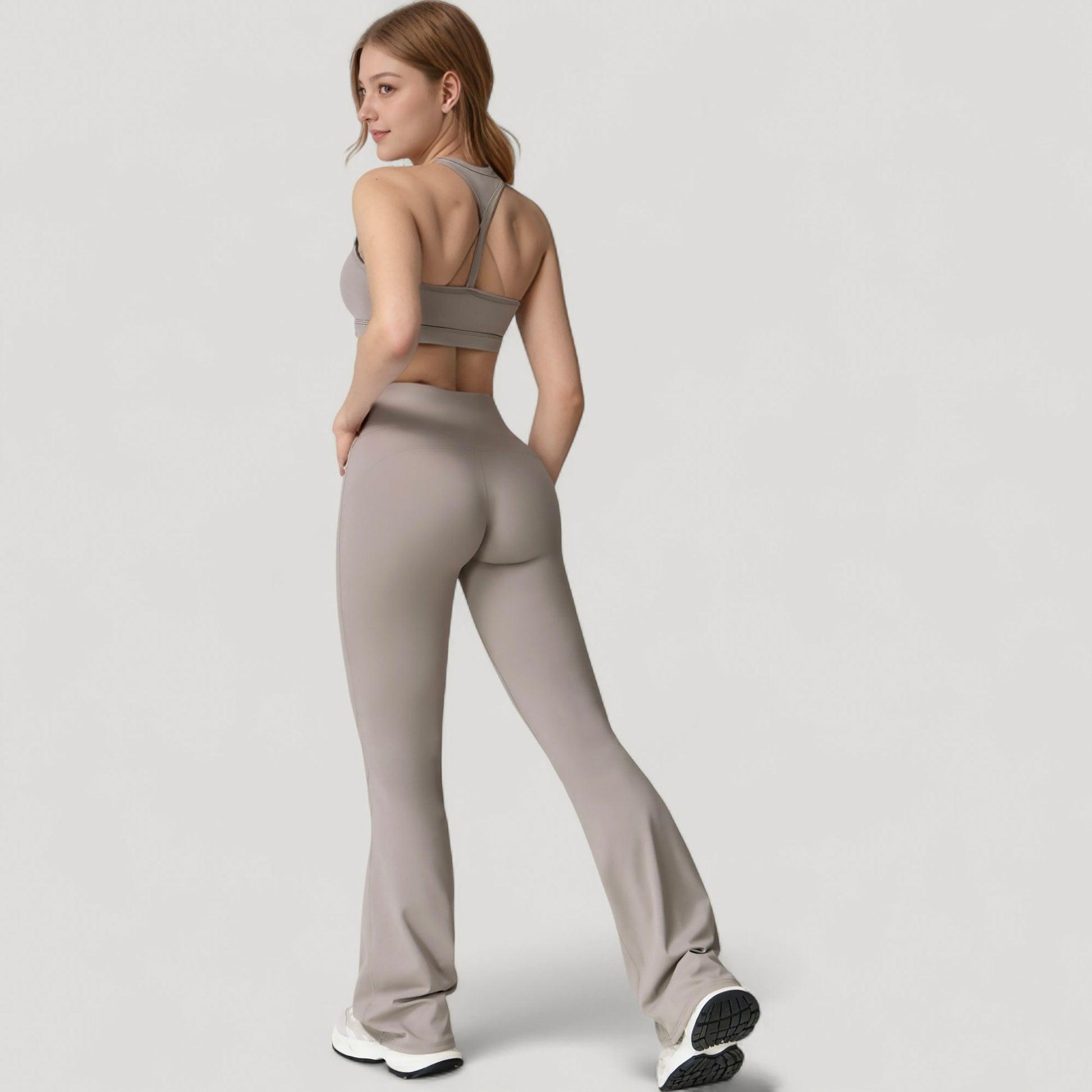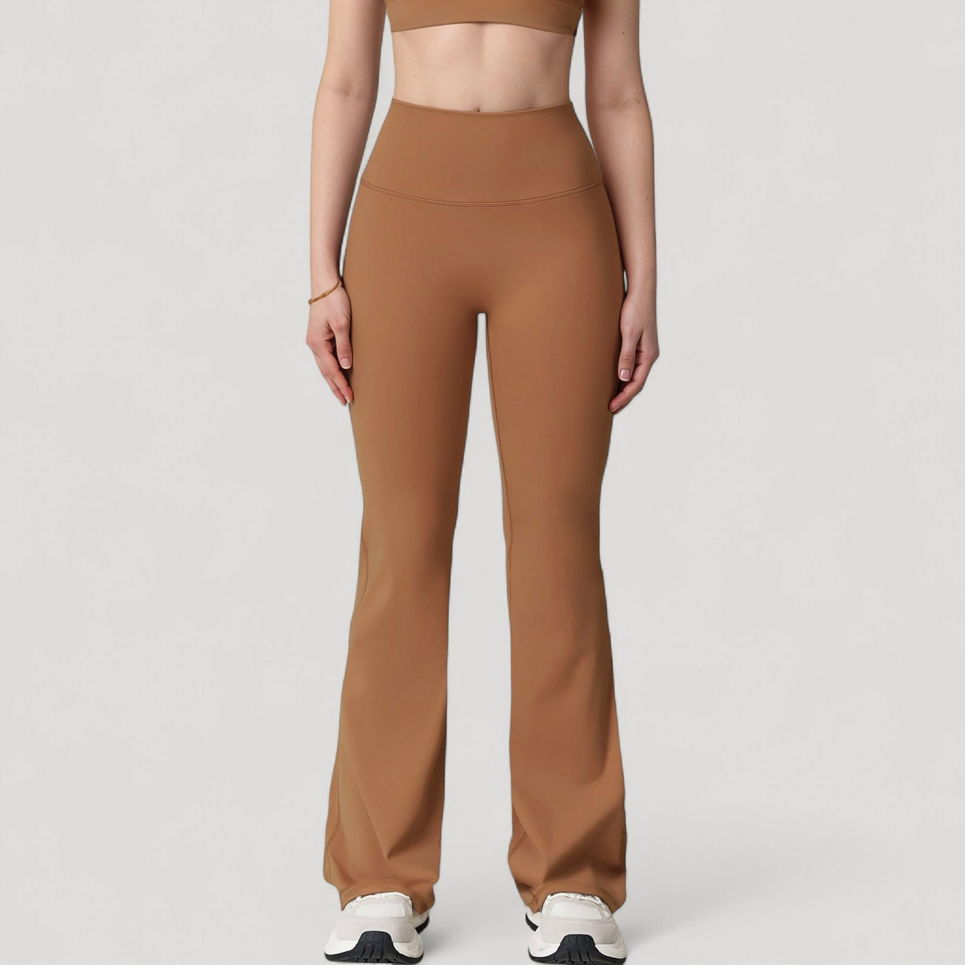 Anna-Kaci Active Women's High Waist Flared Leg Stretch Pants Smooth Fabric Seamless Waistband Active Lounge Bottoms