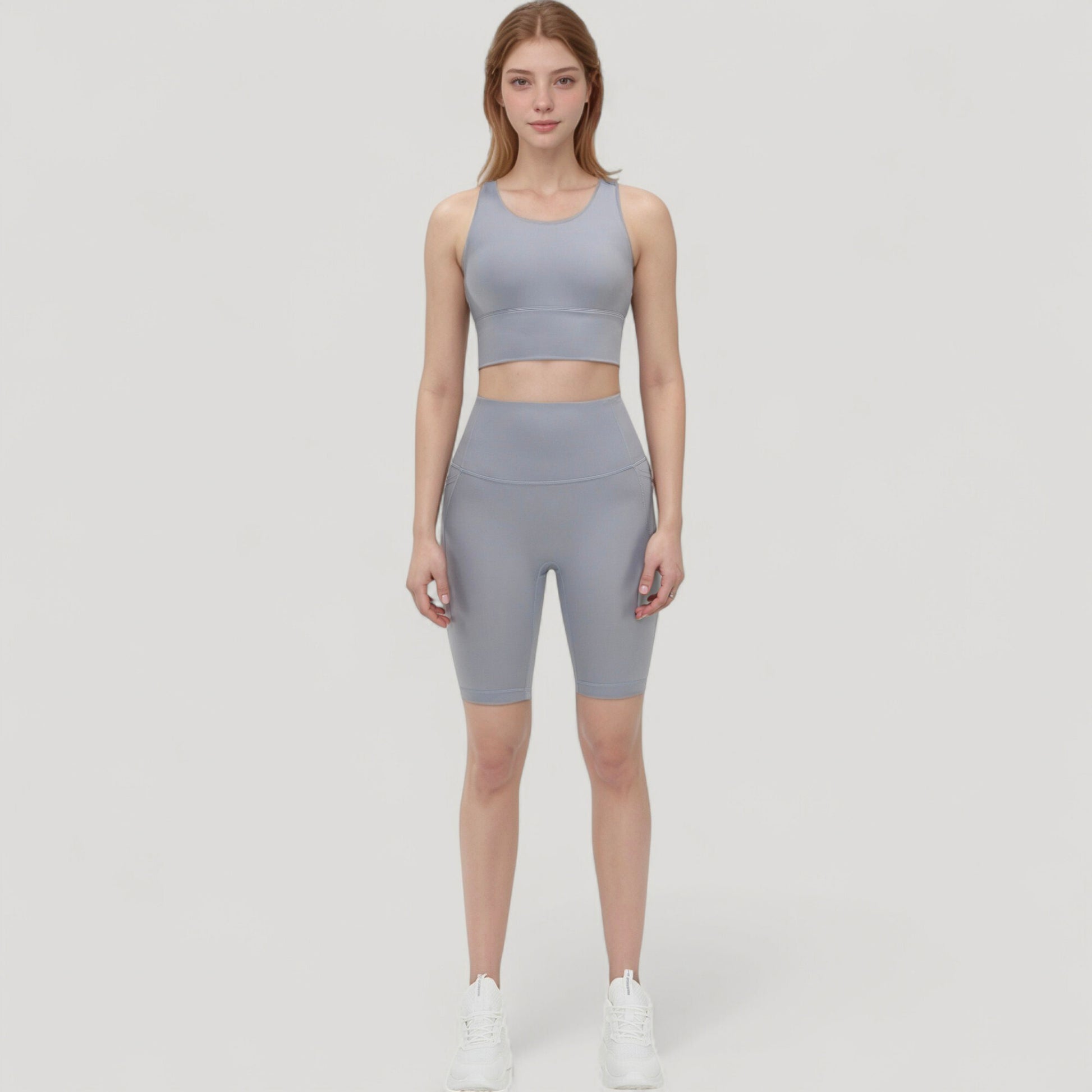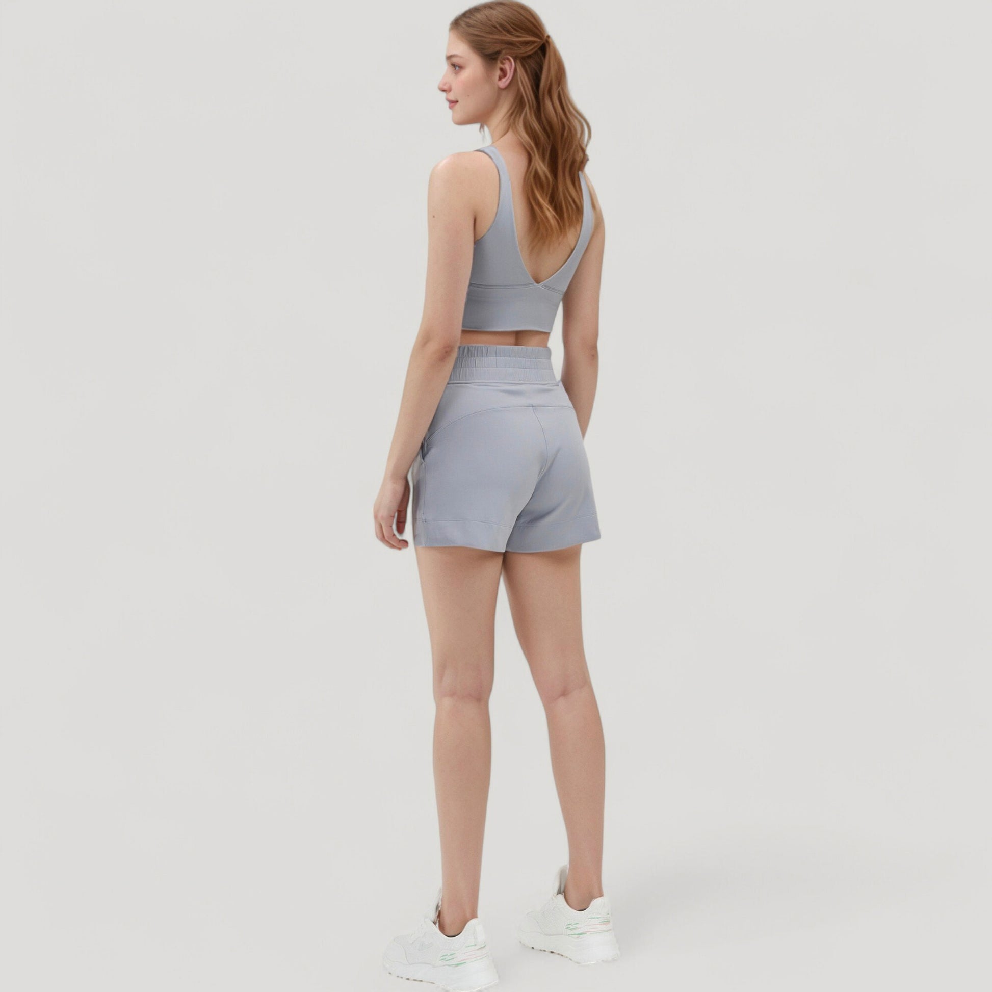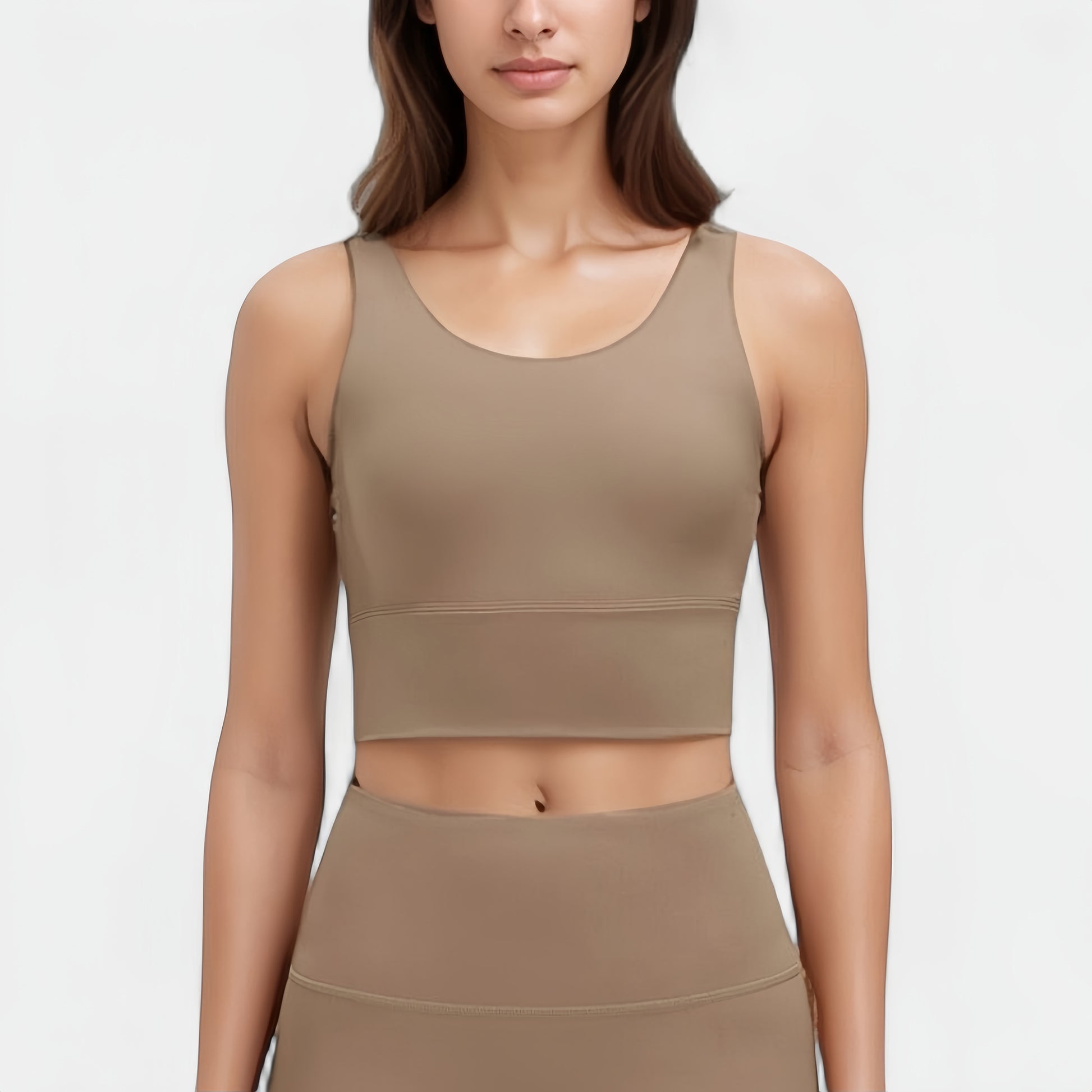 Anna-Kaci Active Women's Scoop Neck Longline Sports Bra with Wide Shoulder Straps and Deep V-Back Design