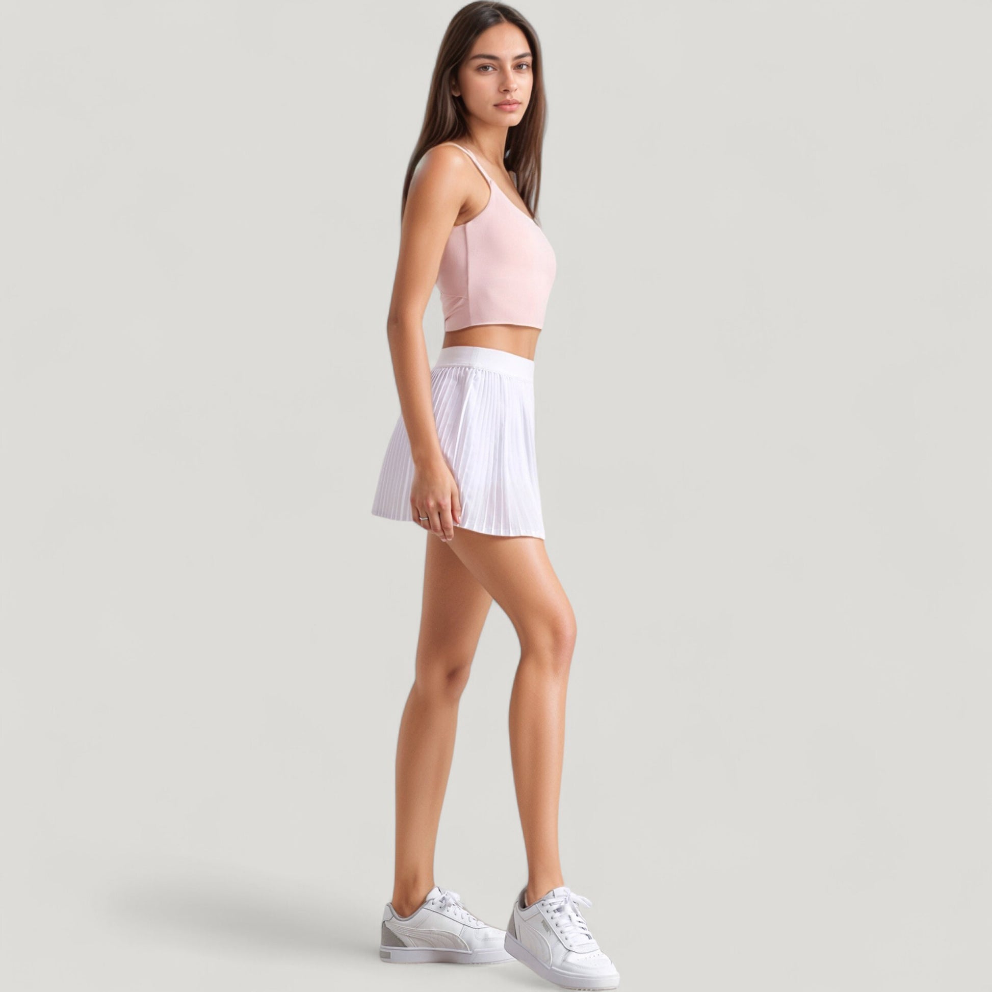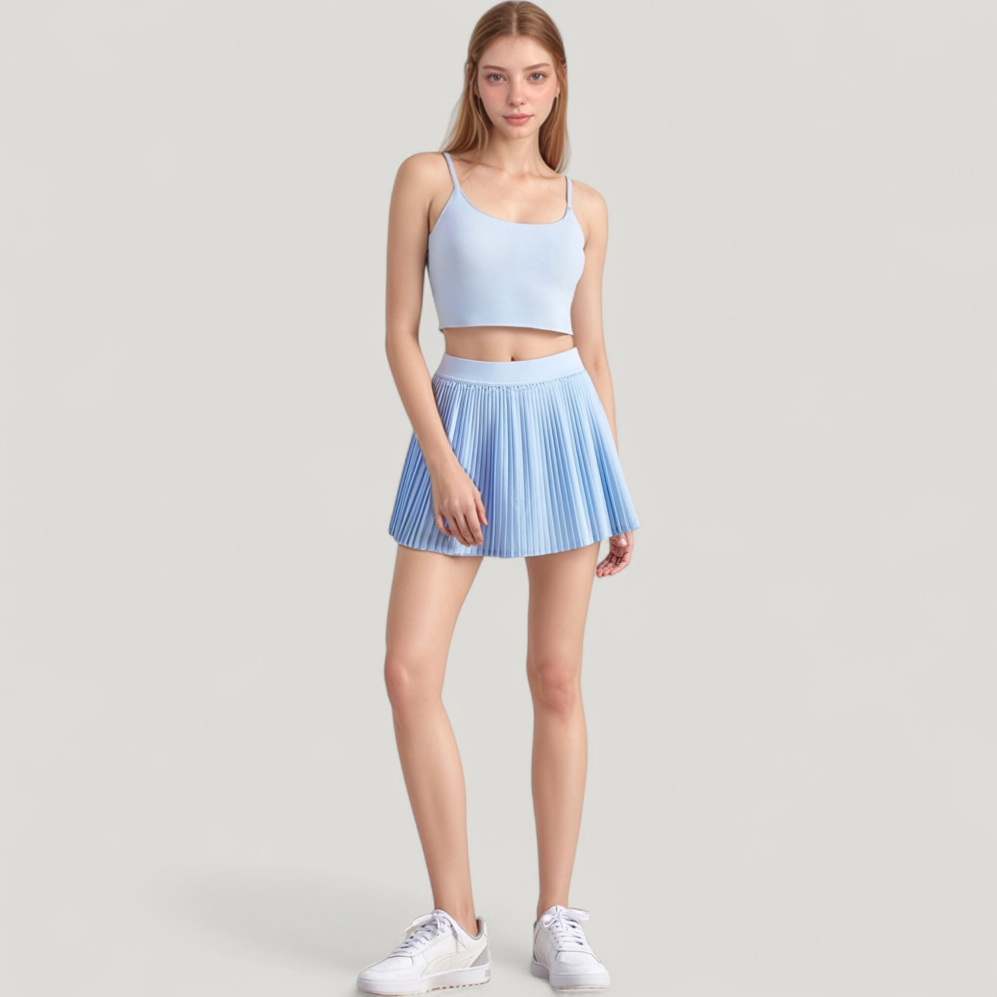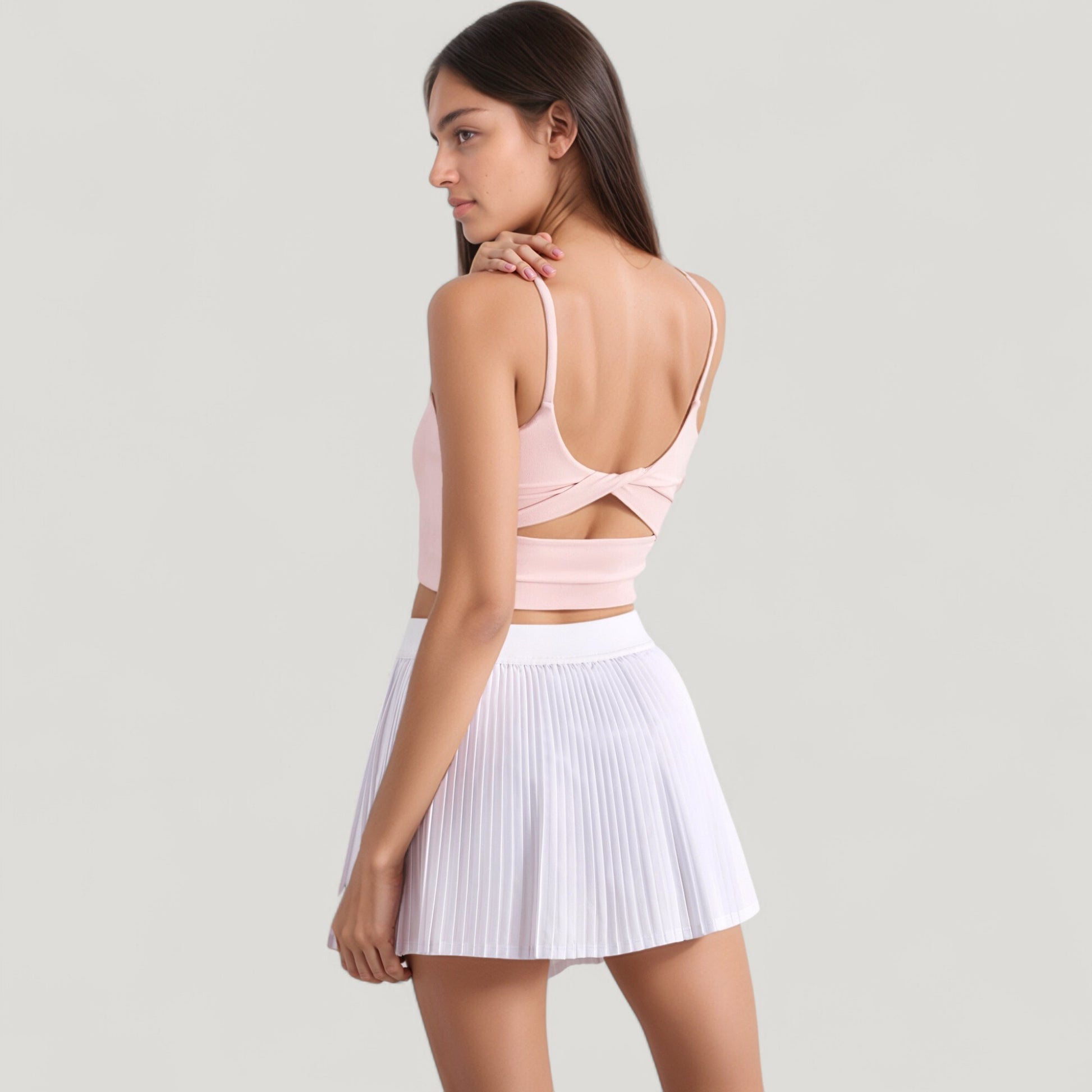 The Anna-Kaci Women's Scoop Neck Spaghetti Strap Sports Bra offers a sleek, minimal design for effortless style and comfort. Featuring thin adjustable straps and a scoop neckline, this sports bra provides light support and a flattering fit. The smooth, stretch fabric offers a second-skin feel, making it ideal for low-impact activities or casual wear.