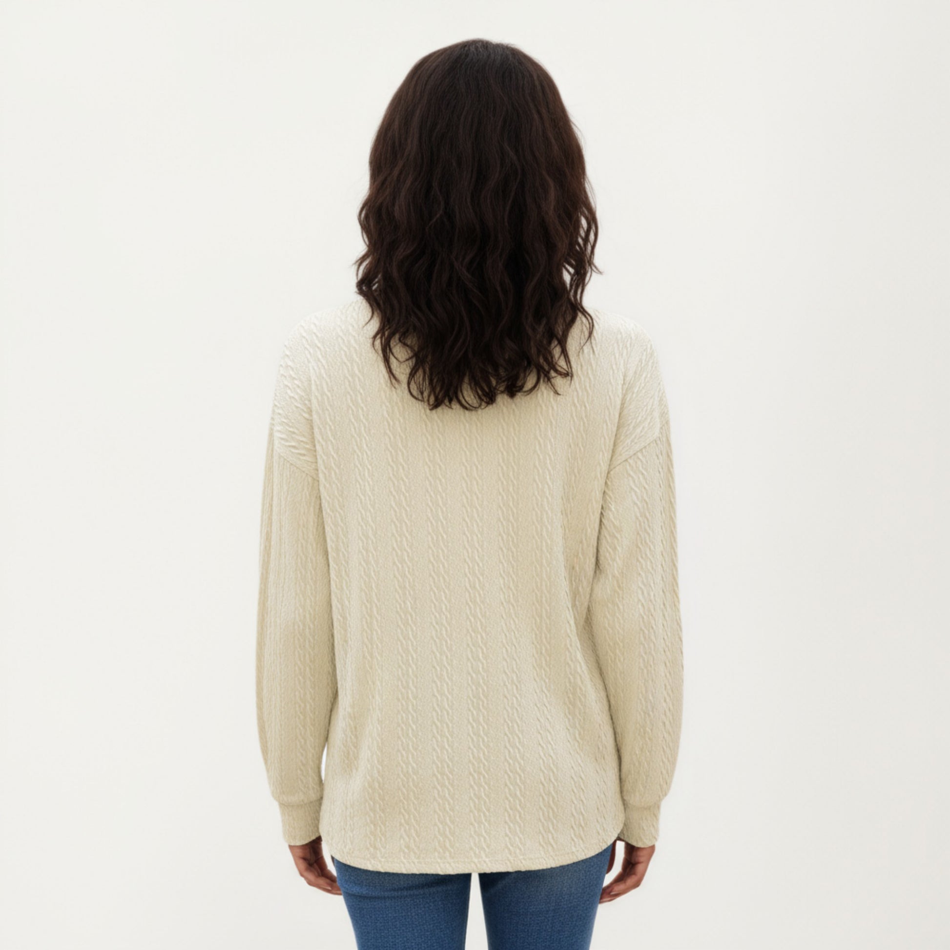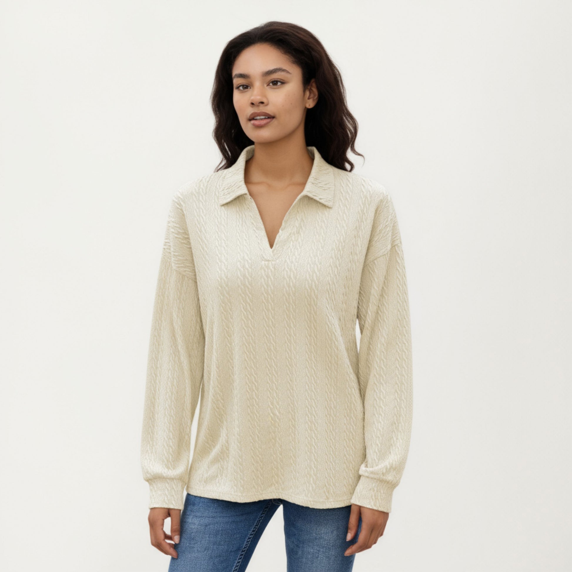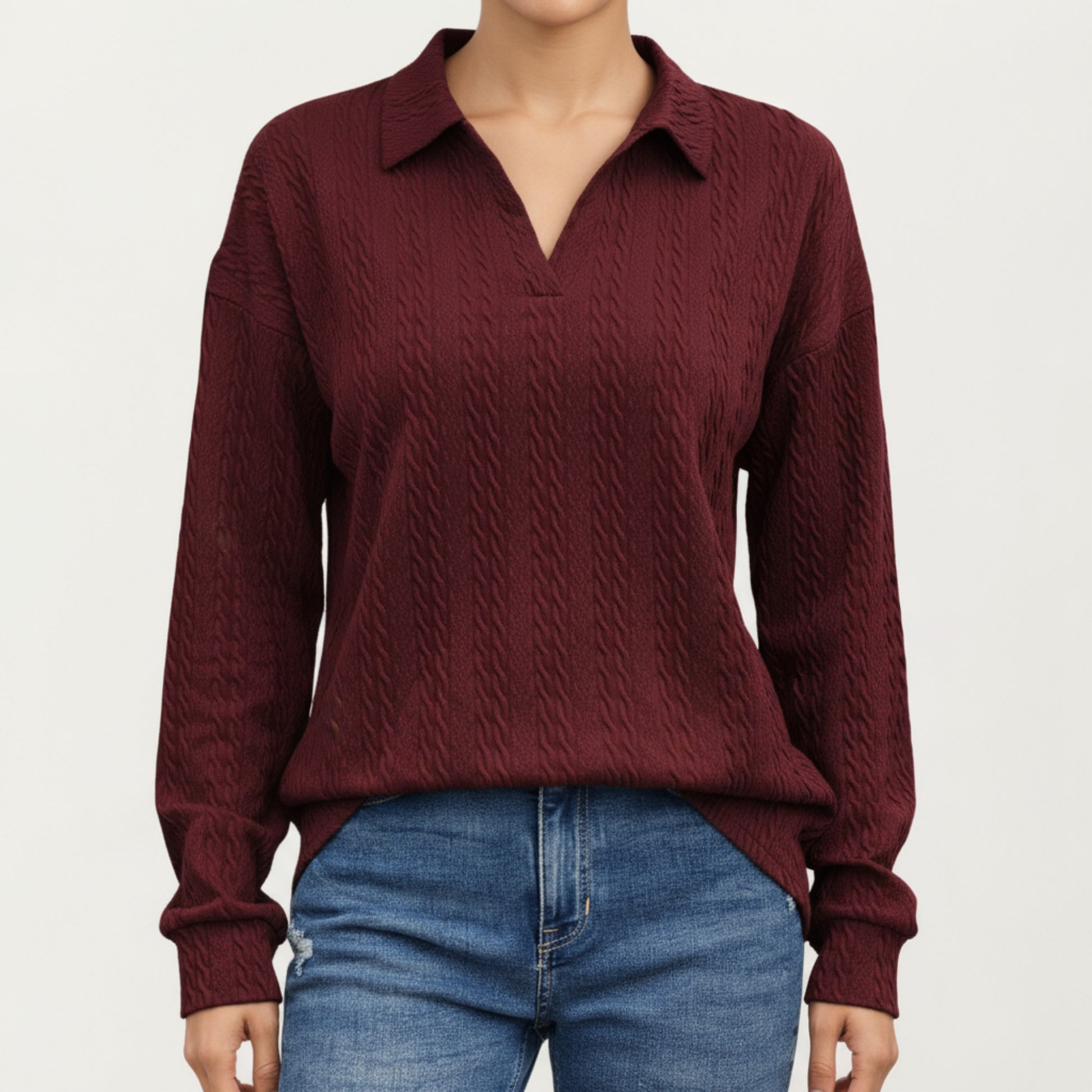 Anna-Kaci Women's Long Sleeve Collared Knit Top with Subtle Textured Pattern and Relaxed Fit