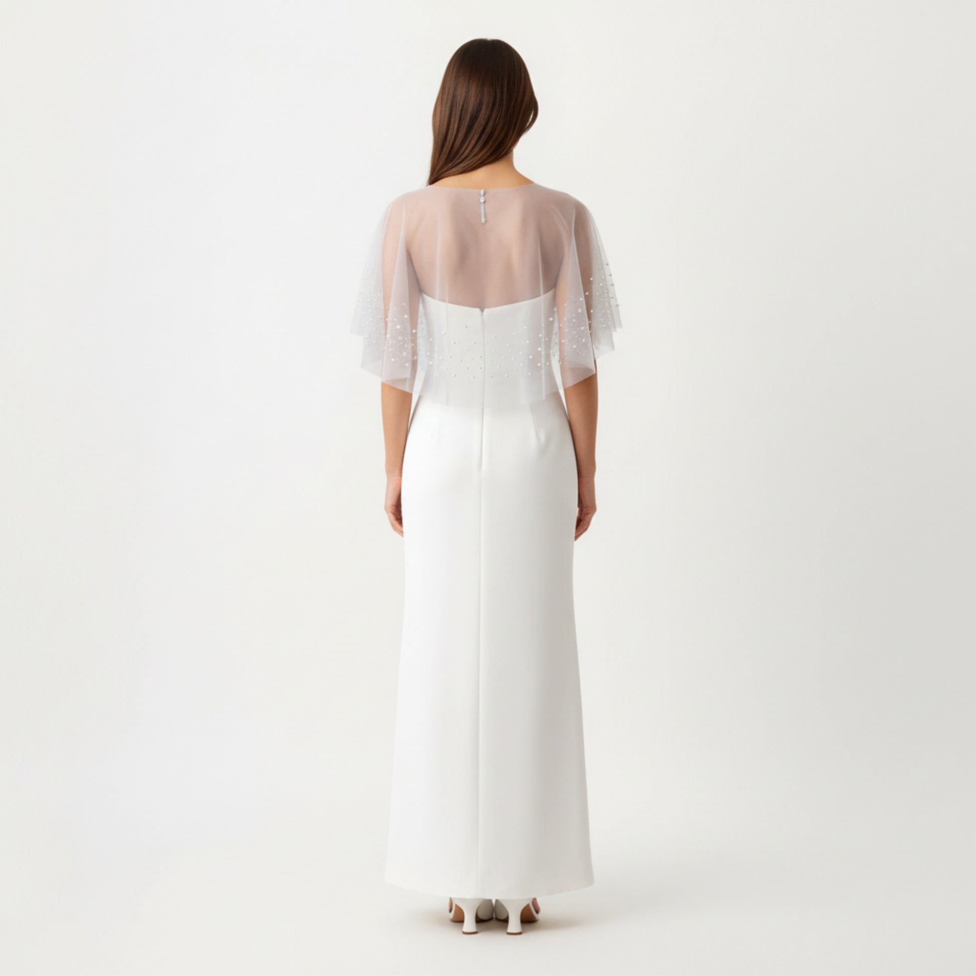 Anna-Kaci Women' s Sheer Pearl Embellished Capelet Shawl with Soft Tulle Fabric and Delicate Scattered Bead Accents