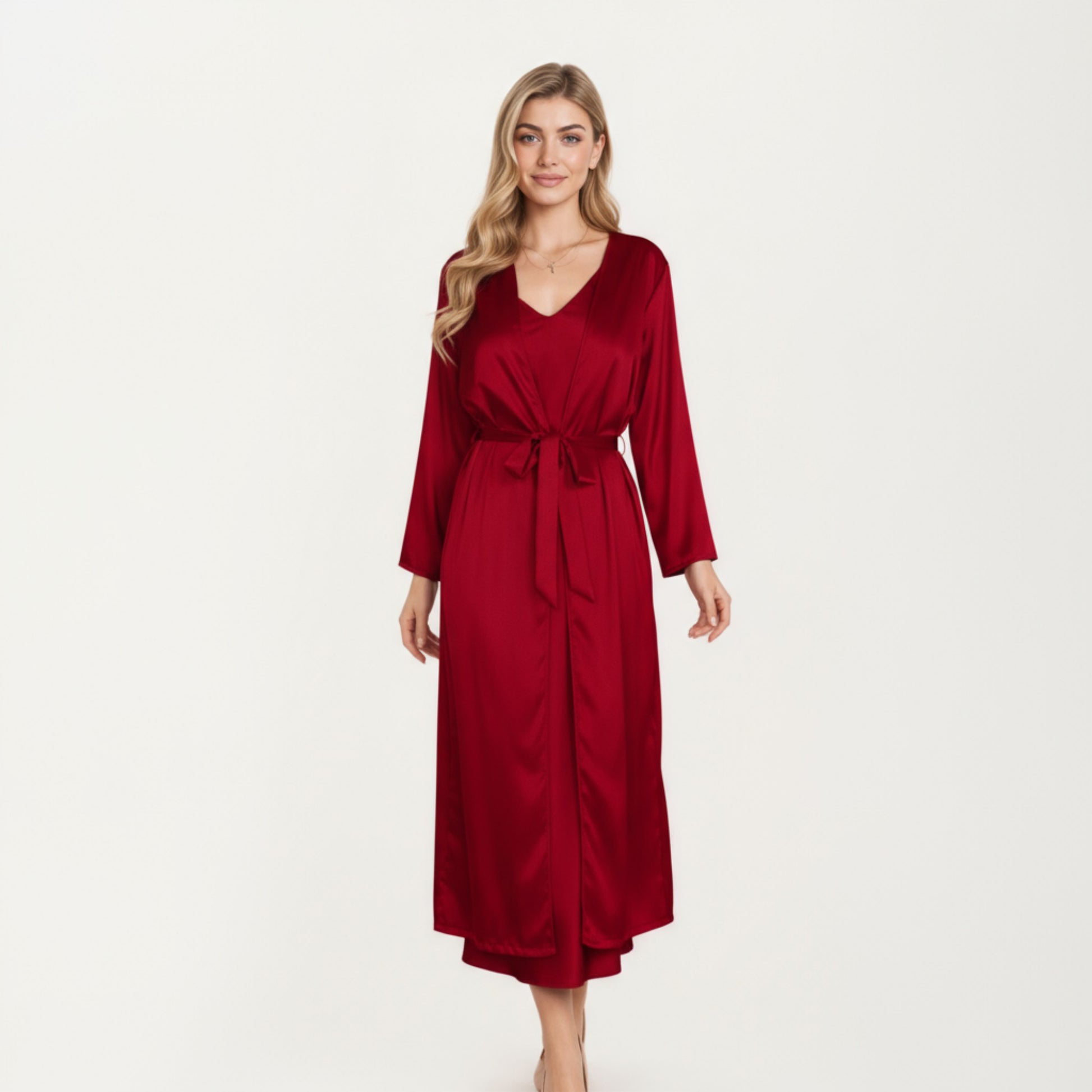 Anna-Kaci Women's Long Satin Wrap Robe with Tie Waist and Relaxed Draped Sleeves
