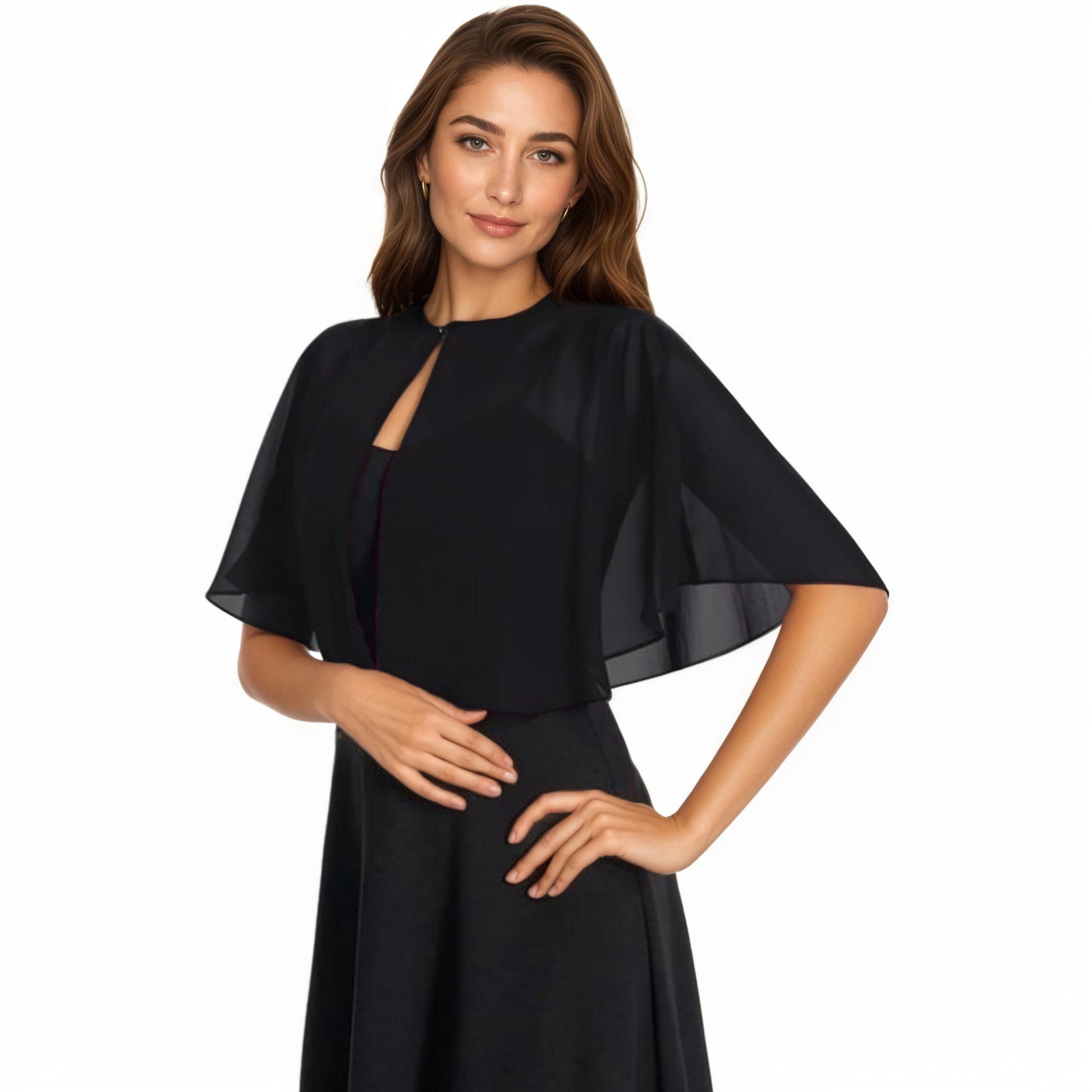 Anna-Kaci Women' s Sheer Flutter Sleeve Capelet Topper with Flowing Layered Silhouette and Elegant Front Closure