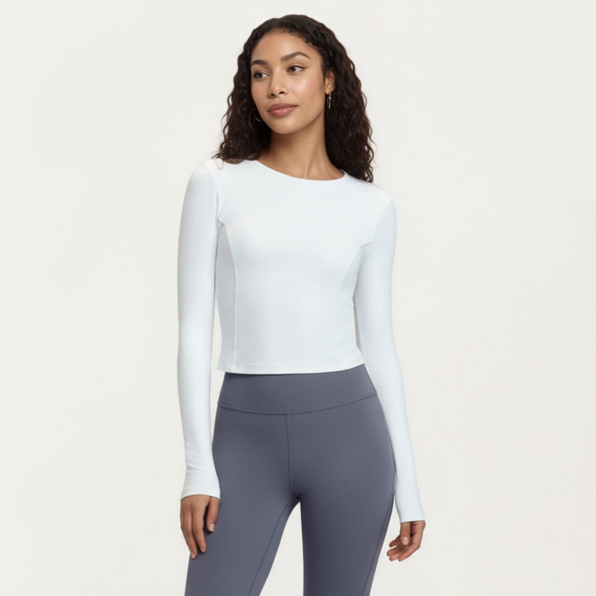 This Anna-Kaci Women¡¯s long sleeve fitted active top is crafted from smooth stretch fabric that provides lightweight support and flexible movement. Subtle contoured seaming enhances the natural shape while maintaining a clean, minimal look. The slim silhouette delivers a sleek performance feel without restricting comfort. Breathable, soft, and easy to pair with leggings or joggers, this top is an ideal everyday activewear essential.