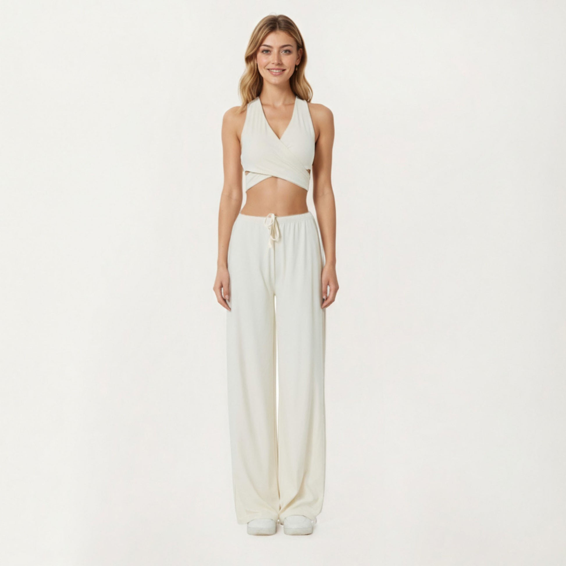 These Anna-Kaci Women¡¯s lounge pants feature a soft stretch fabric that drapes effortlessly, offering a relaxed and comfortable feel throughout the day. The adjustable drawstring waistband provides a customizable fit, while the wide leg silhouette adds movement and modern ease. Lightweight and smooth, these pants deliver gentle flexibility and breathable comfort. Their clean, minimal design makes them an easy staple for casual everyday wear.