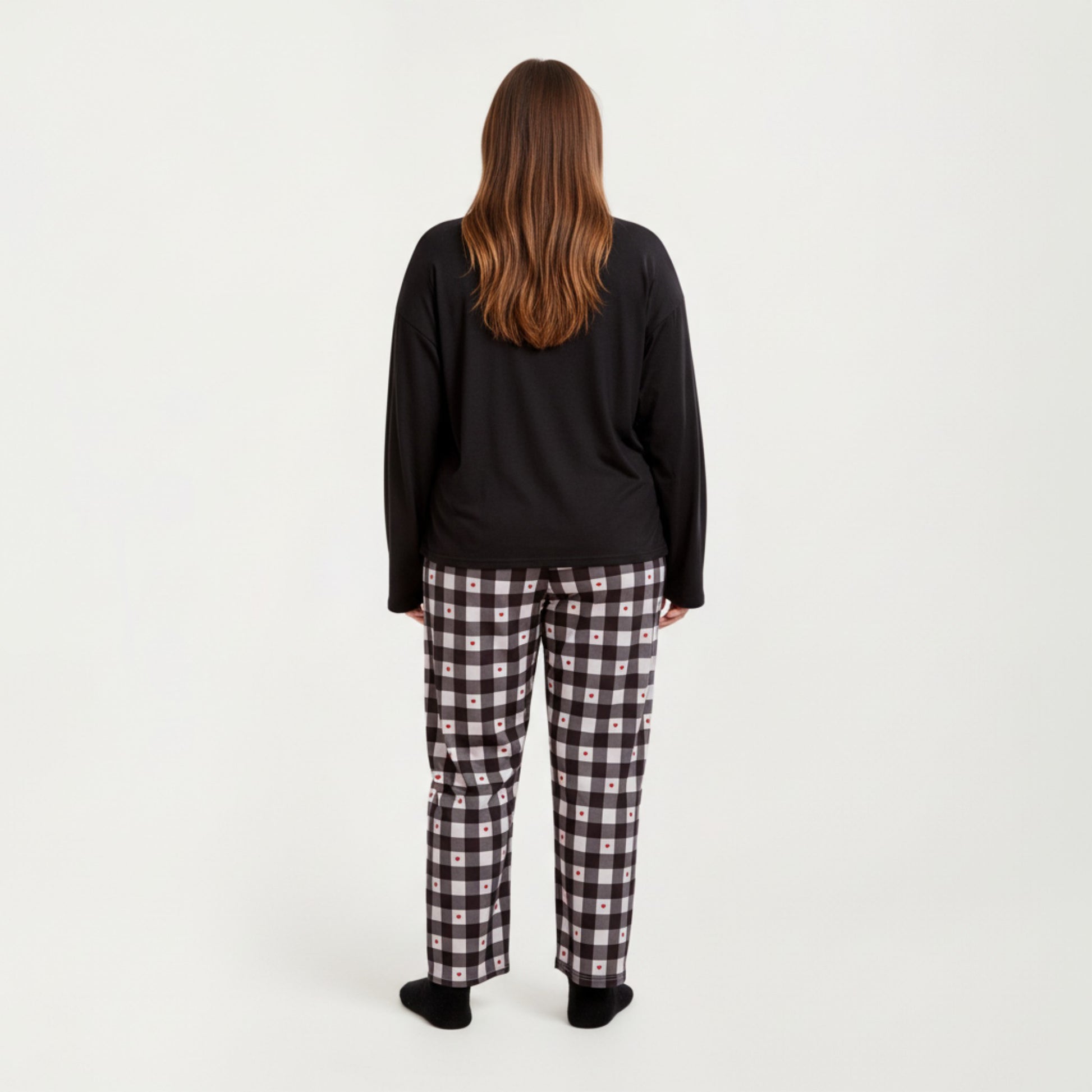 This Anna-Kaci Women¡¯s 2-Piece Set includes a soft long sleeve Henley top paired with plaid pajama pants for a cozy, coordinated look. The top features a relaxed drape with button-front accents and a matching plaid pocket, while the pants offer a comfortable straight-leg silhouette. With flexible stretch fabric and breathable softness, this set delivers an easy, relaxed fit designed for nighttime comfort and gentle movement.