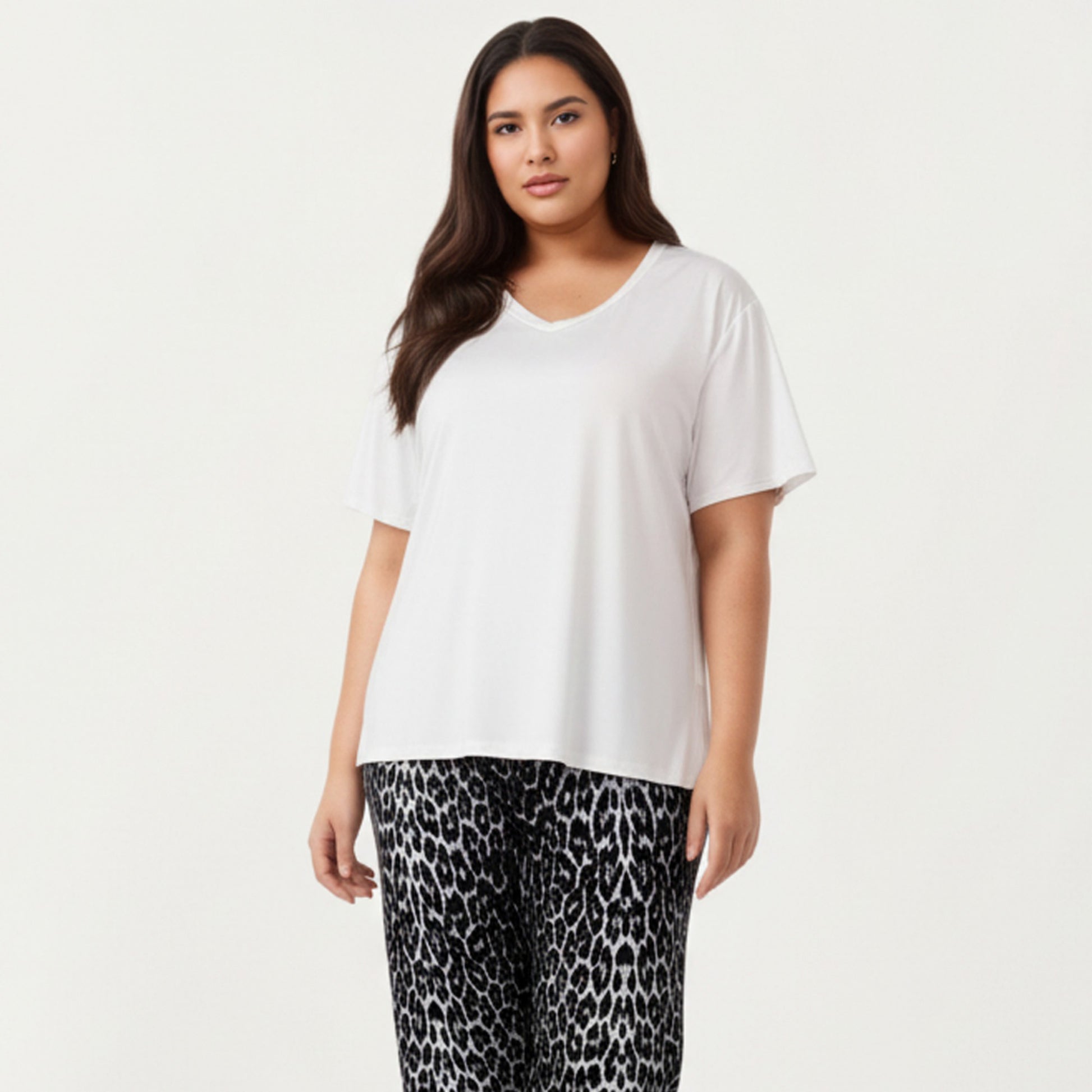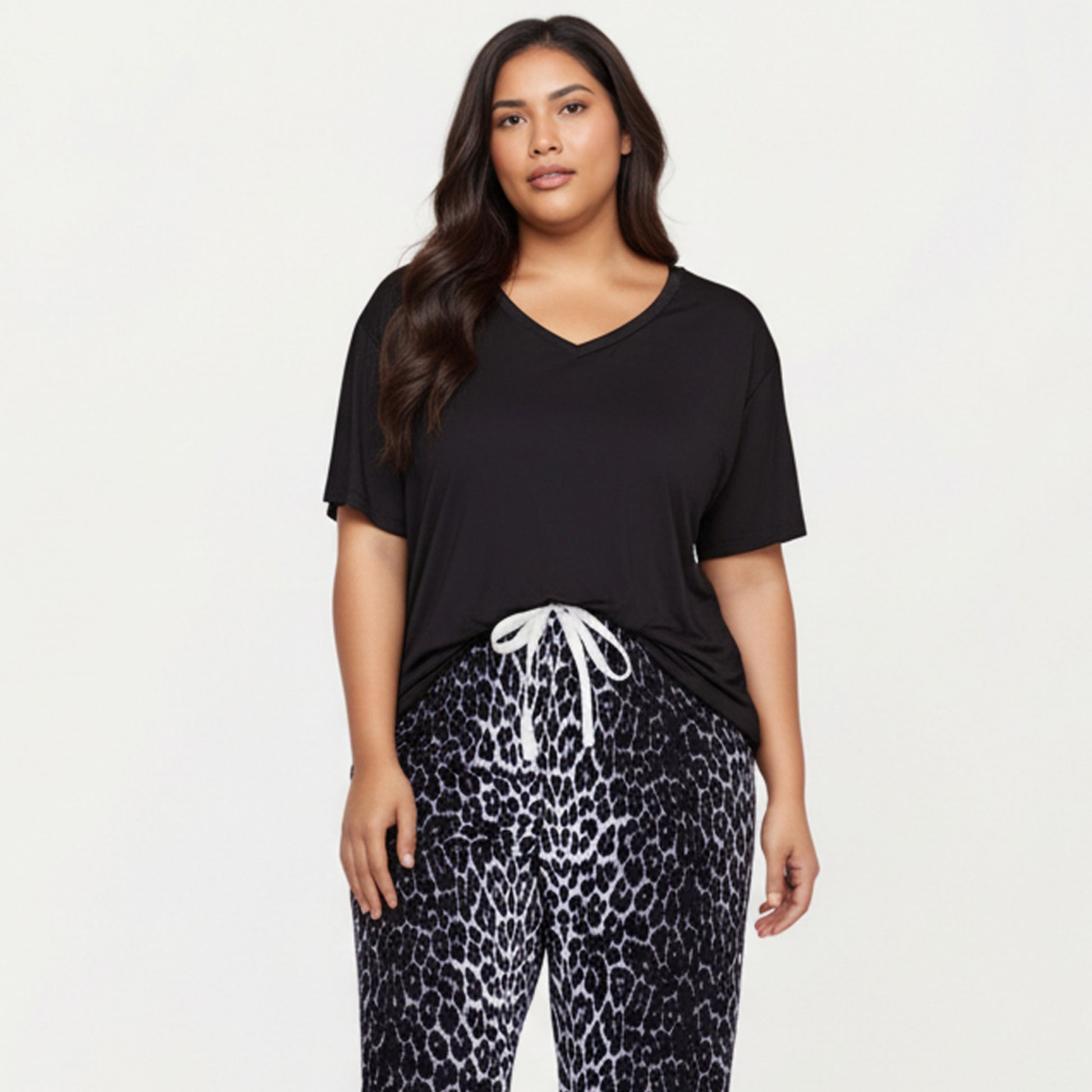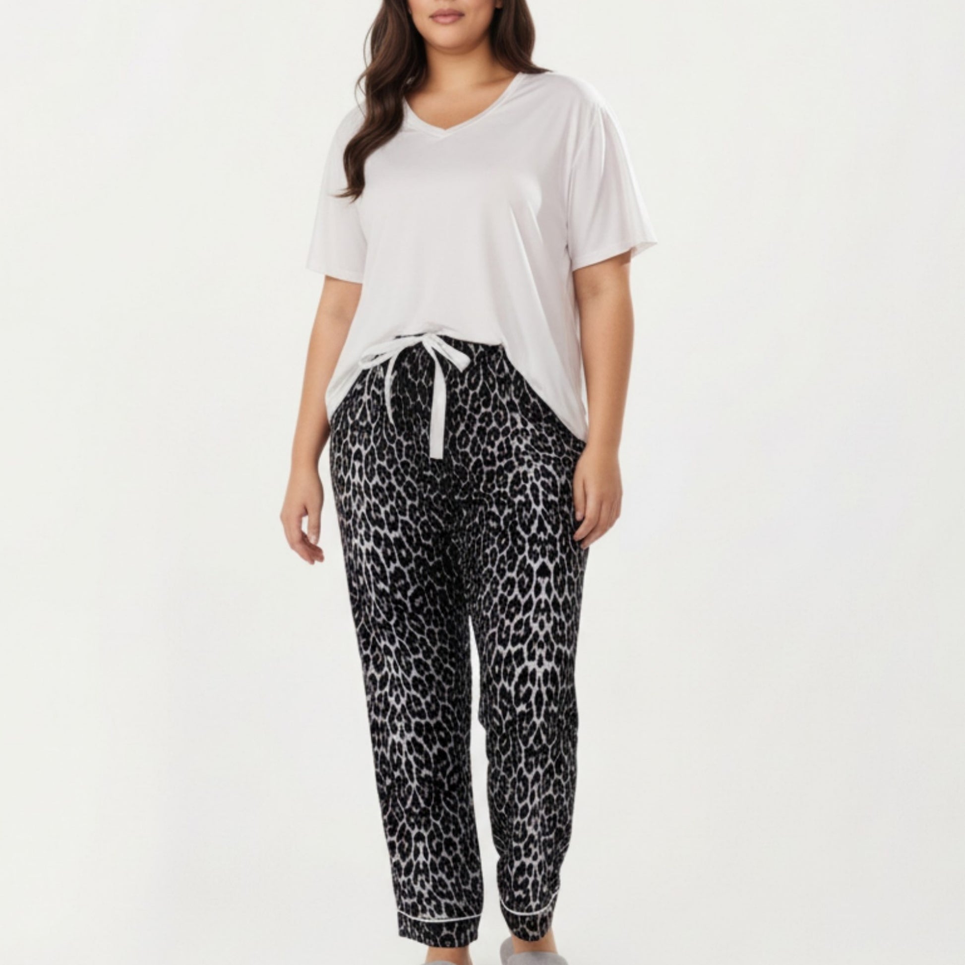 Anna-Kaci Lounge Women' s 2-Piece Set V-Neck Short Sleeve Top and Leopard Print Pajama Pants with Soft Stretch Fabric