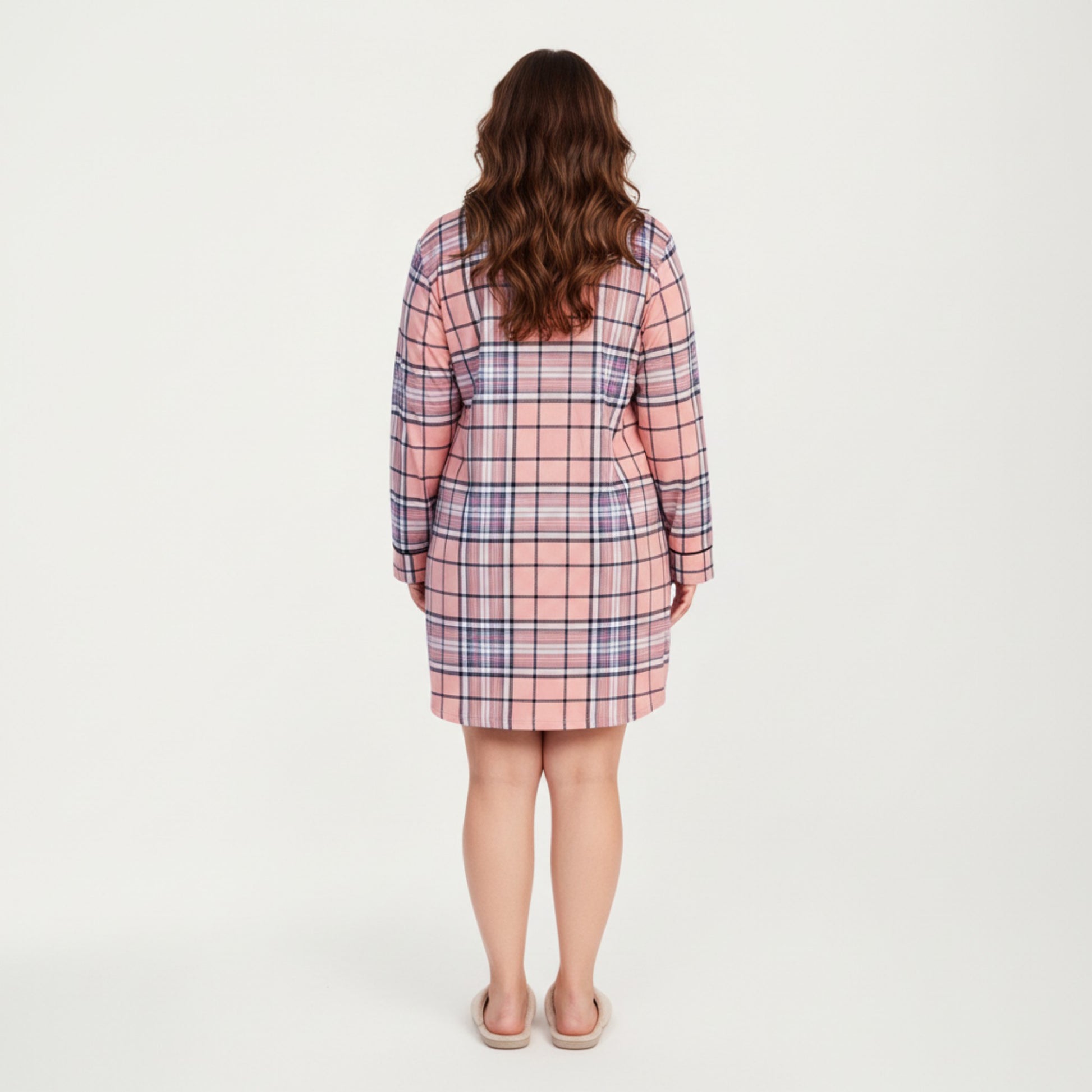 This Anna-Kaci Women¡¯s plaid sleep shirt features a soft brushed fabric that feels gentle and cozy against the skin. The long sleeves and classic button-front design give it a polished, lounge-inspired look, while the above-knee length offers comfortable movement and breathable coverage. A single chest pocket adds a subtle detail, and the relaxed fit enhances overall comfort for a smooth, easy sleepwear style.