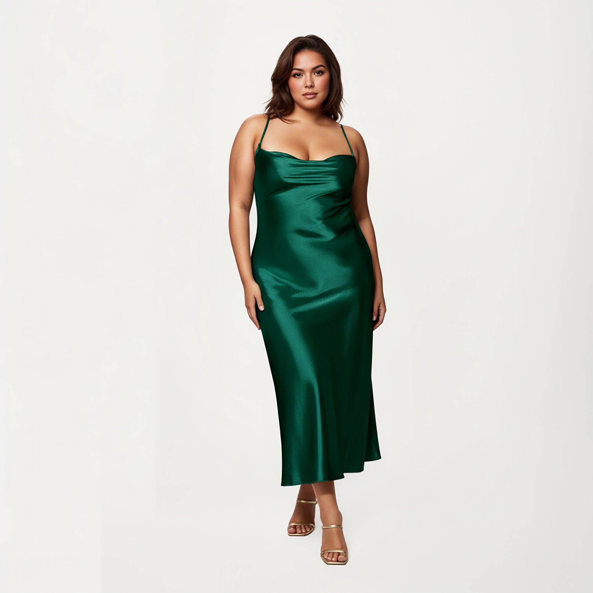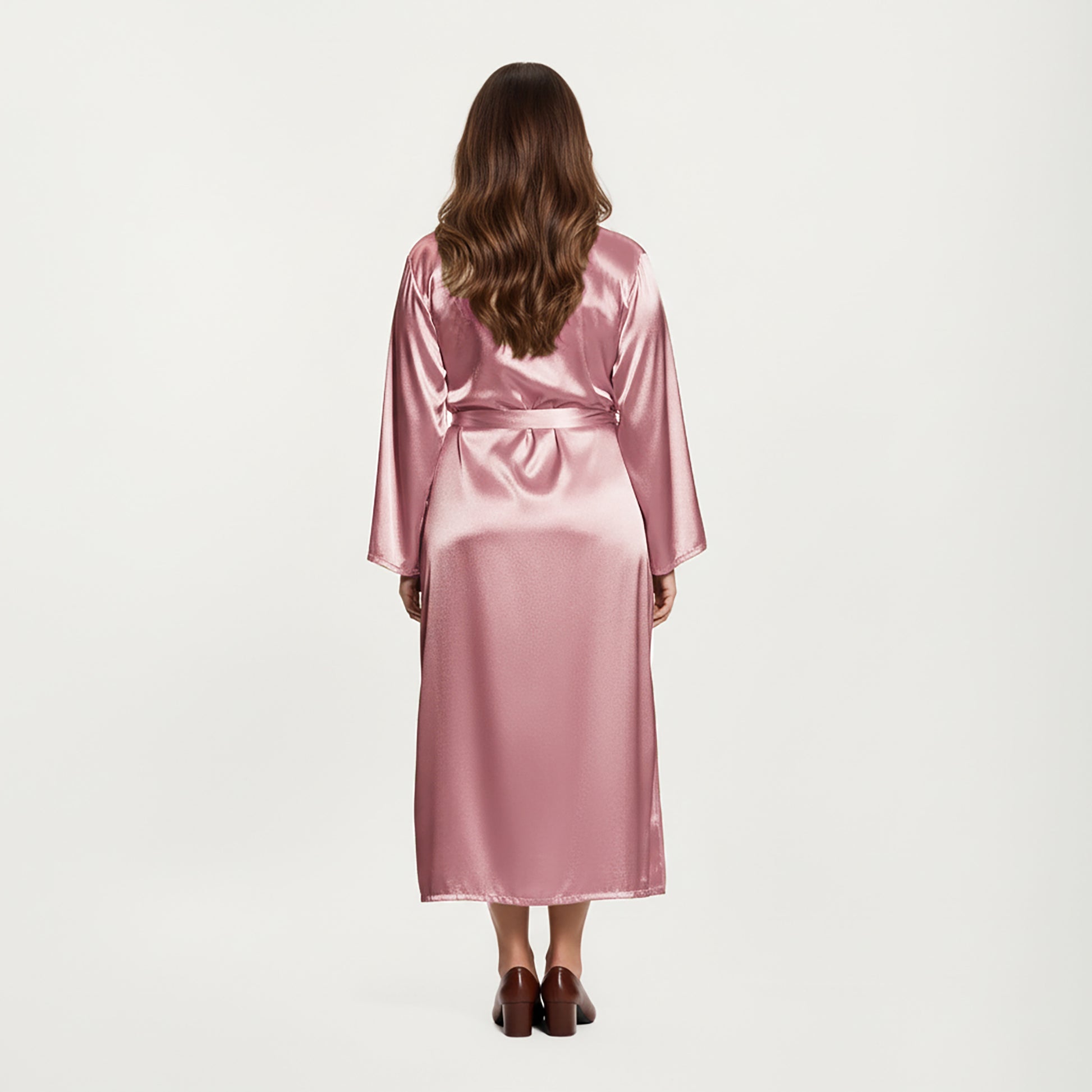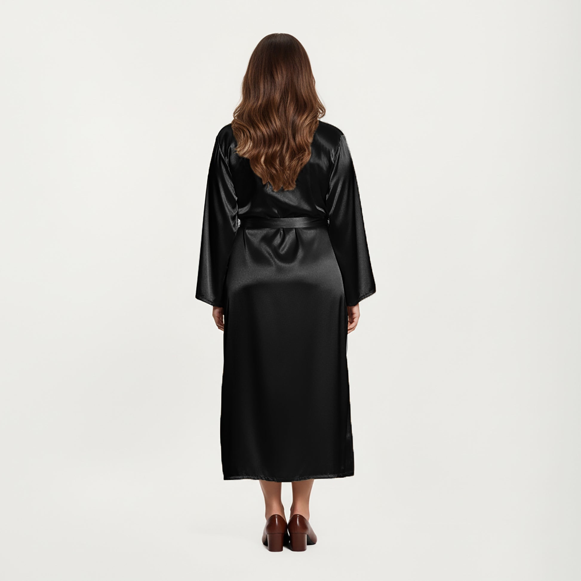 Anna-Kaci Lounge Women's PLus Size Satin Robe and Slip Set with Smooth Draping Fabric and Elegant Silhouette
