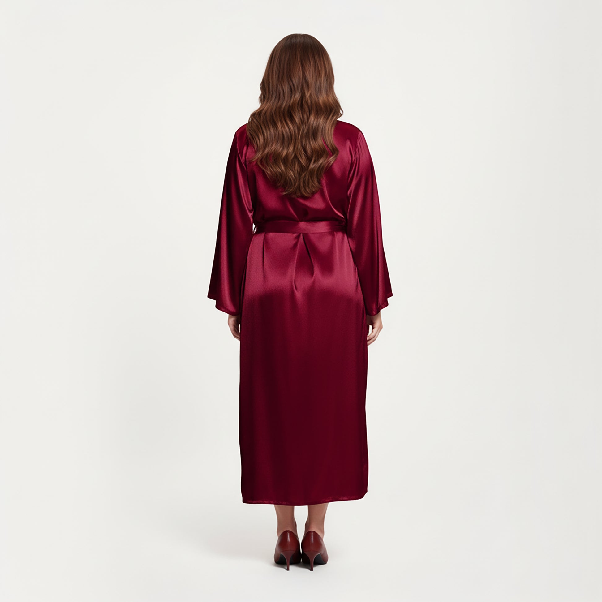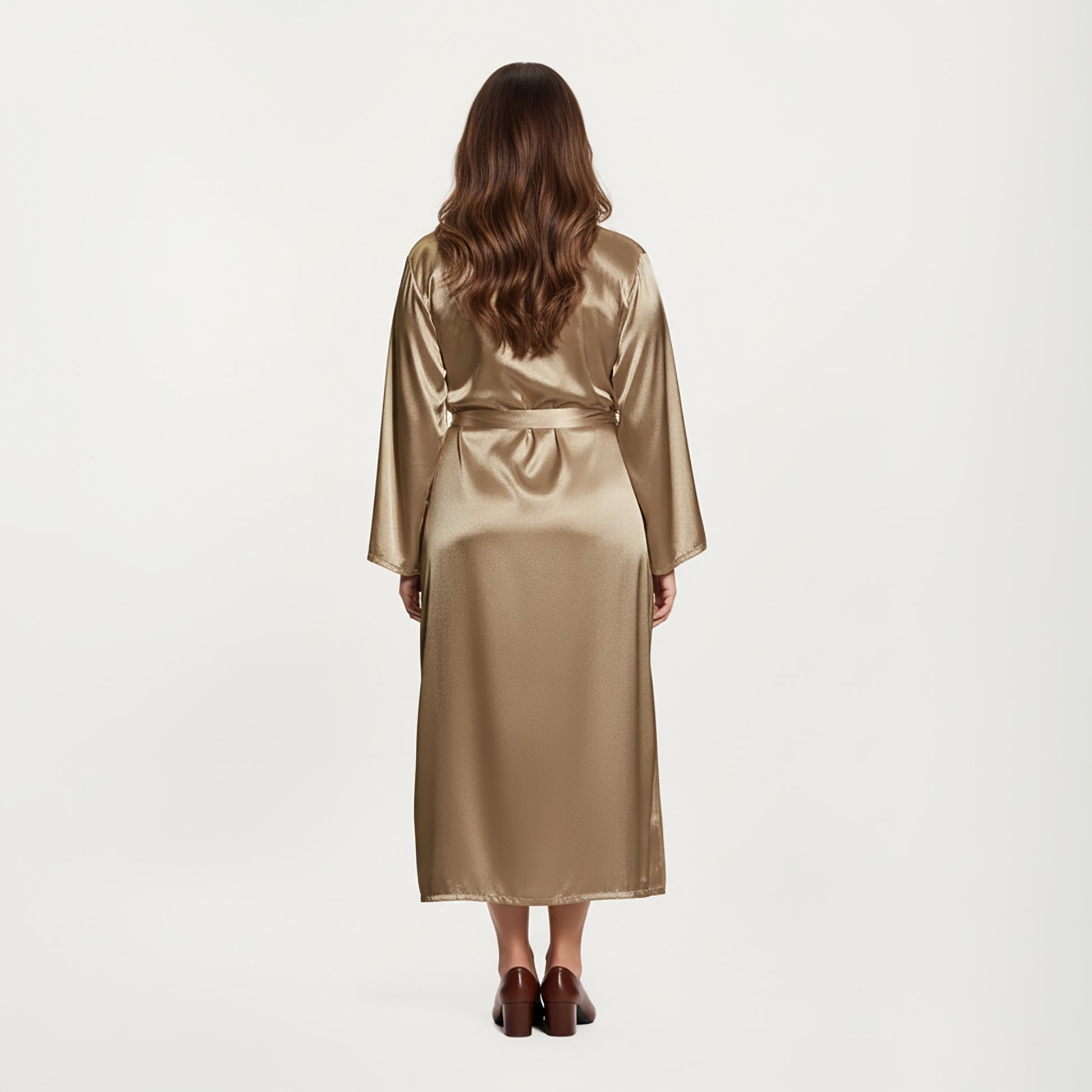 This Anna-Kaci Women's satin robe and slip set features a smooth, glossy drape that enhances its elegant, figure-flattering silhouette. The slip offers a soft, comfortable fit with a gently contoured neckline, while the matching robe provides lightweight coverage with a flowing, graceful shape. Designed for effortless wear, this coordinated set blends comfort, sophistication, and a polished finish for elevated at-home style.