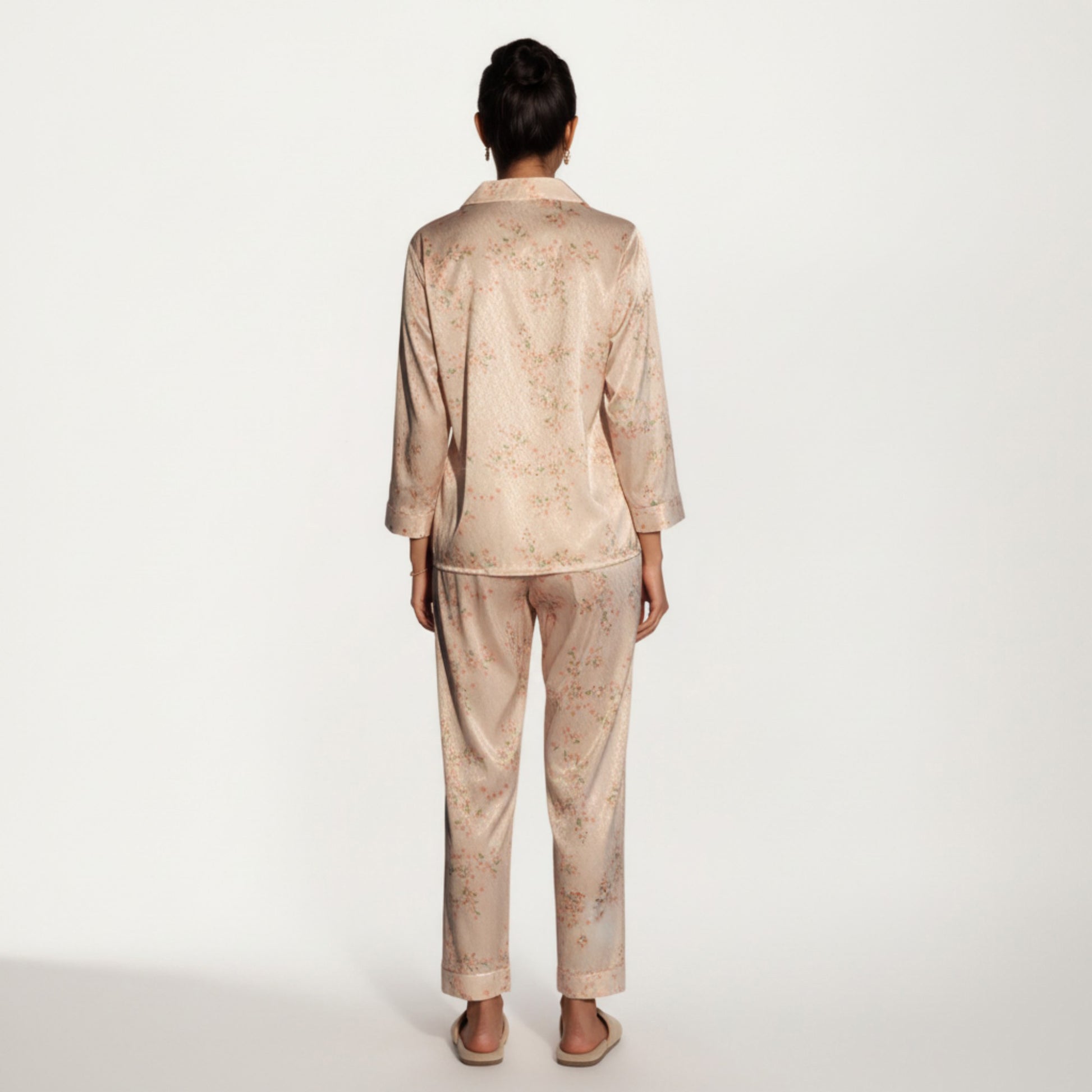 Anna-Kaci Lounge Women's 2-Piece Set Floral Satin Pajama Top and Relaxed Fit Pants with Smooth Finish and Soft Collar Detail
