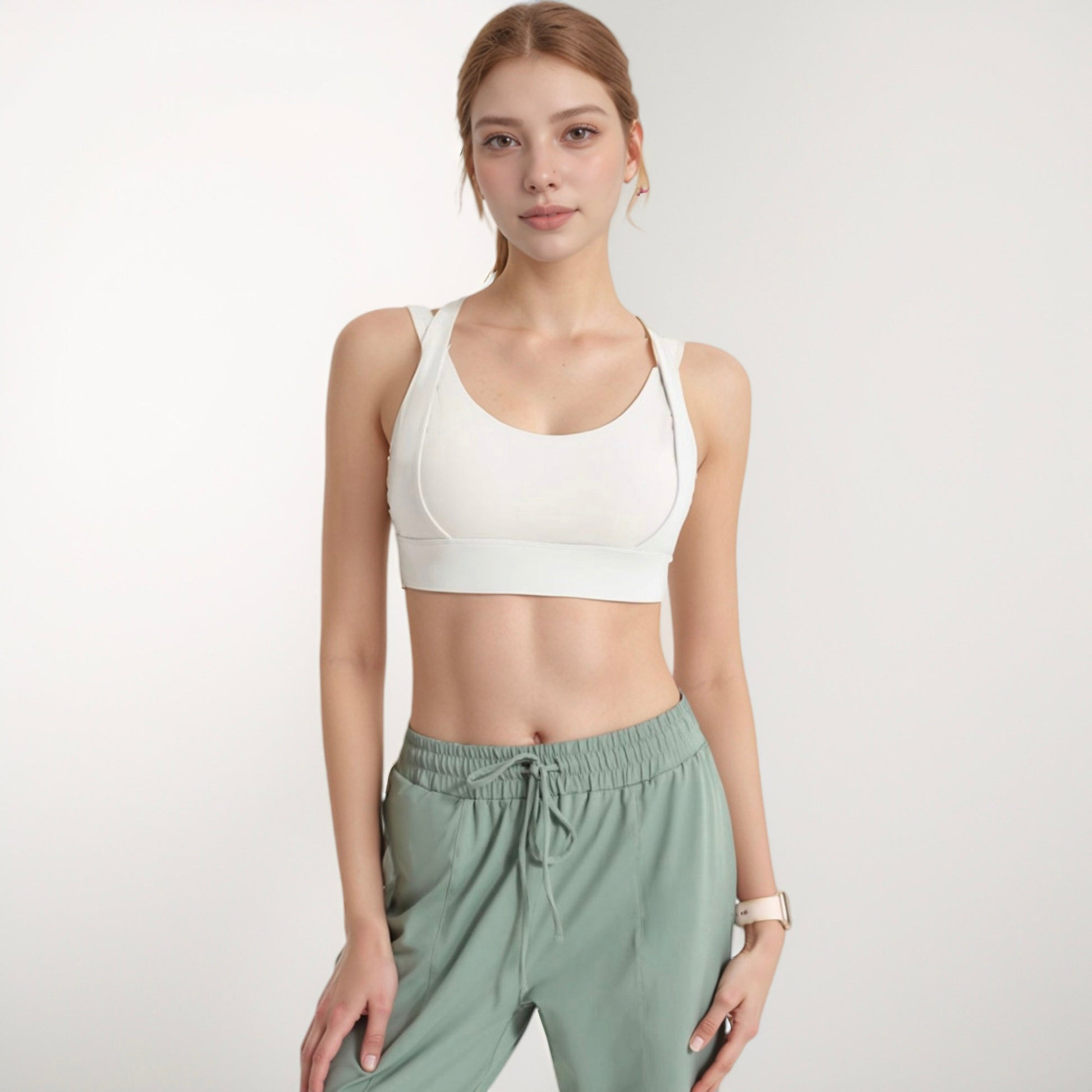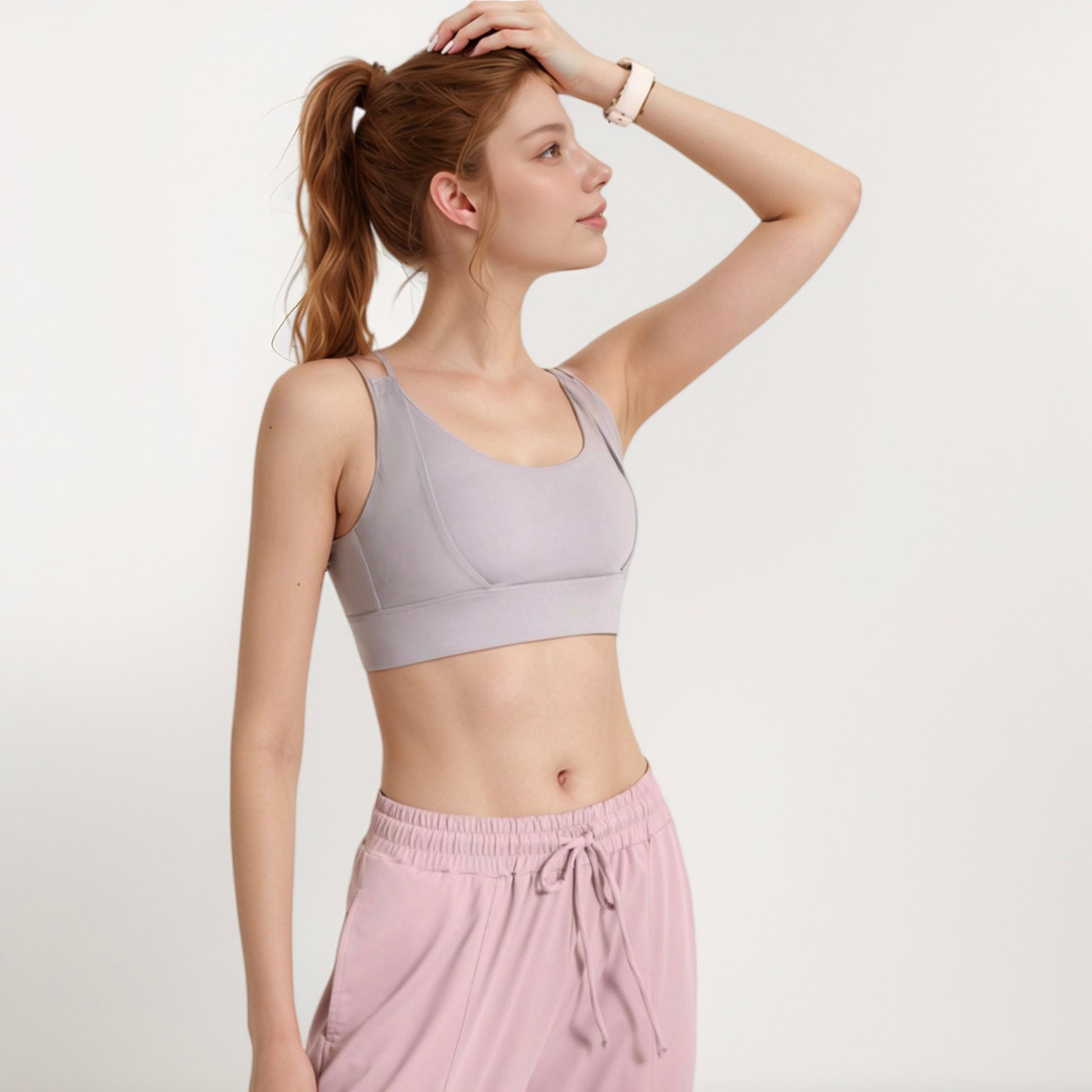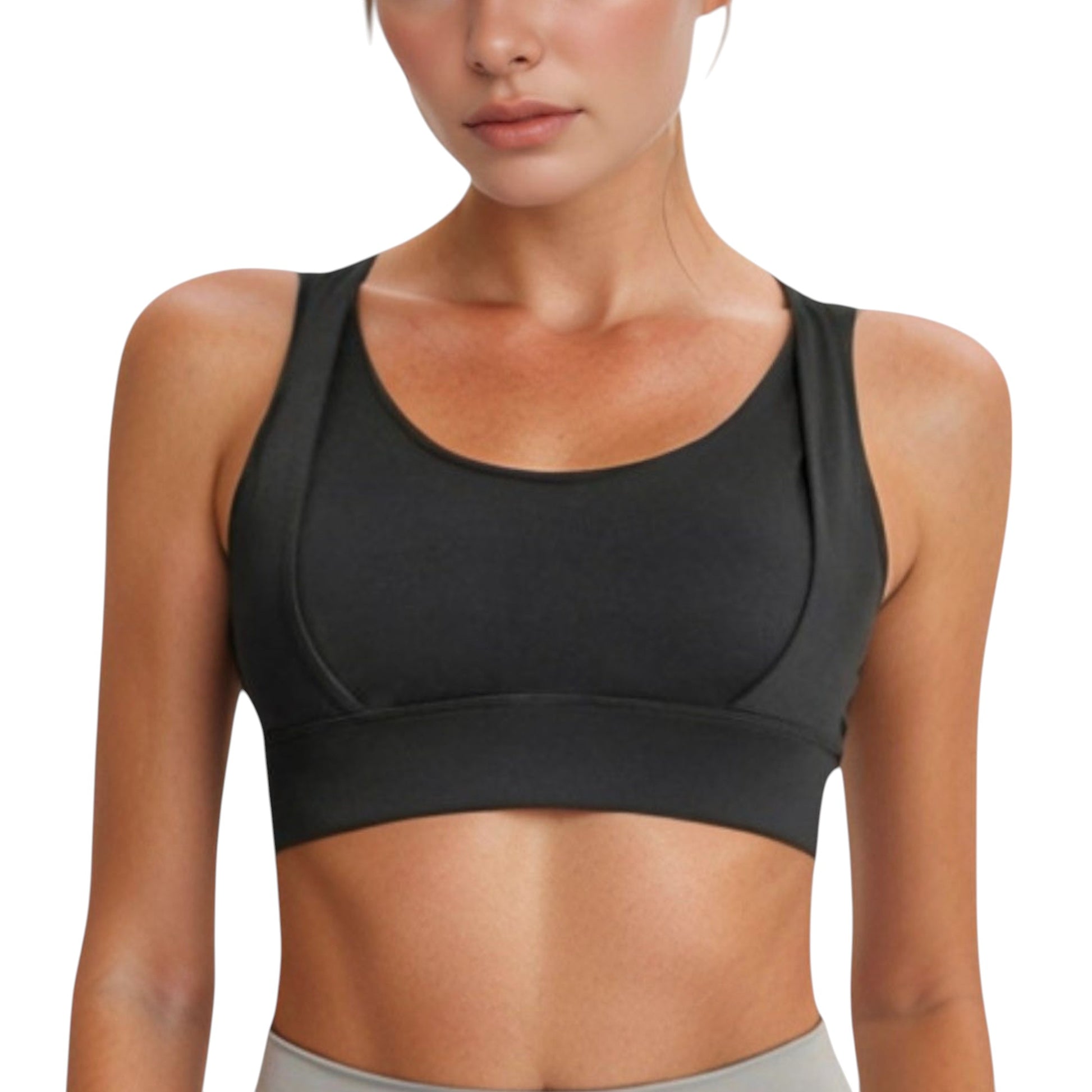 Anna-Kaci Active Women's Scoop Neck Active Sports Bra with Wide Adjustable Straps and Seam Detailing