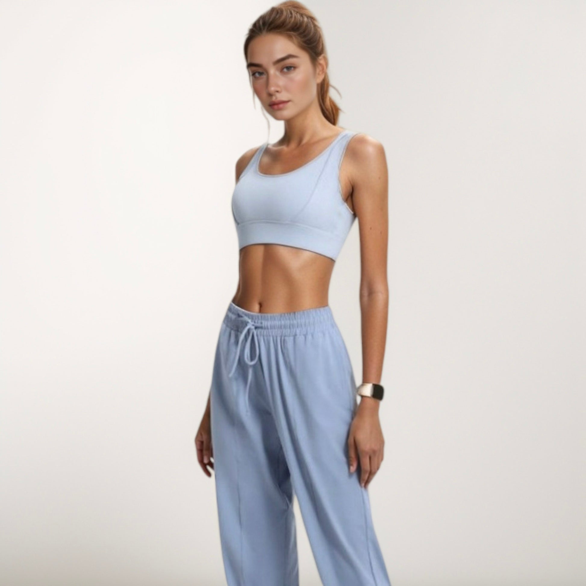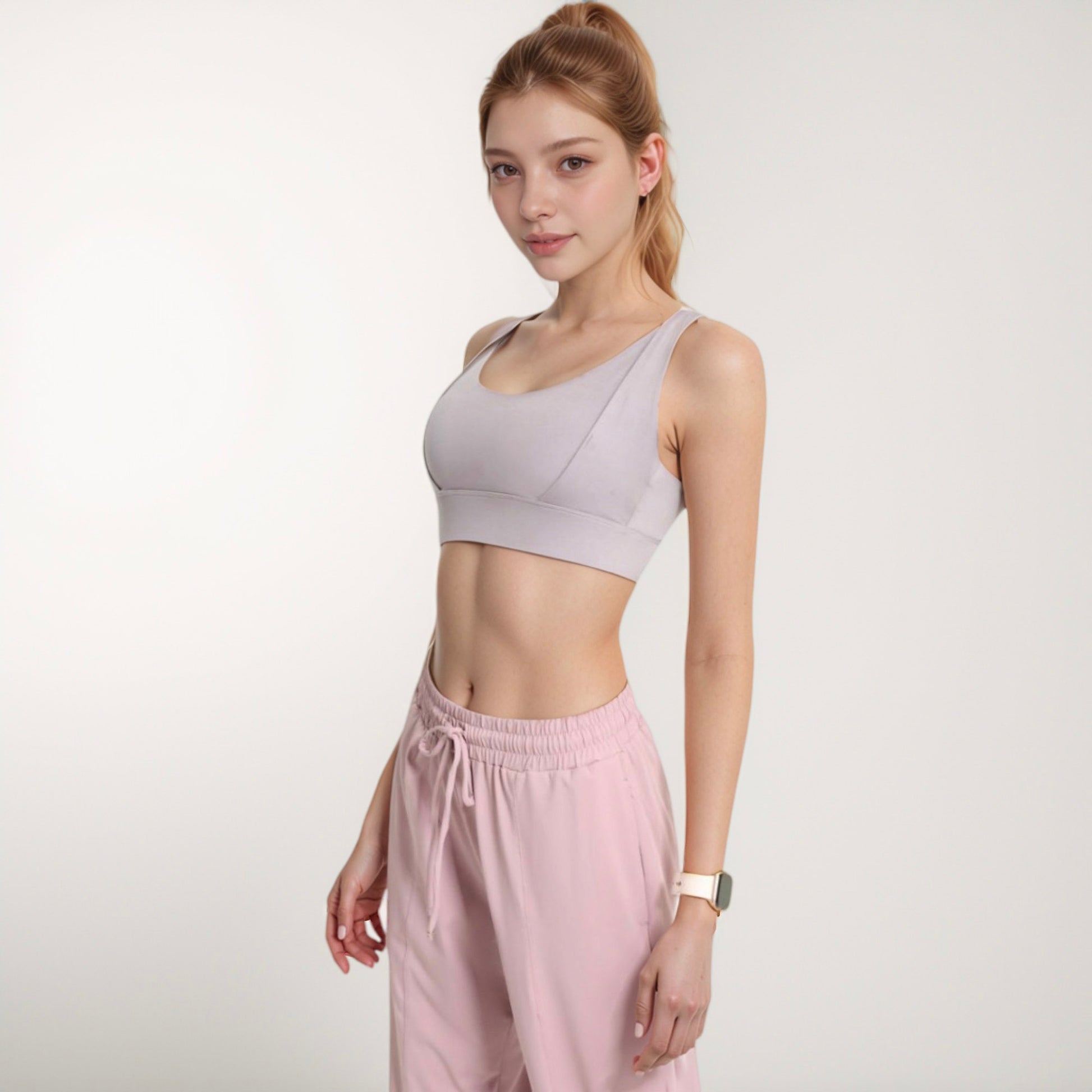 This women's active sports bra features a scoop neckline and supportive wide straps for a secure and comfortable fit. The smooth, breathable fabric offers a soft feel against the skin while maintaining shape during movement. Subtle seam detailing adds structure and a flattering contour, ideal for low to medium-impact activities. Designed with a wide underband, this bra ensures added stability and coverage during every workout.