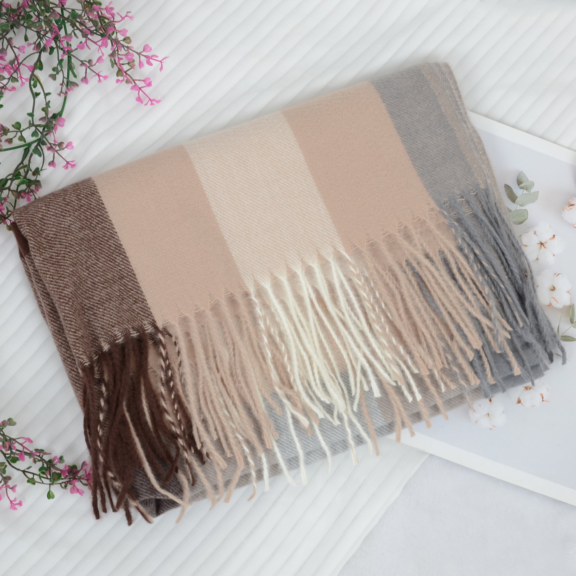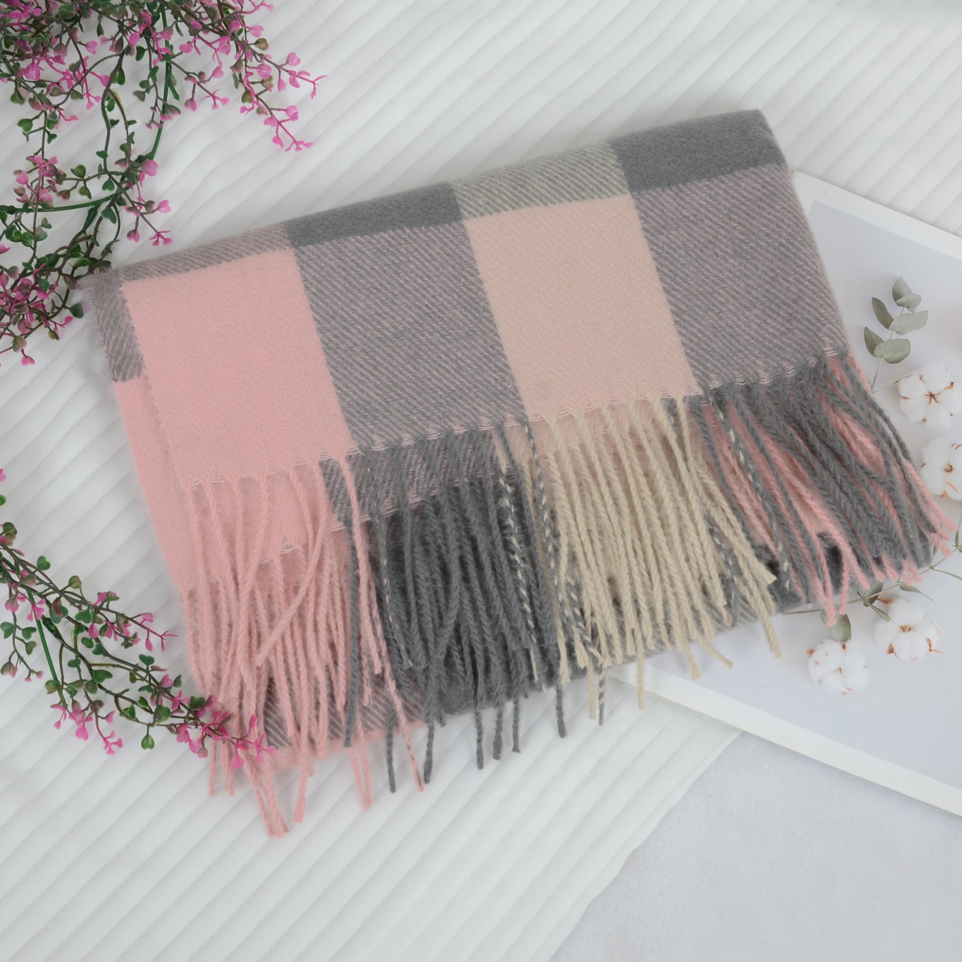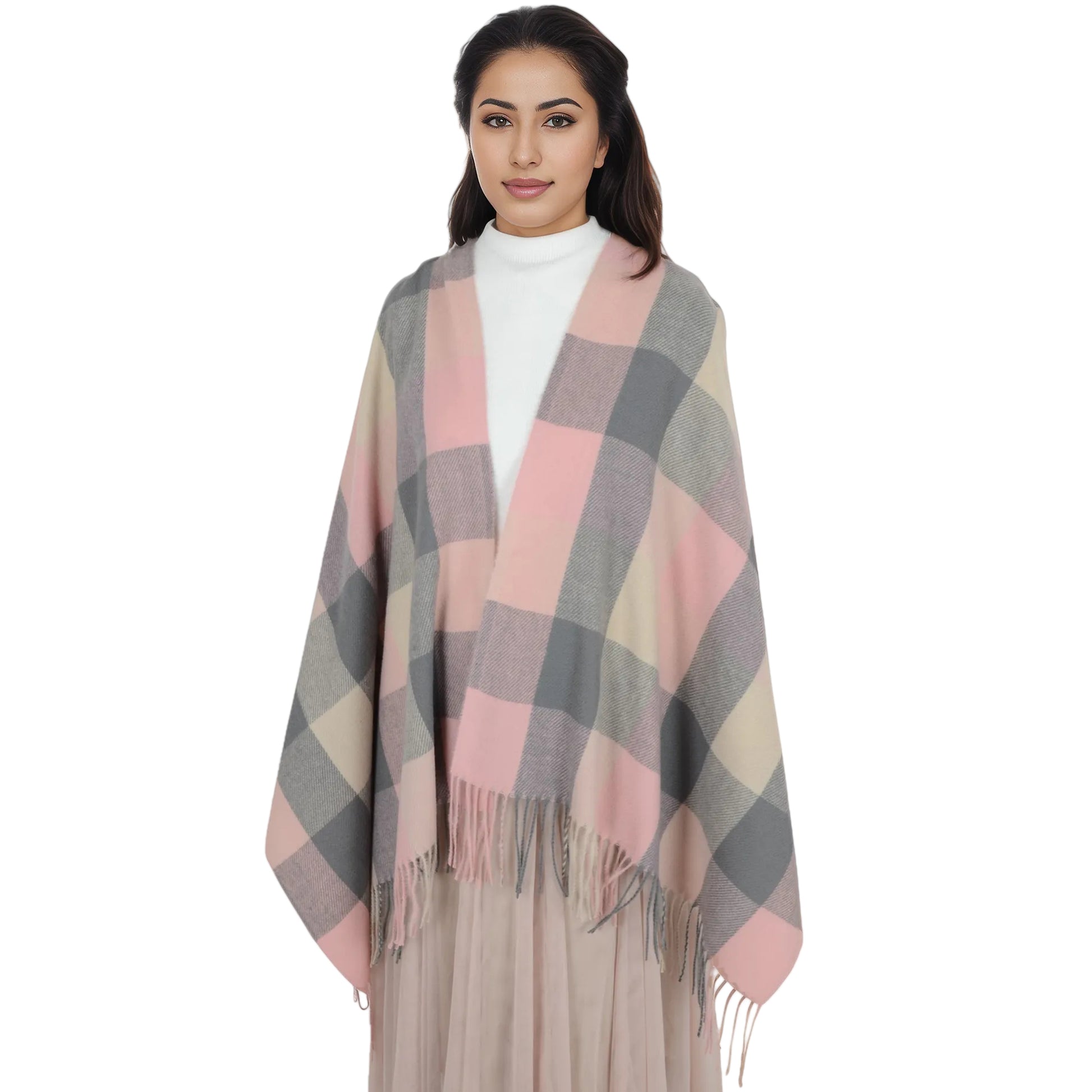 Embrace warmth and style with the classic plaid winter scarf. Crafted to deliver a luxurious cashmere-like feel, this scarf is the ultimate accessory for keeping cozy in colder months. Featuring a timeless plaid pattern, the soft fabric offers both comfort and sophistication, making it great for casual and dressy occasions alike. Whether you're wearing it as a cozy wrap, a stylish shawl, or a chic neck scarf, this scarf adds instant flair to any outfit. The classic checkered design is complemented by tassel detailing on each end, offering a touch of playful texture while maintaining a refined, elegant look. Measuring a generous size, this scarf provides ample coverage and can be worn in a variety of ways. Ideal for women who want a versatile stay warm in winter or to add an extra layer of style to their wardrobe, this scarf is an essential winter piece.