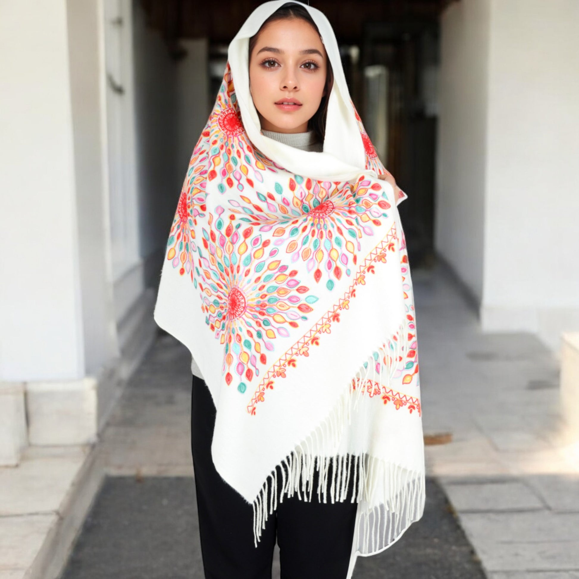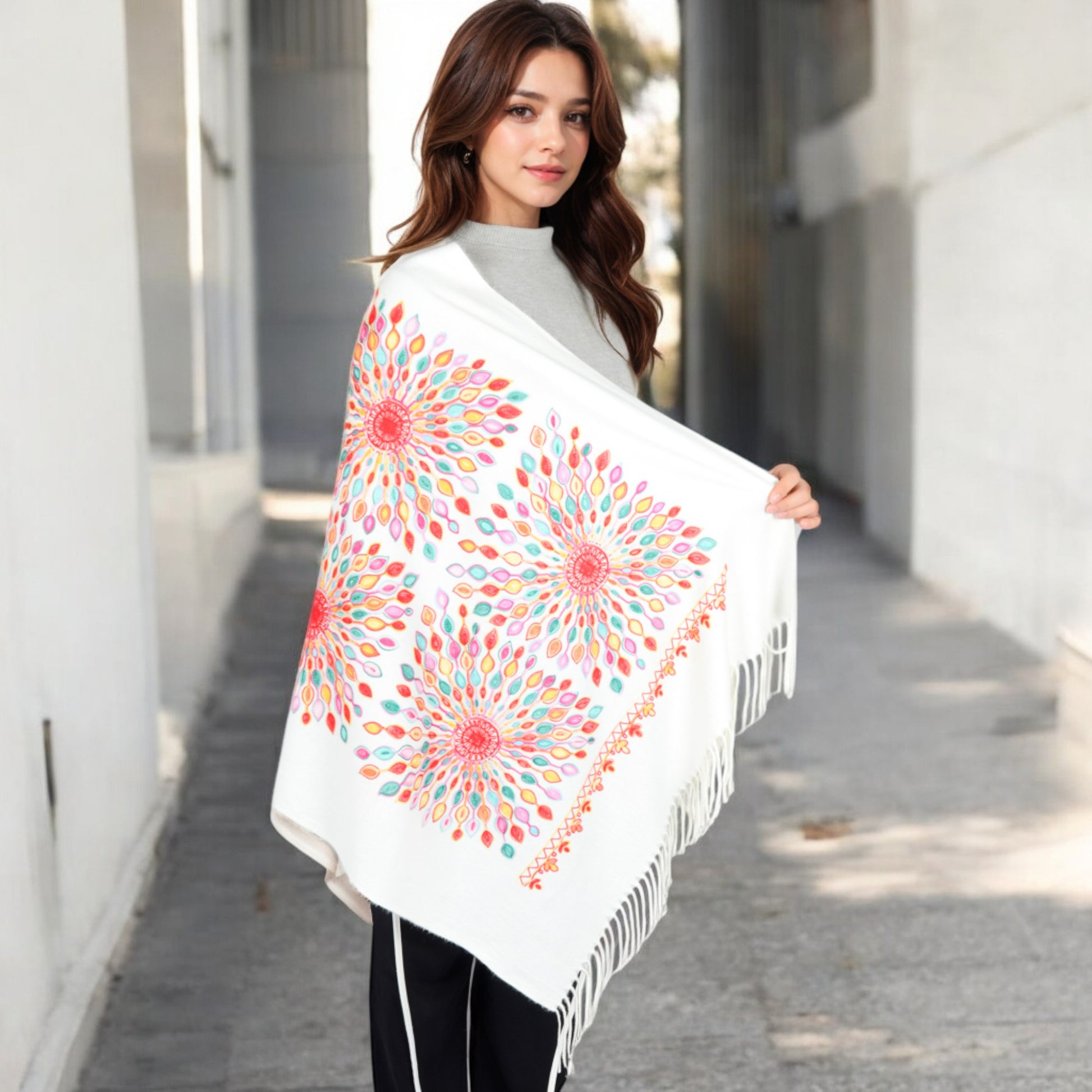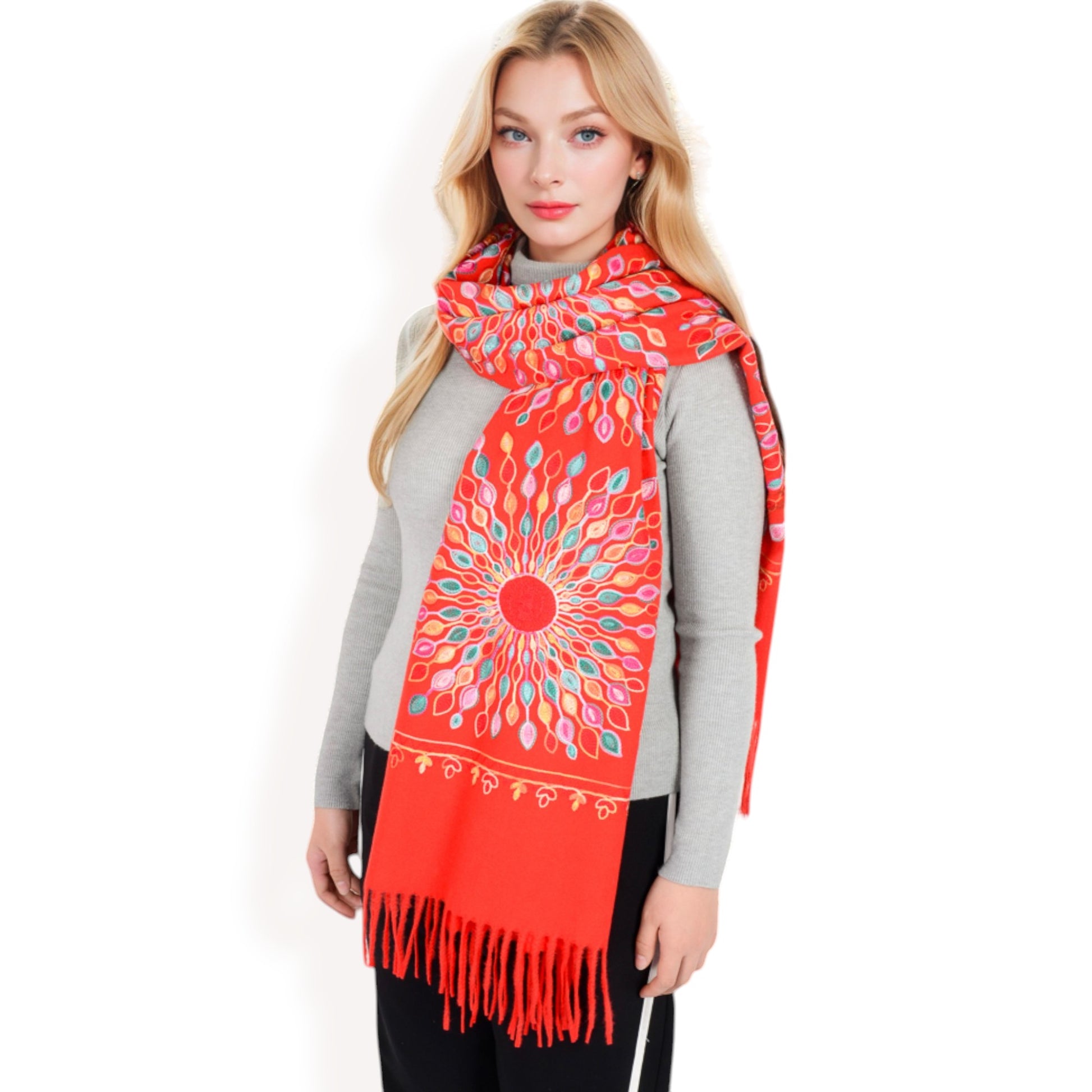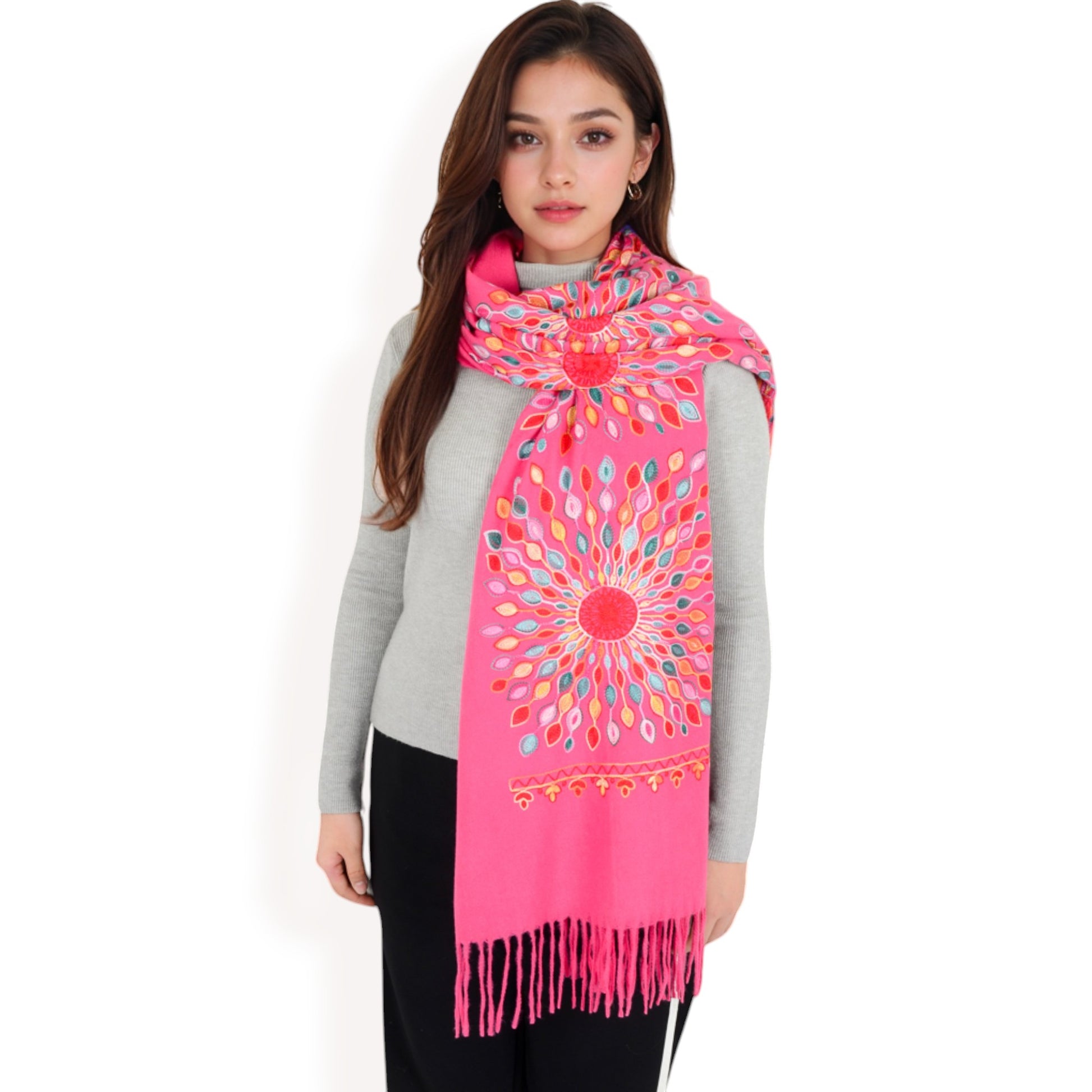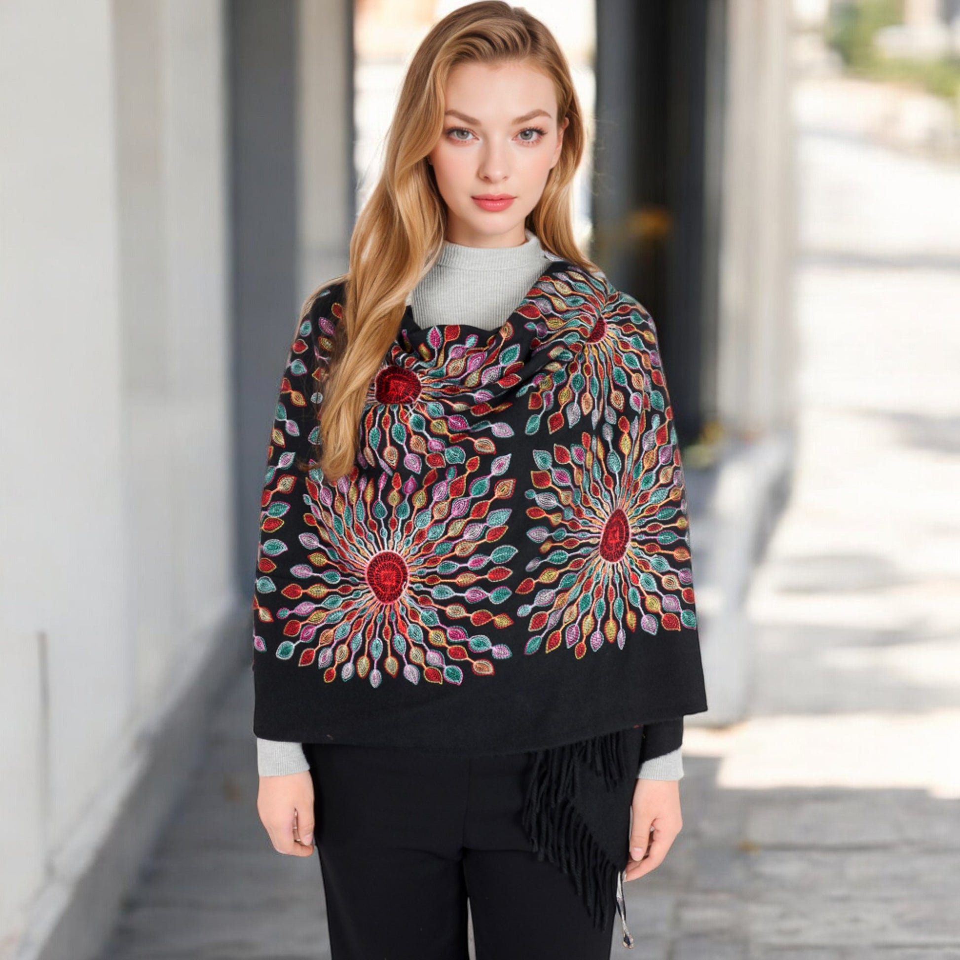 Anna-Kaci Women's Floral Mandala Embroidered Scarf with Fringed Edges and Lightweight Fabric