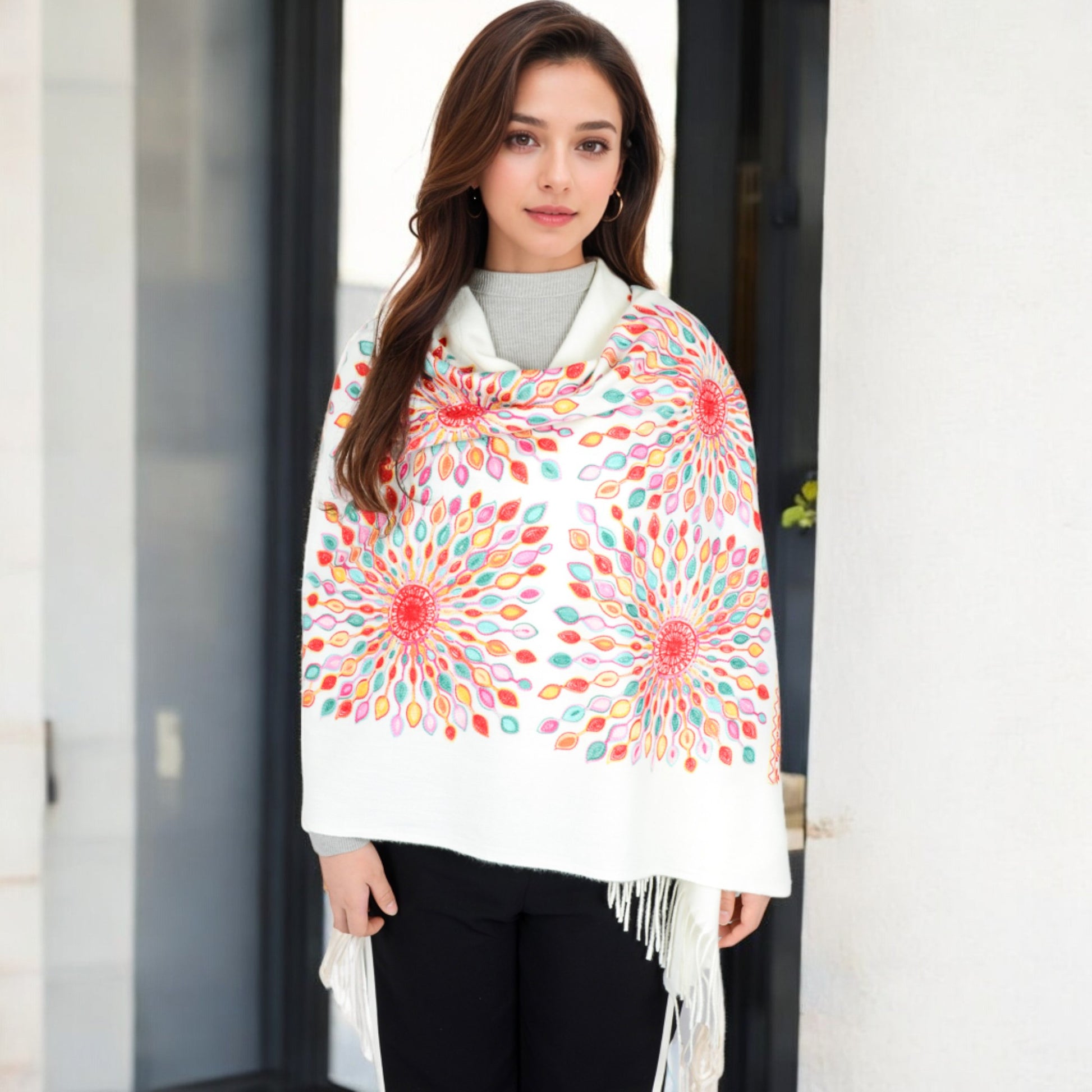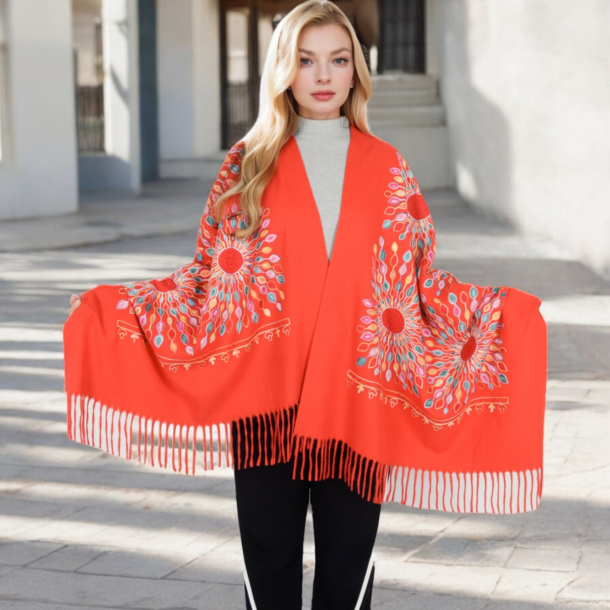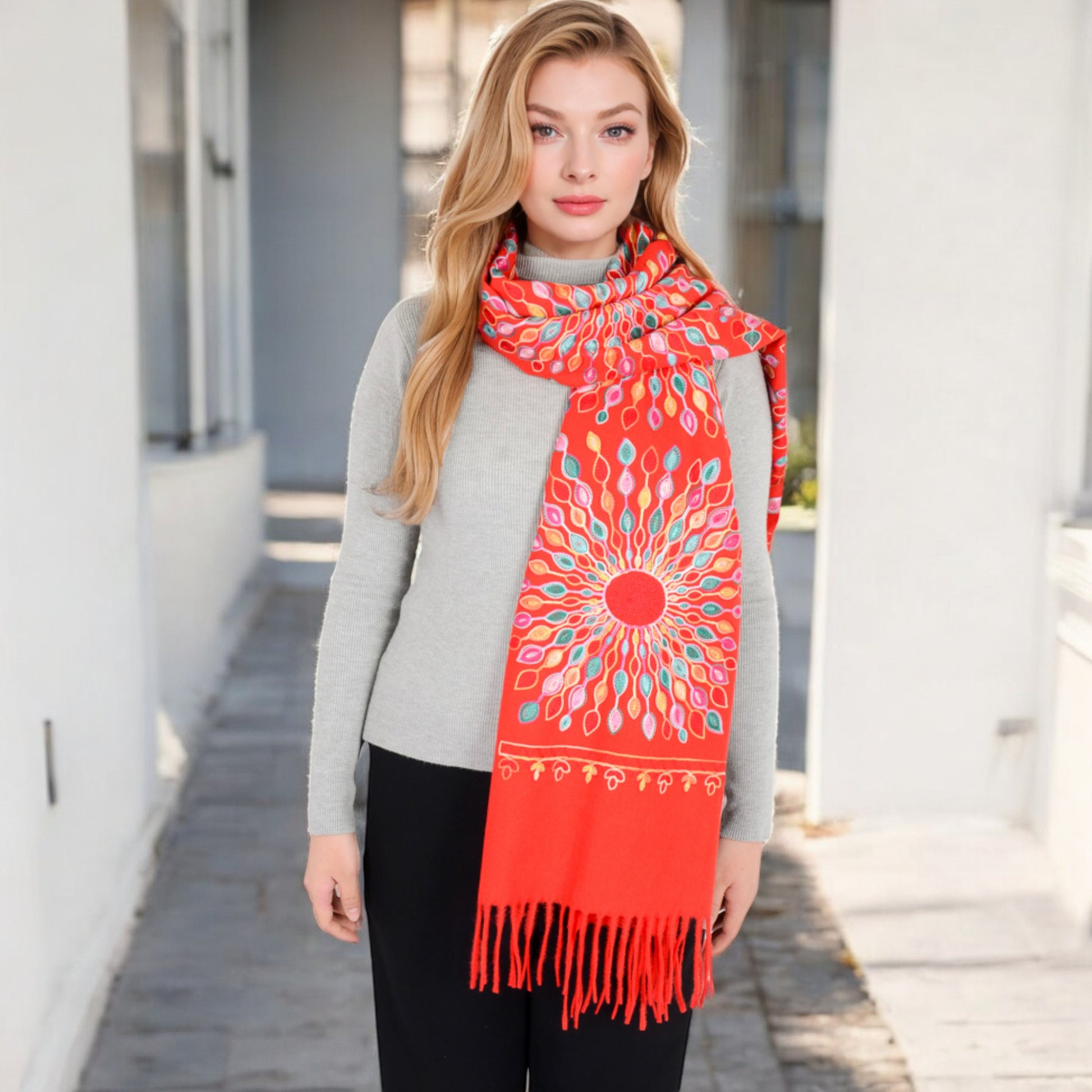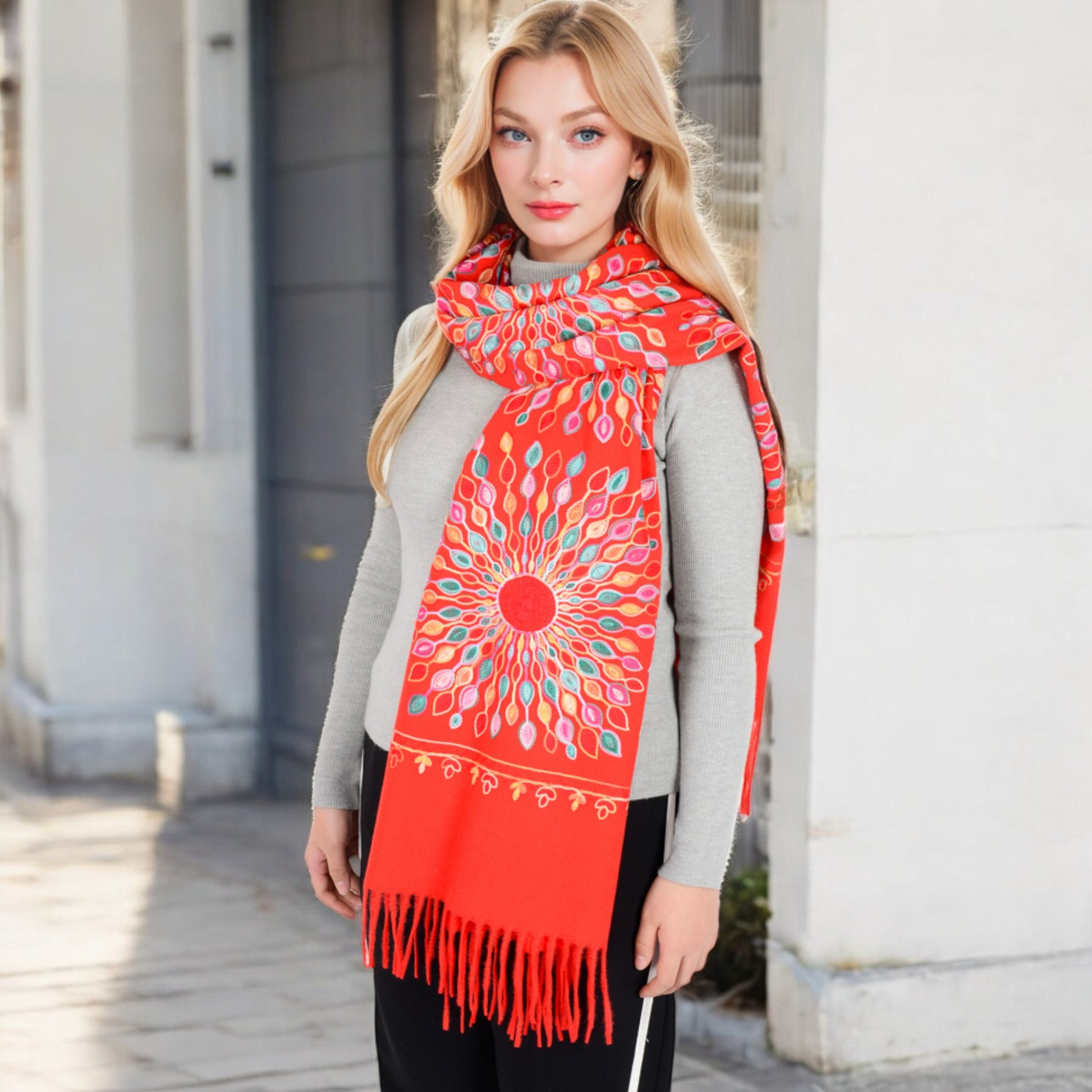 Anna-Kaci Women's Floral Mandala Embroidered Scarf with Fringed Edges and Lightweight Fabric