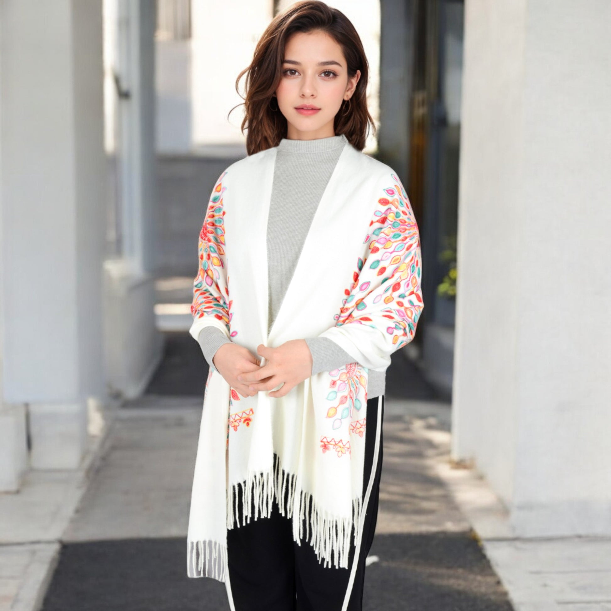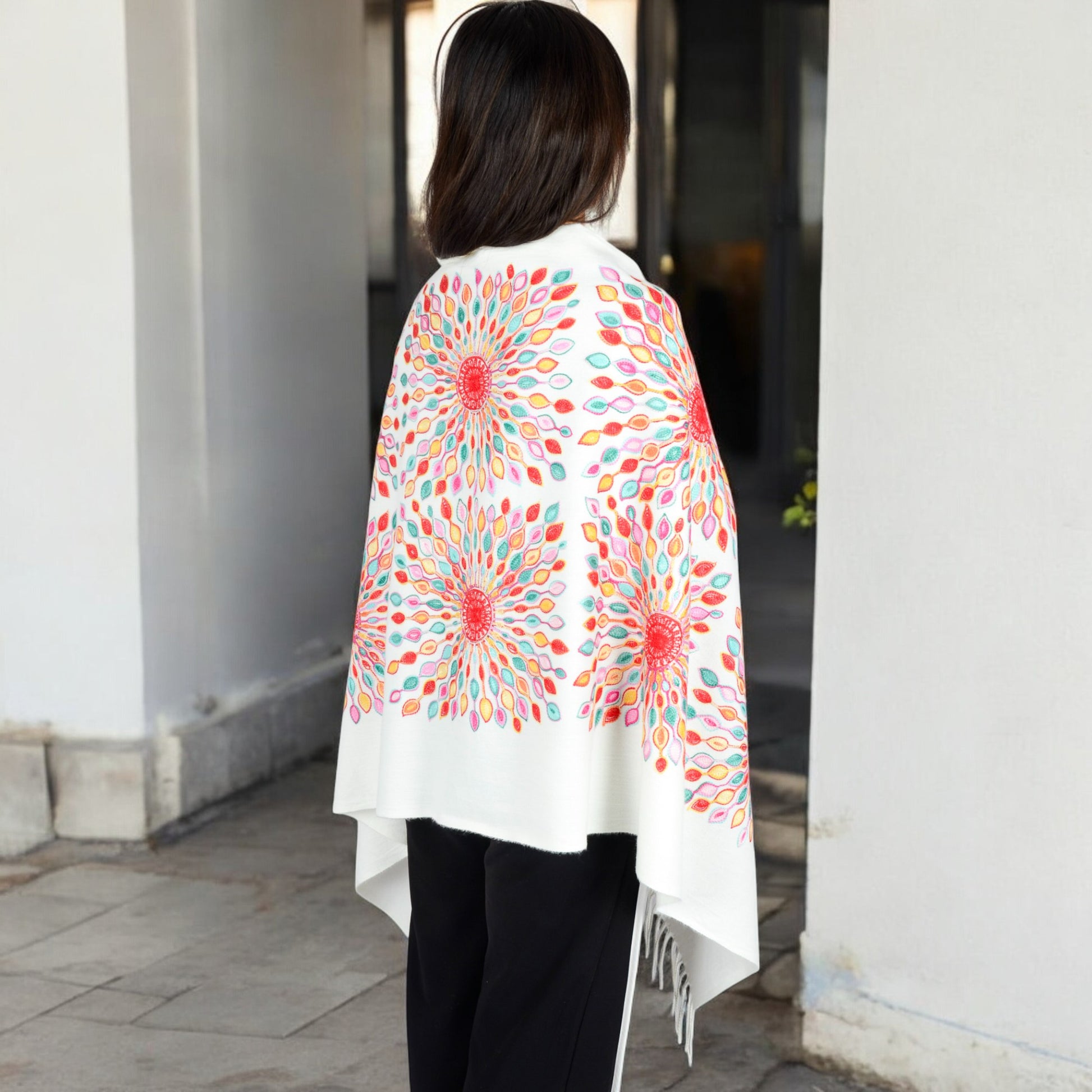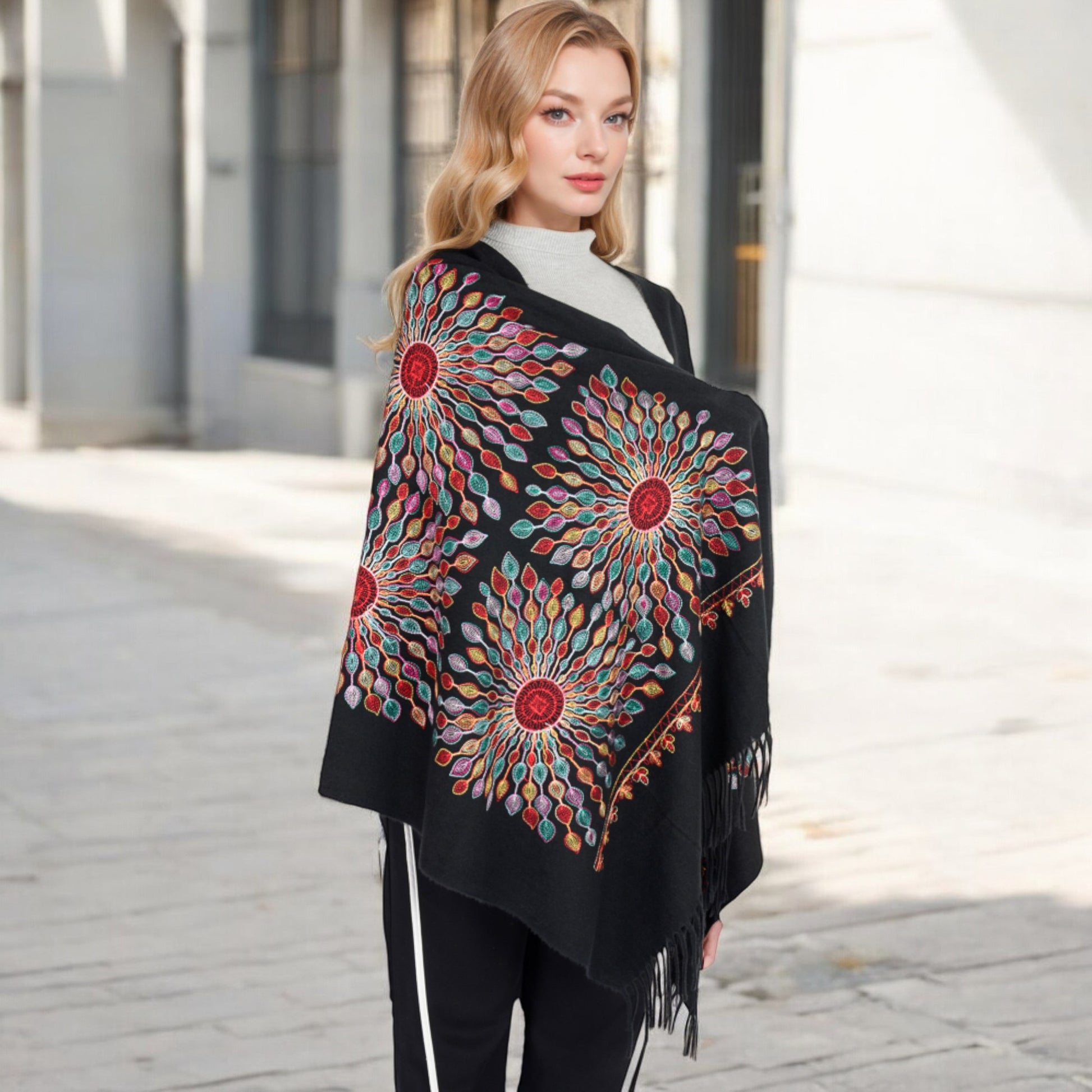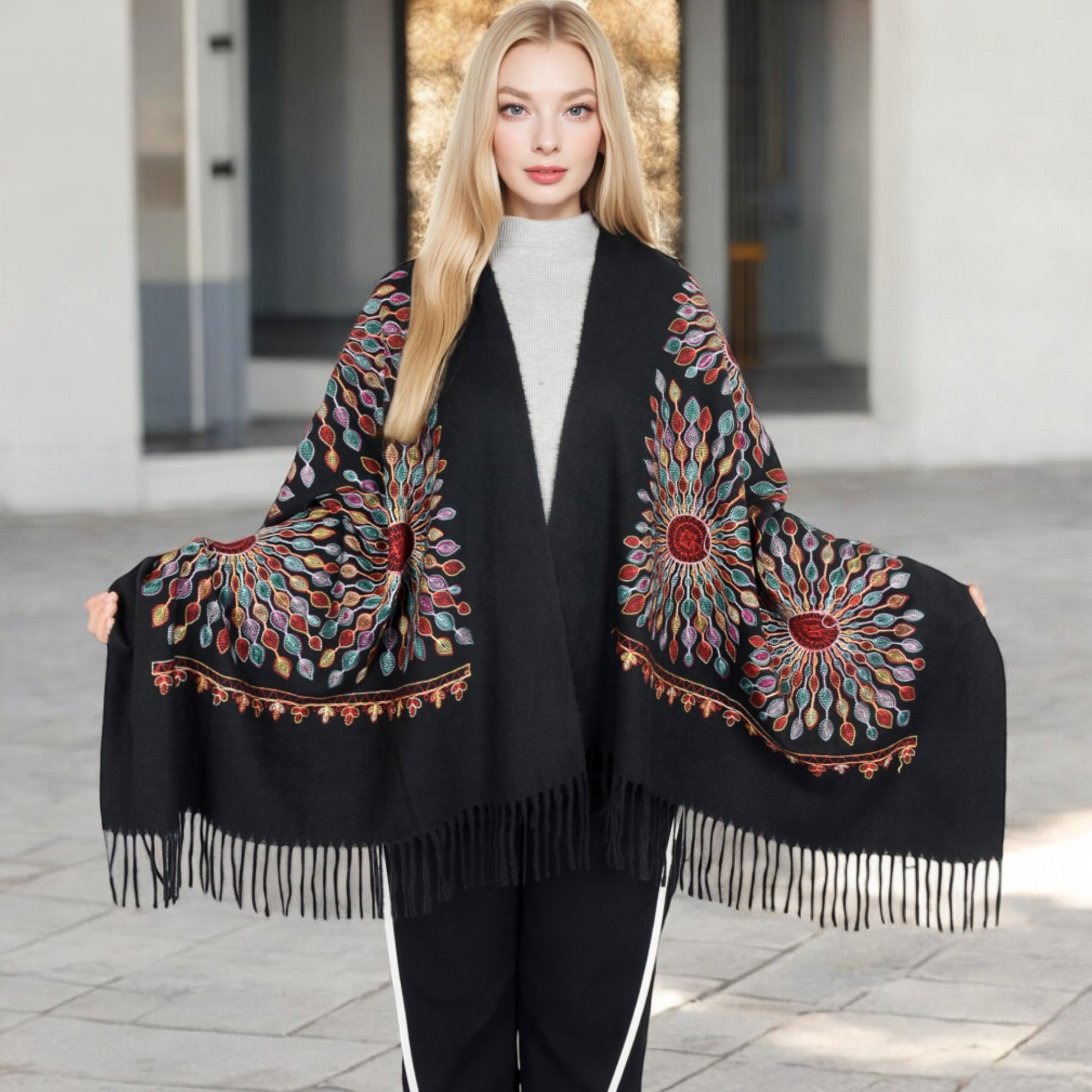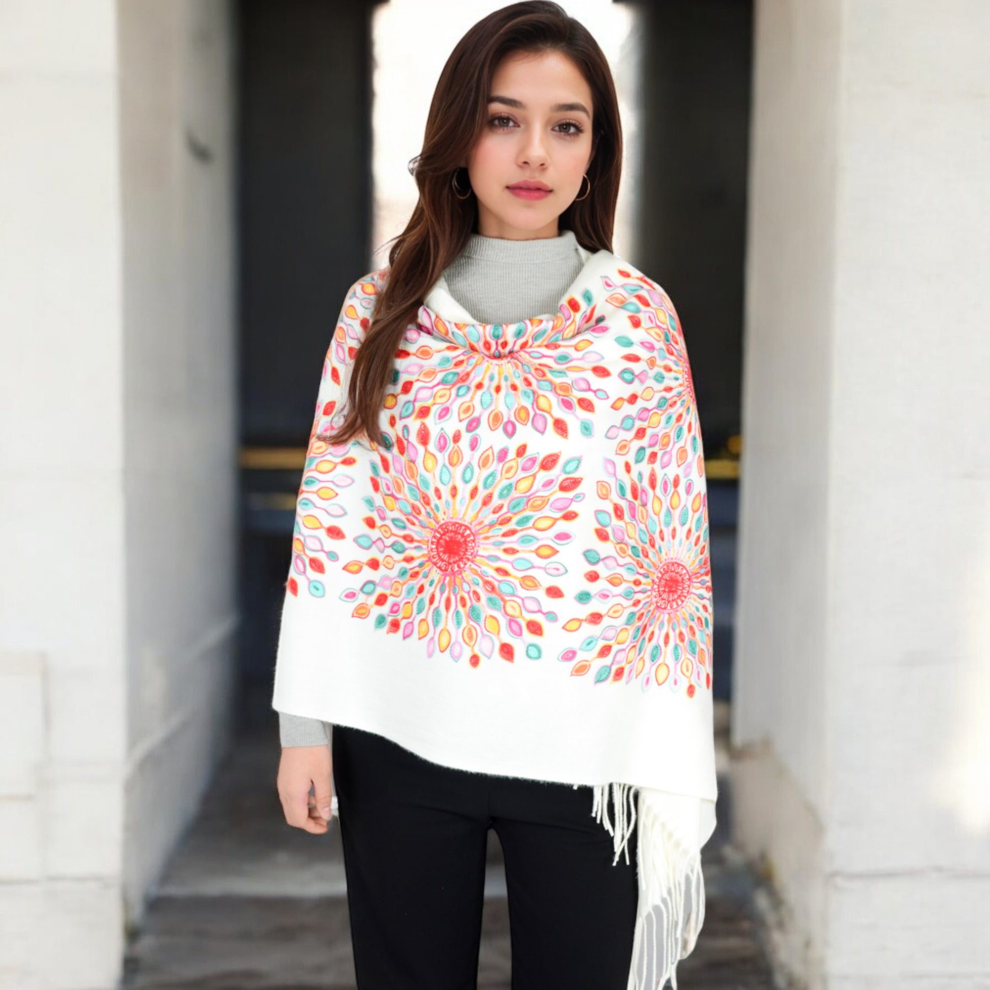 Anna-Kaci Women's Floral Mandala Embroidered Scarf with Fringed Edges and Lightweight Fabric