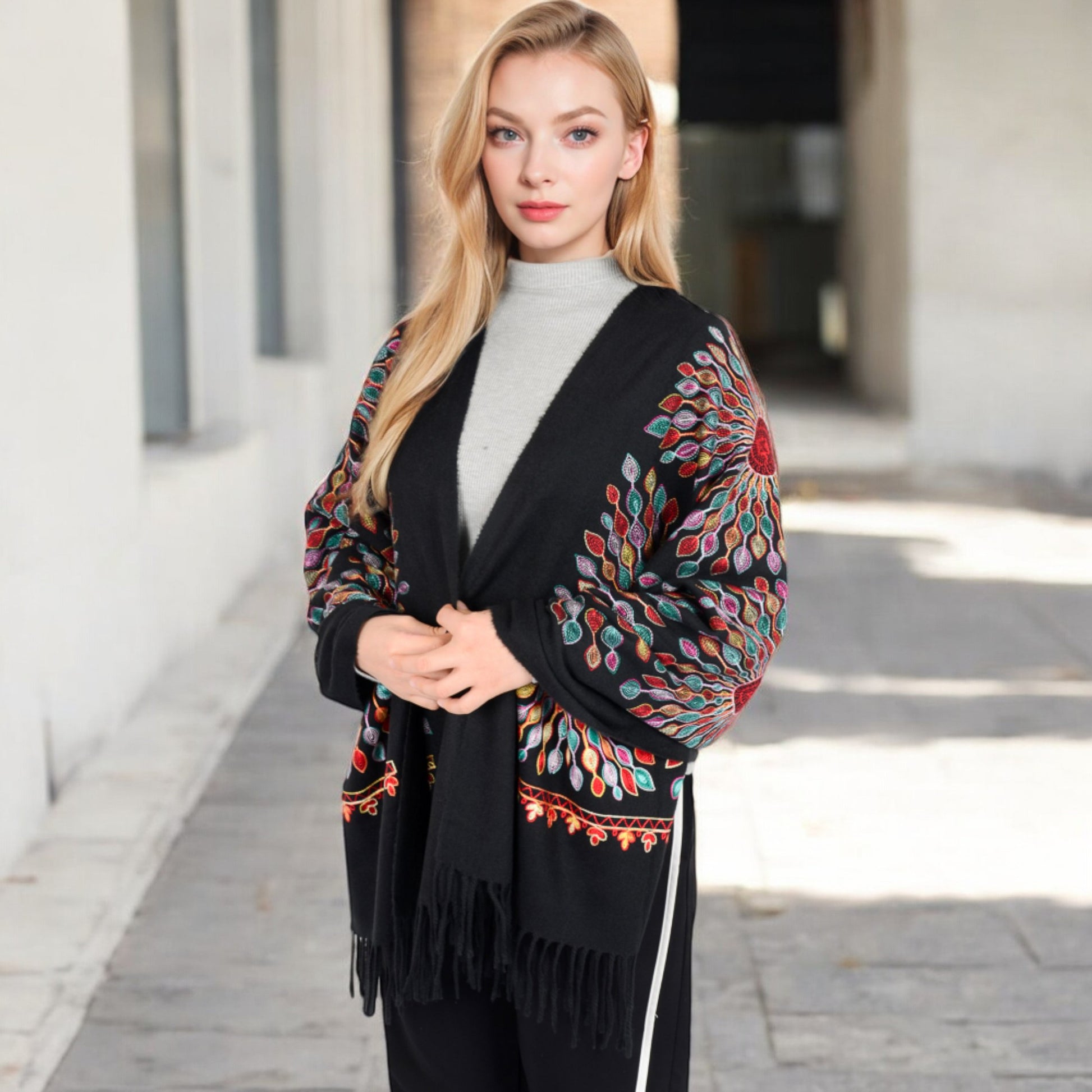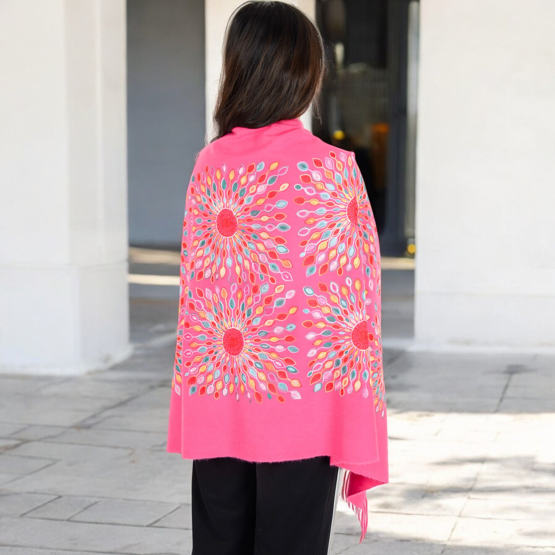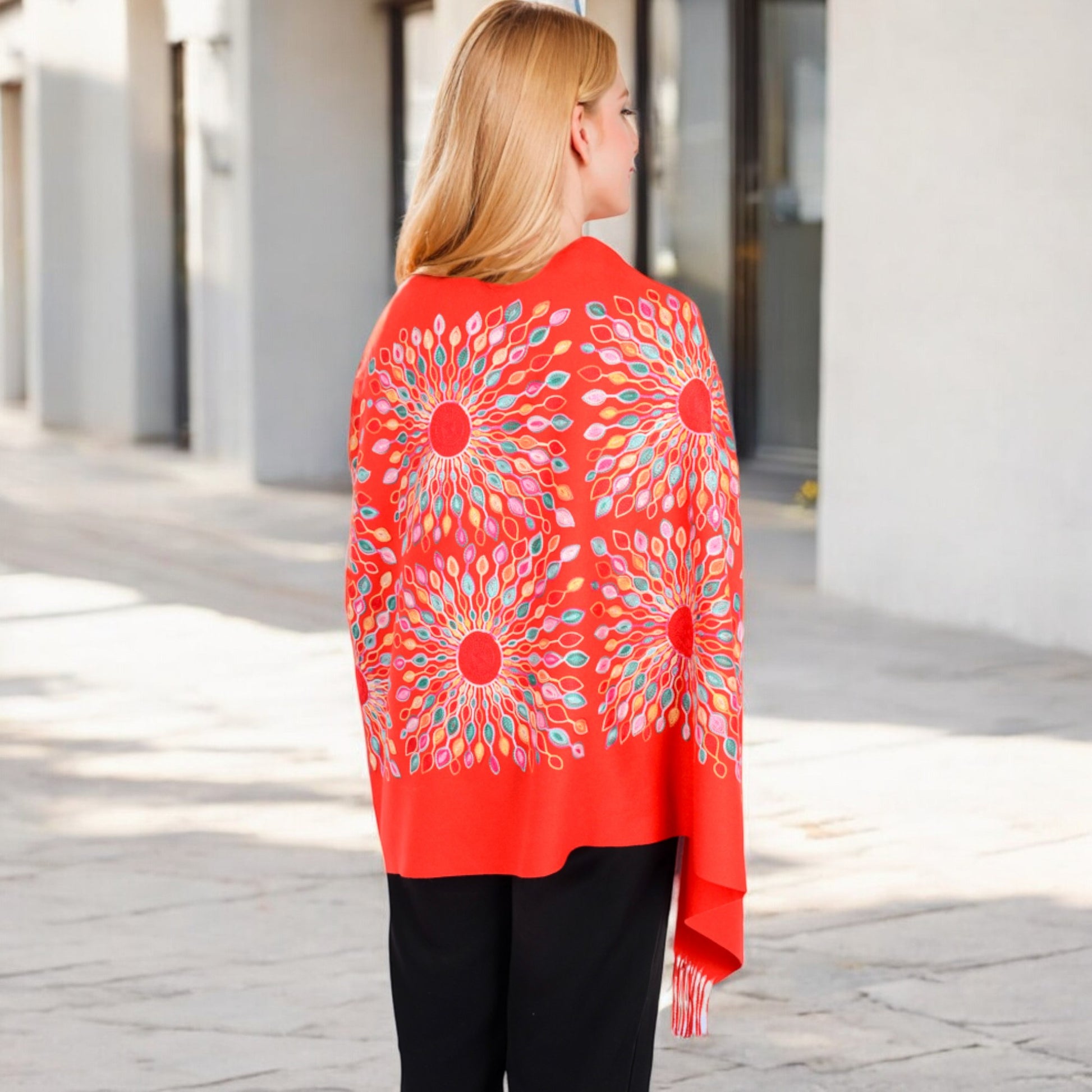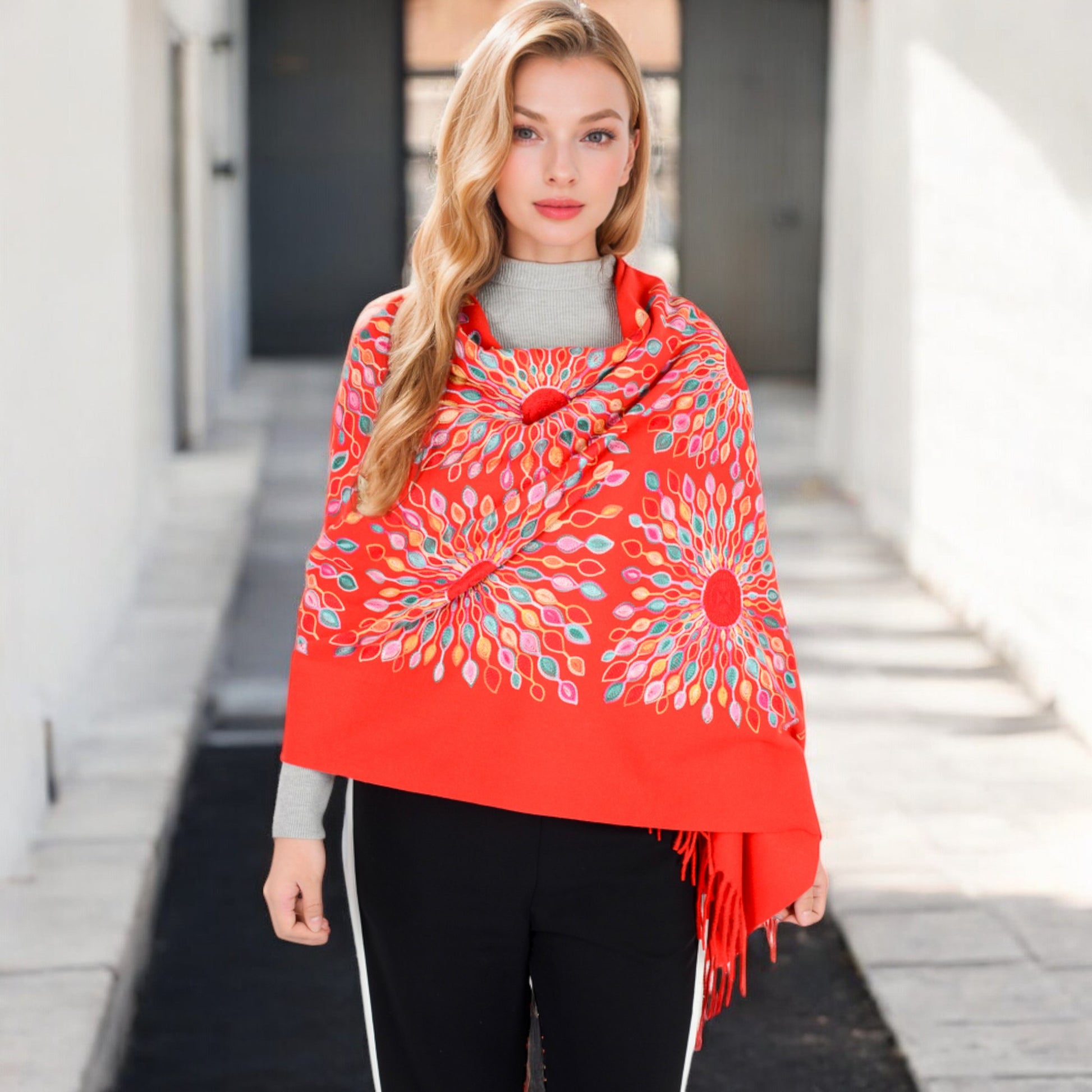 Anna-Kaci Women's Floral Mandala Embroidered Scarf with Fringed Edges and Lightweight Fabric
