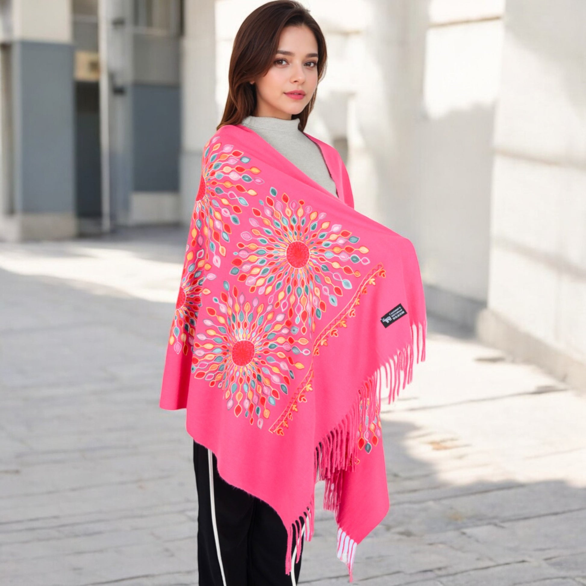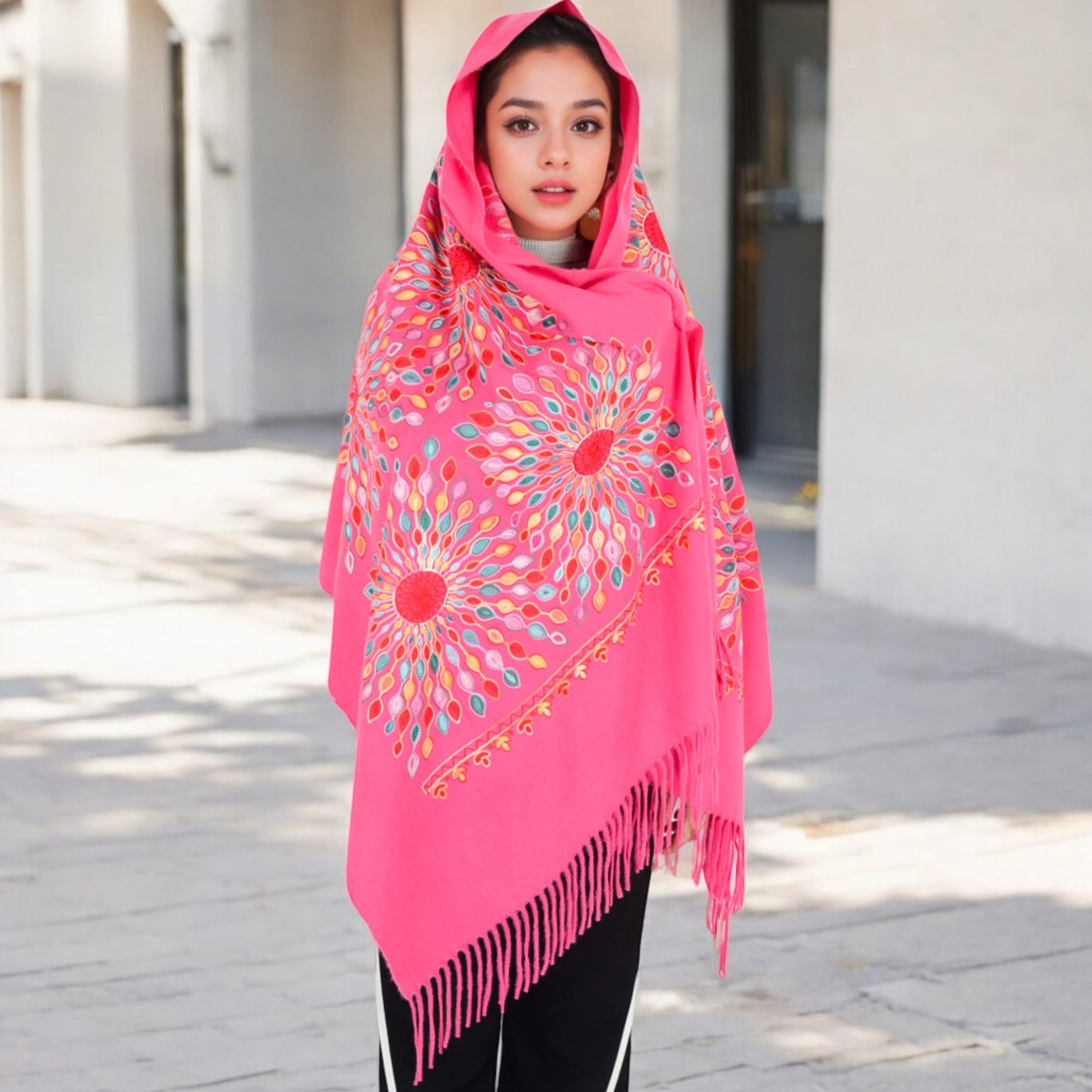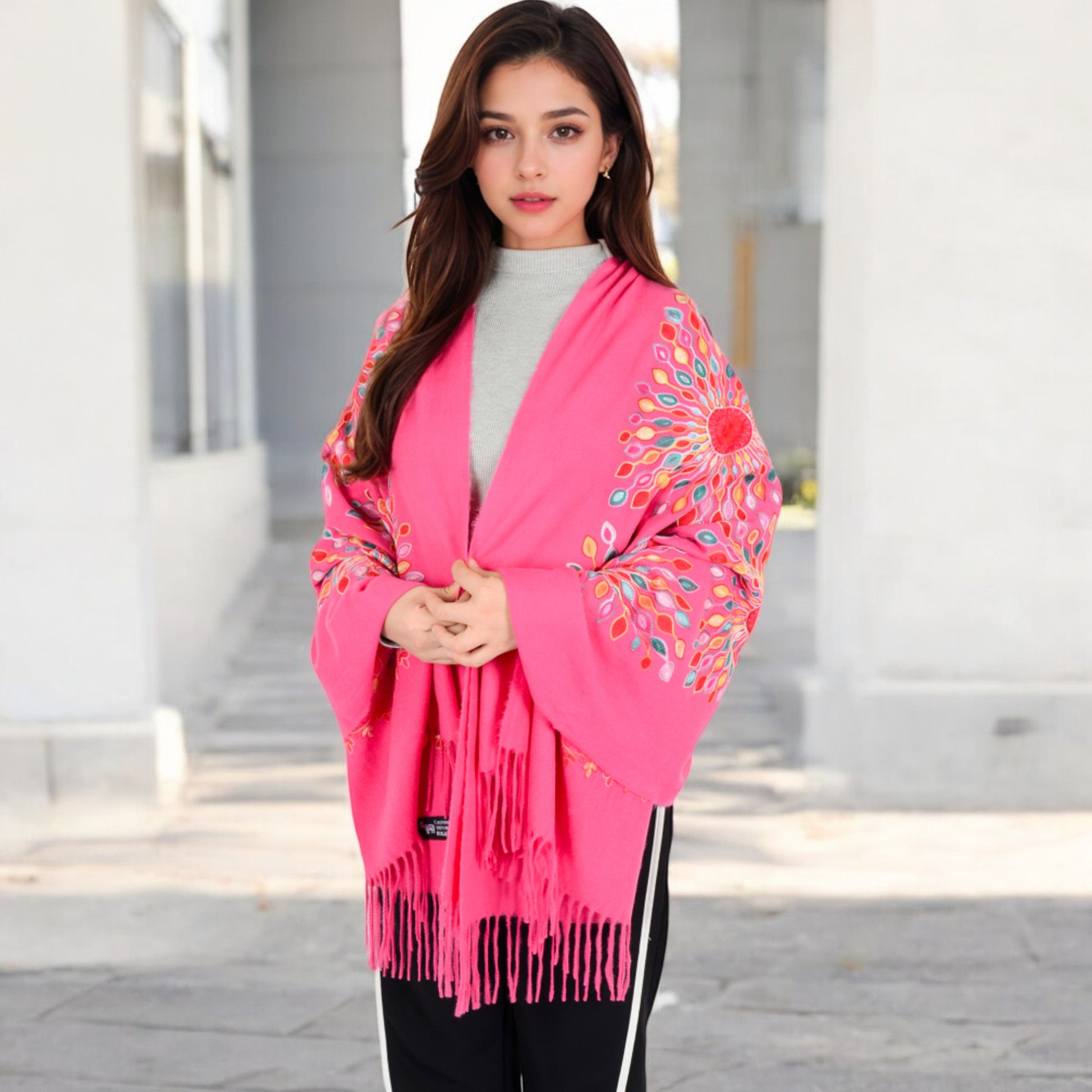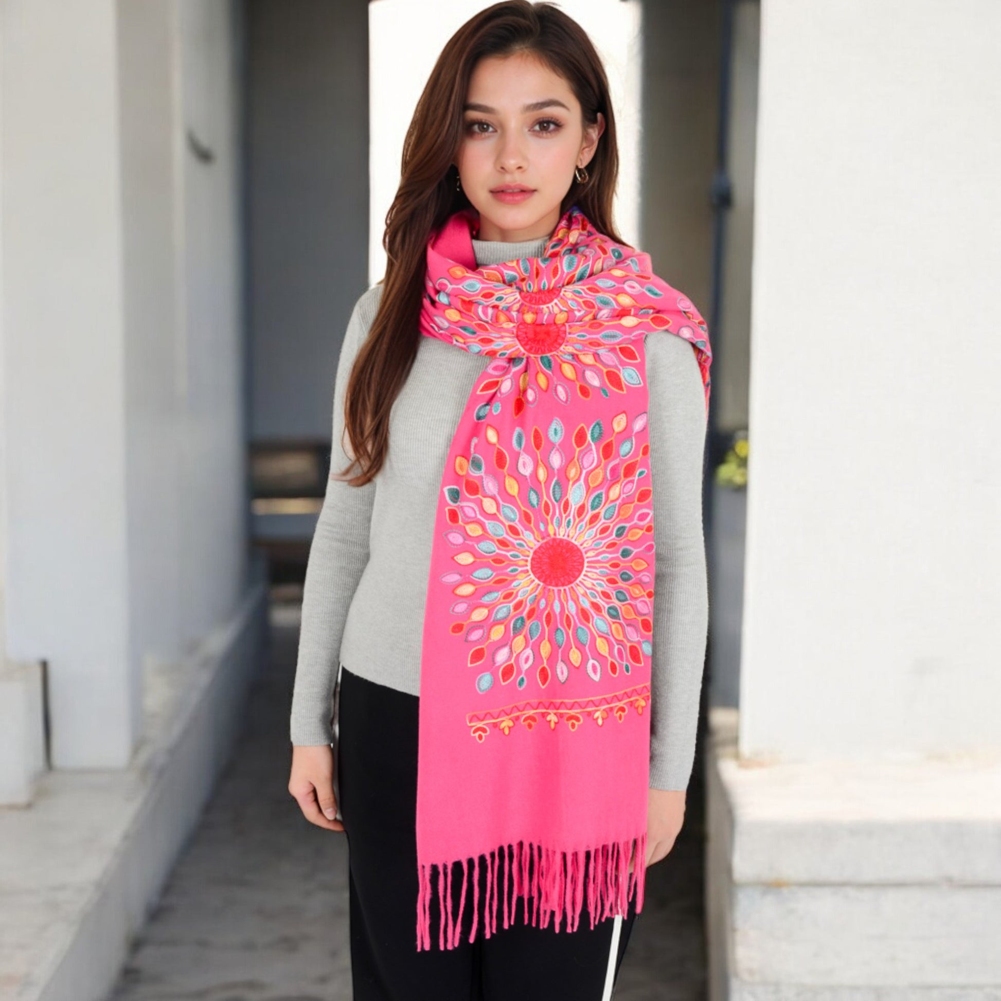 Infuse elegance into your wardrobe with the Anna-Kaci Women's Floral Mandala Embroidered Scarf. Featuring intricate floral mandala embroidery and vibrant colors, this scarf effortlessly elevates any outfit. Its soft, lightweight fabric ensures comfort and breathability, while the fringed edges add a touch of bohemian charm. Perfect as a wrap, shawl, or traditional scarf, this versatile piece transitions seamlessly from casual outings to formal events. Whether you're accessorizing for a day out or a special occasion, this scarf provides both style and practicality.