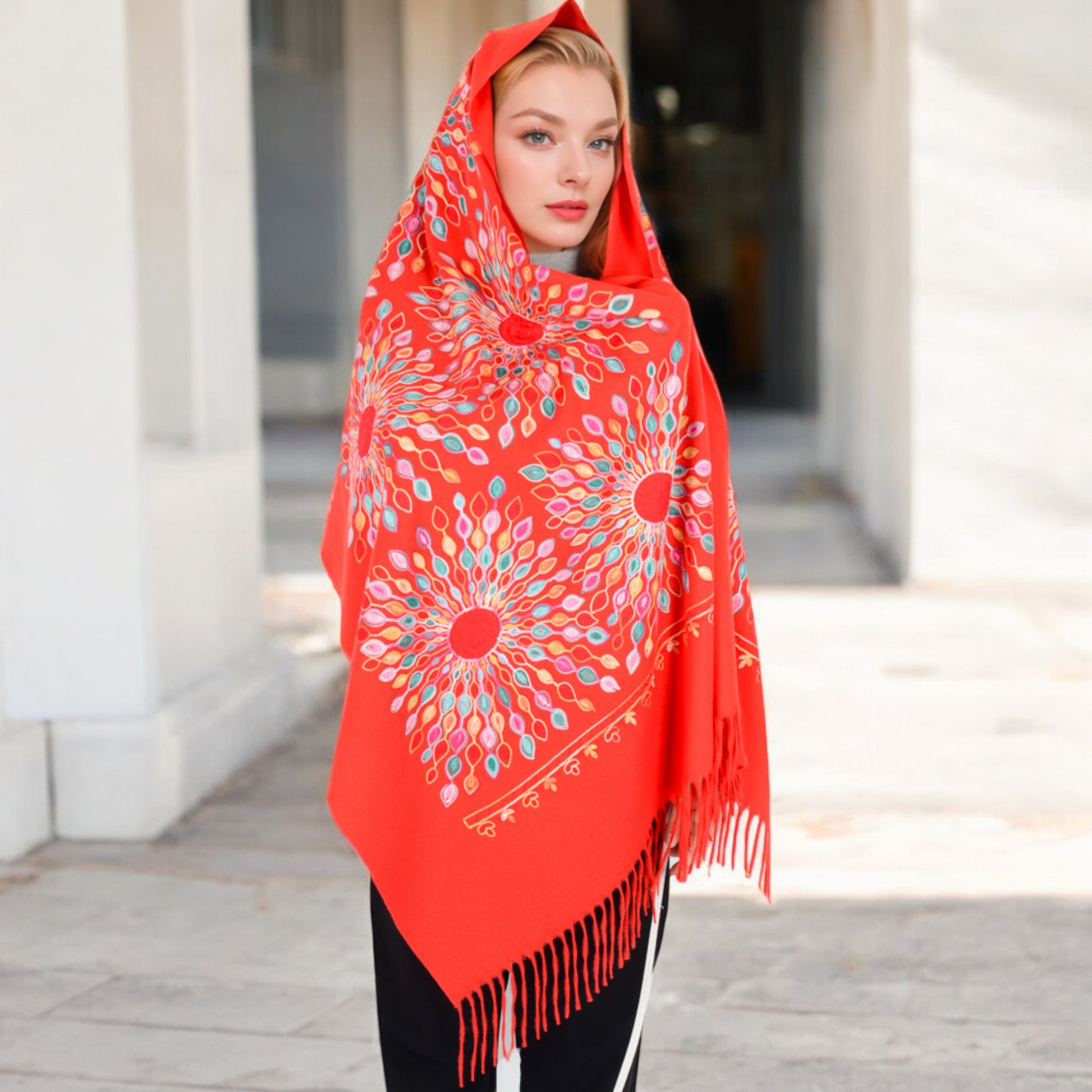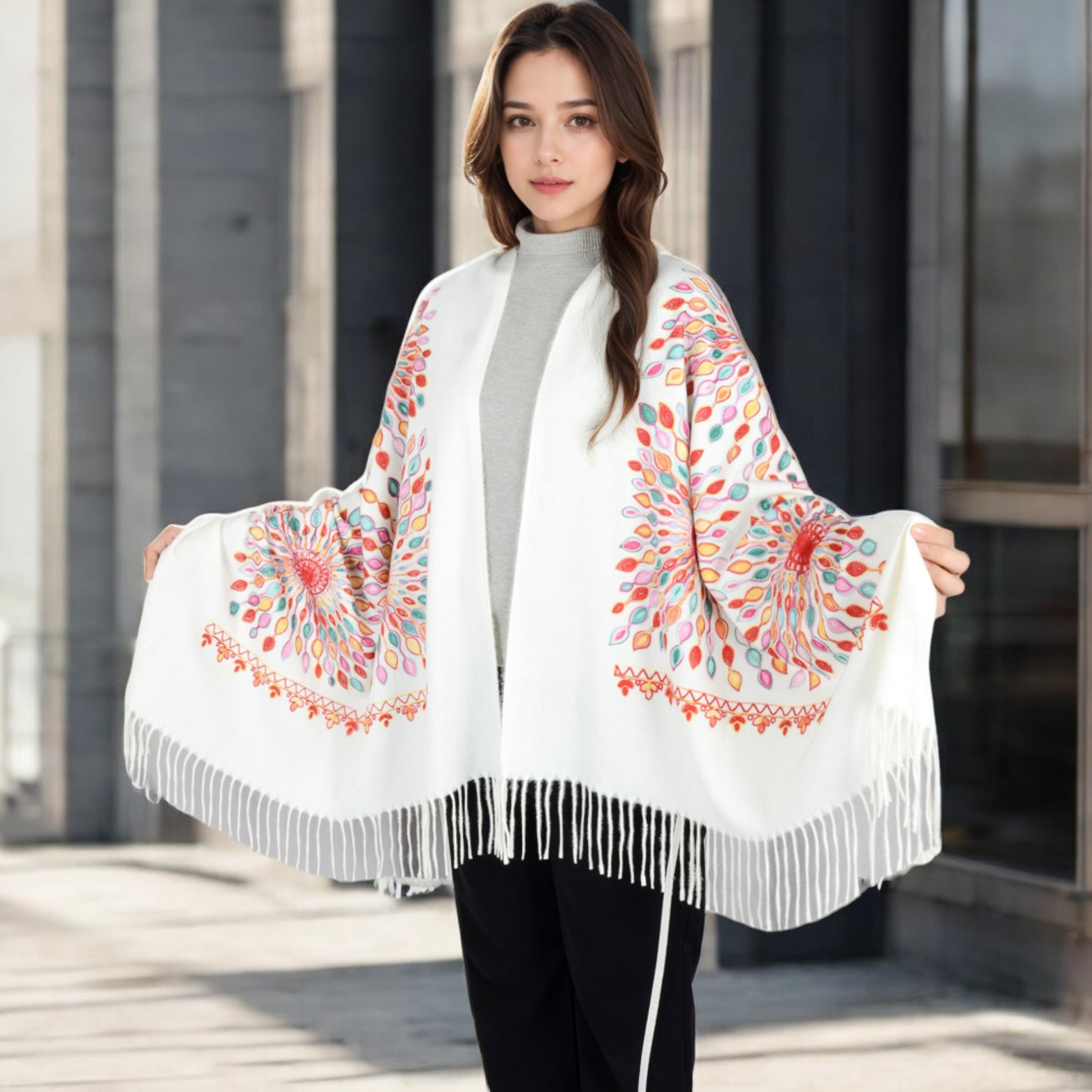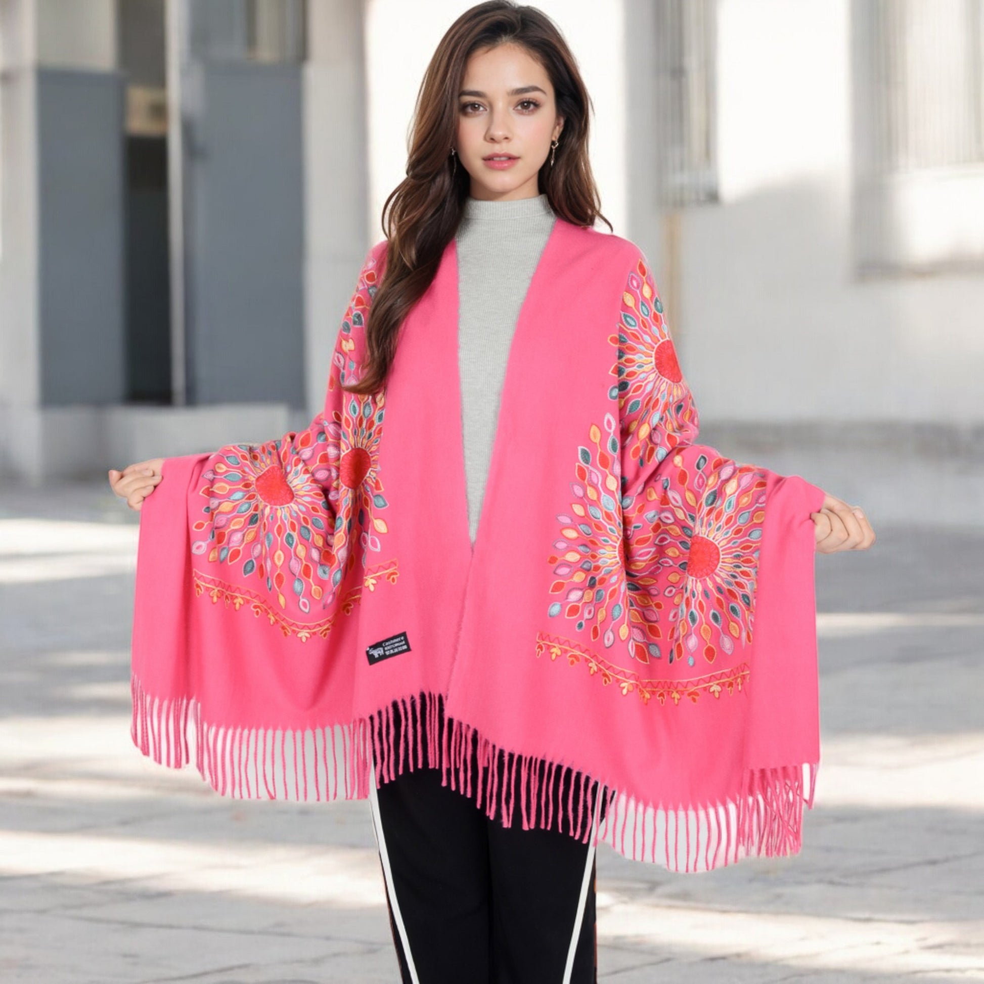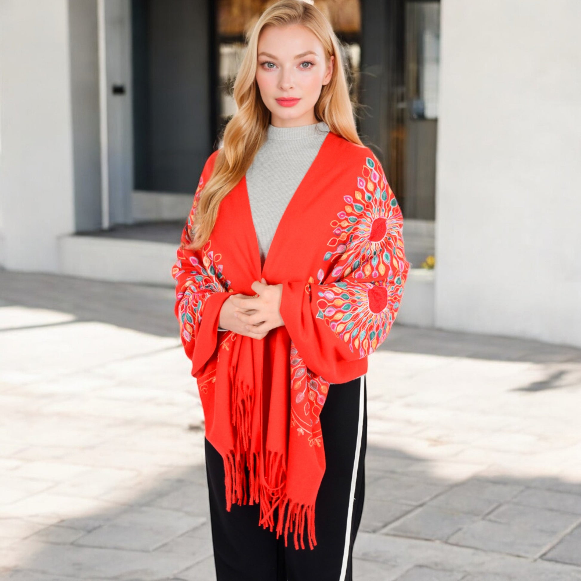 Infuse elegance into your wardrobe with the Anna-Kaci Women's Floral Mandala Embroidered Scarf. Featuring intricate floral mandala embroidery and vibrant colors, this scarf effortlessly elevates any outfit. Its soft, lightweight fabric ensures comfort and breathability, while the fringed edges add a touch of bohemian charm. Perfect as a wrap, shawl, or traditional scarf, this versatile piece transitions seamlessly from casual outings to formal events. Whether you're accessorizing for a day out or a special occasion, this scarf provides both style and practicality.