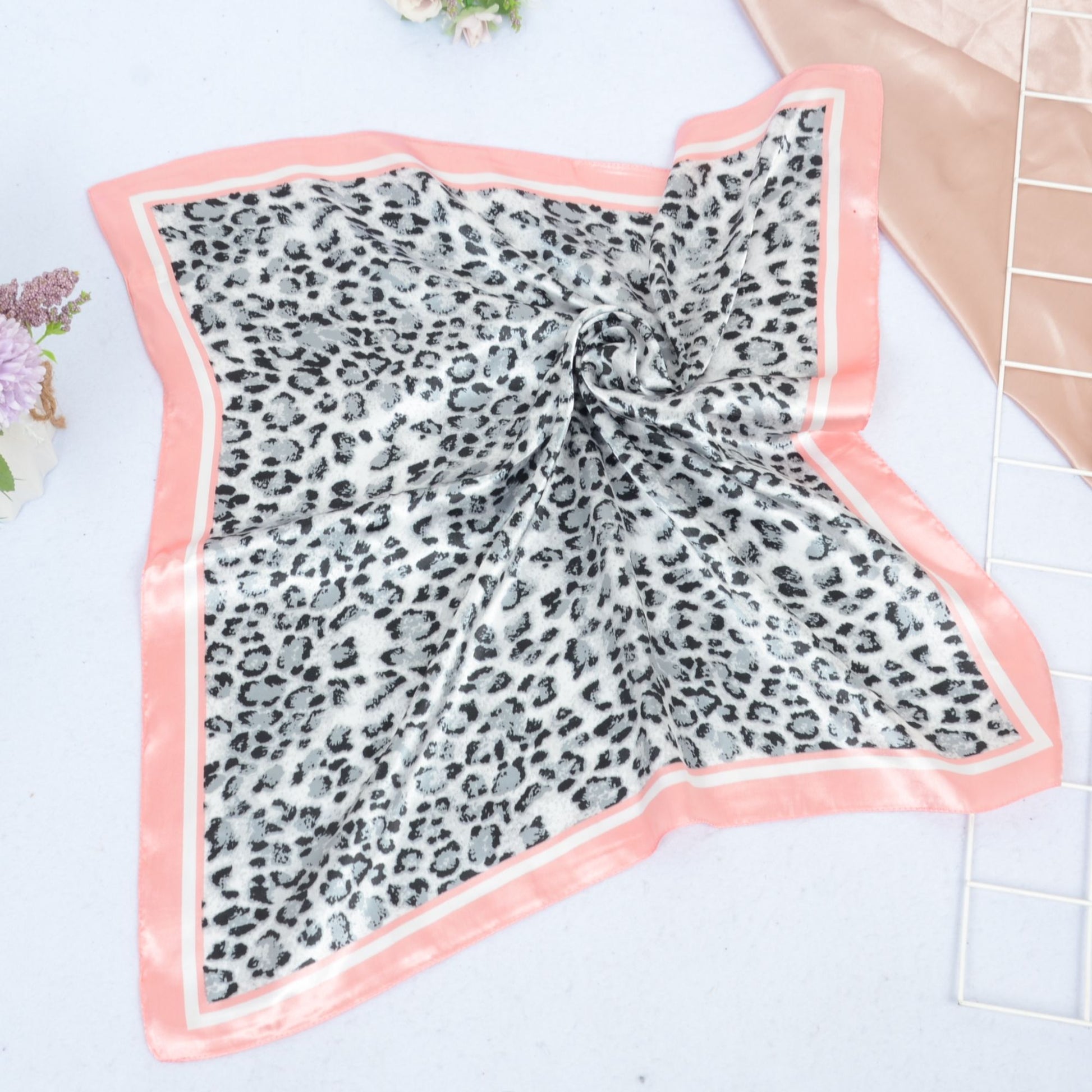 Anna-Kaci Women's Leopard Print Square Scarf with Contrast Border Satin Feel Lightweight Neck Accessory
