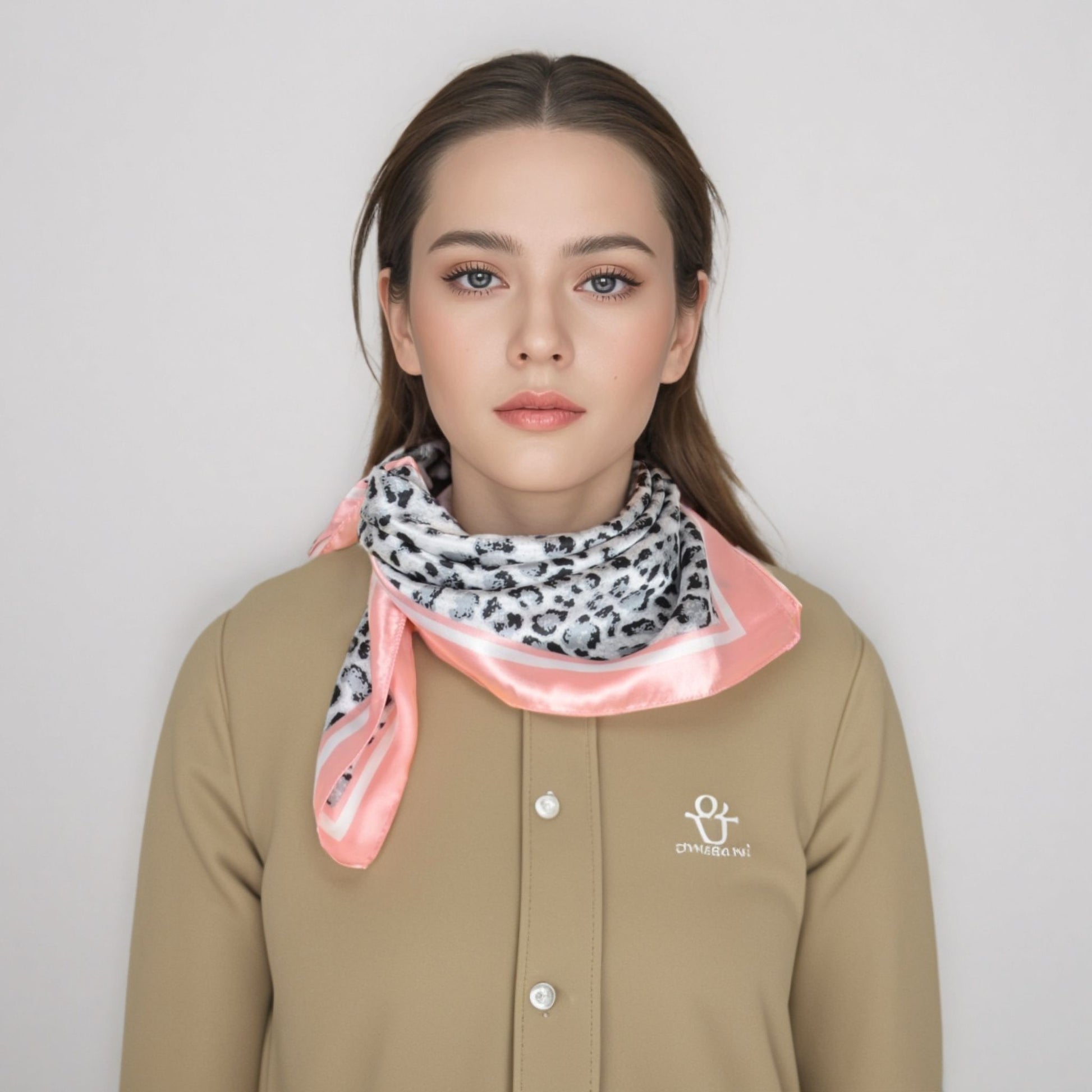 The Anna-Kaci Women's Leopard Print Square Scarf adds a playful yet polished touch to any outfit. Featuring a silky satin feel and eye-catching leopard print, this scarf is finished with a bold contrast border for added definition. Its versatile square shape allows for styling around the neck, in the hair, or tied to a handbag. Lightweight and smooth to the touch, this scarf brings a chic accent to your accessory collection with ease. Size: 35.5x35.5 in.