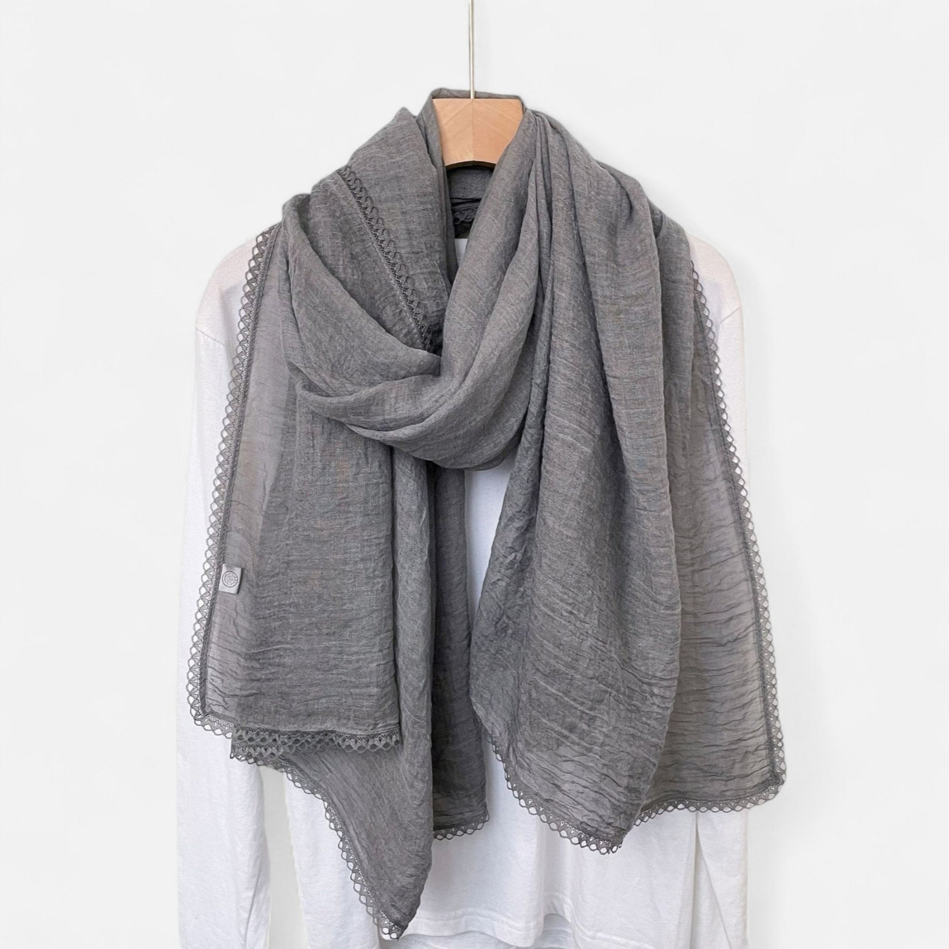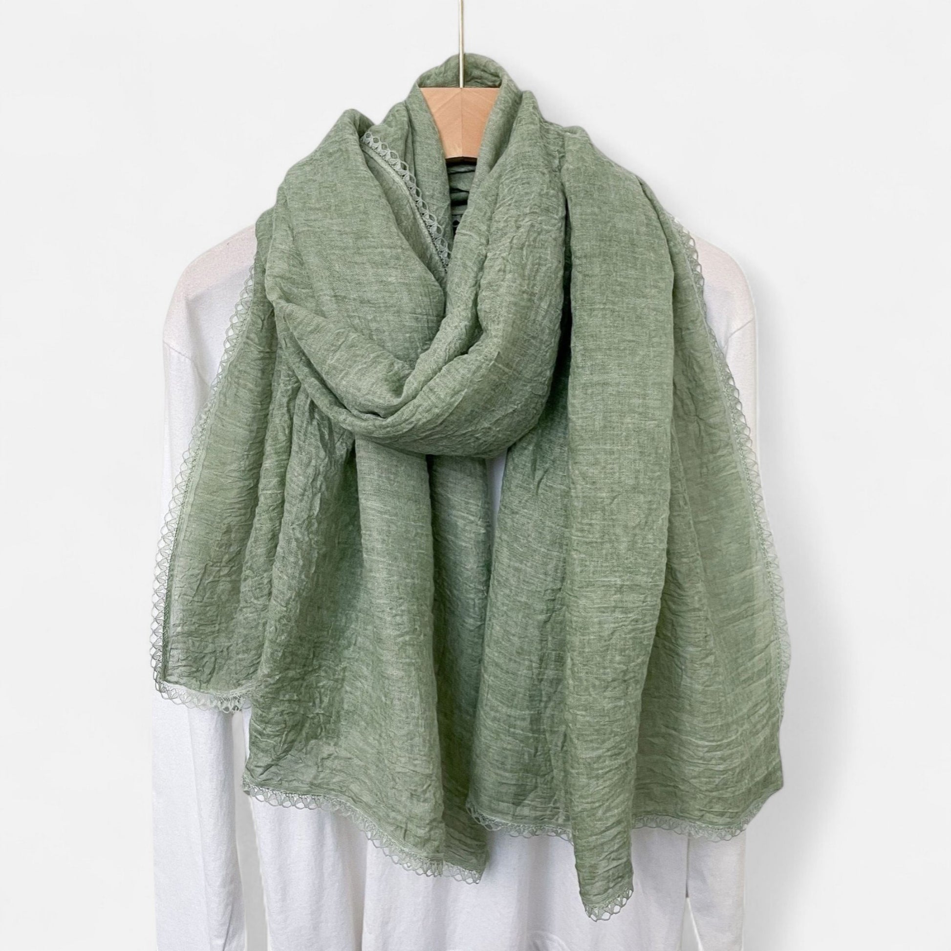 Anna-Kaci Women's Lightweight Crinkled Wrap Scarf with Delicate Lace Trim Edges